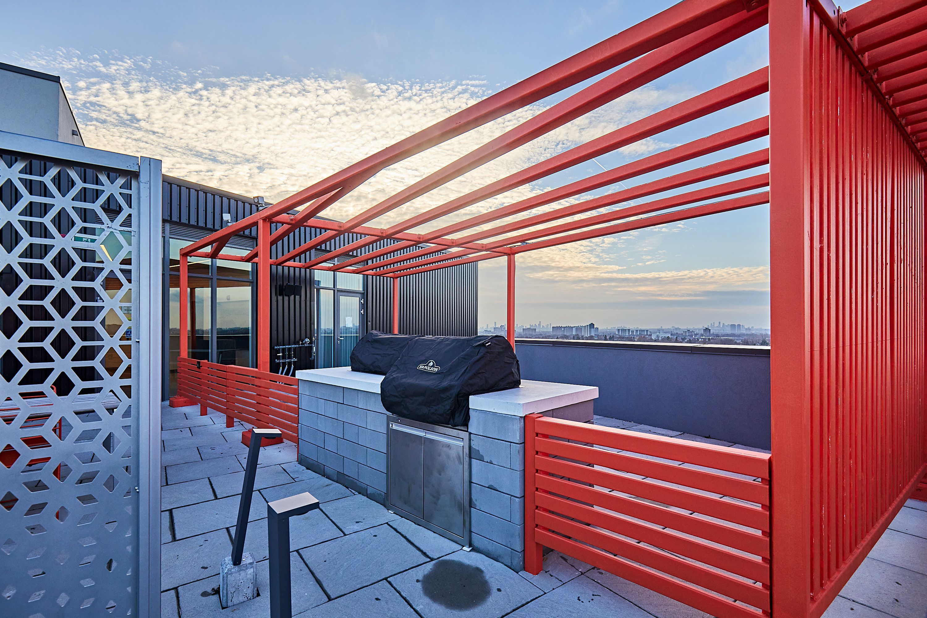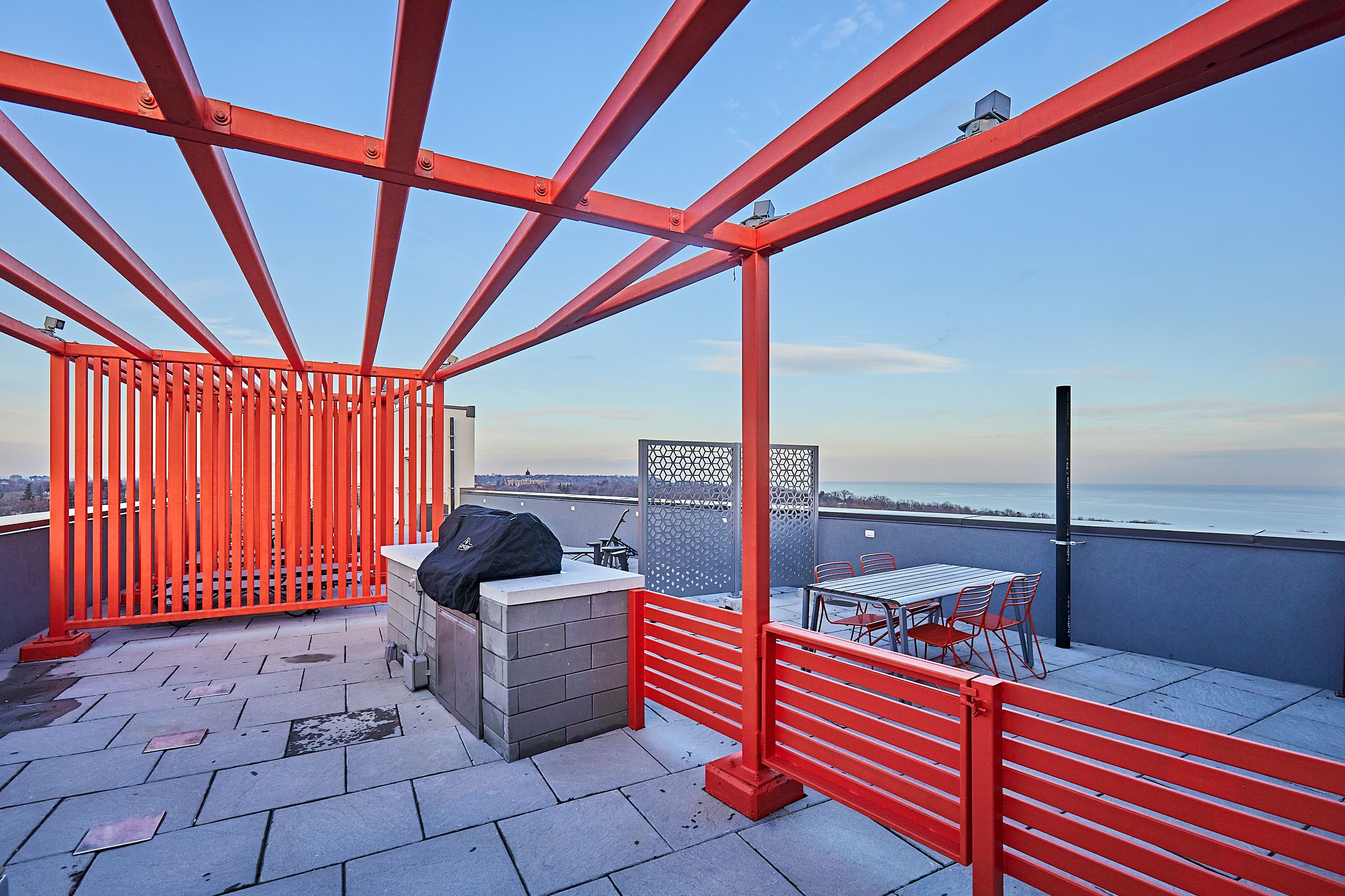 • Building amenities include a rooftop terrace, concierge, and media room.