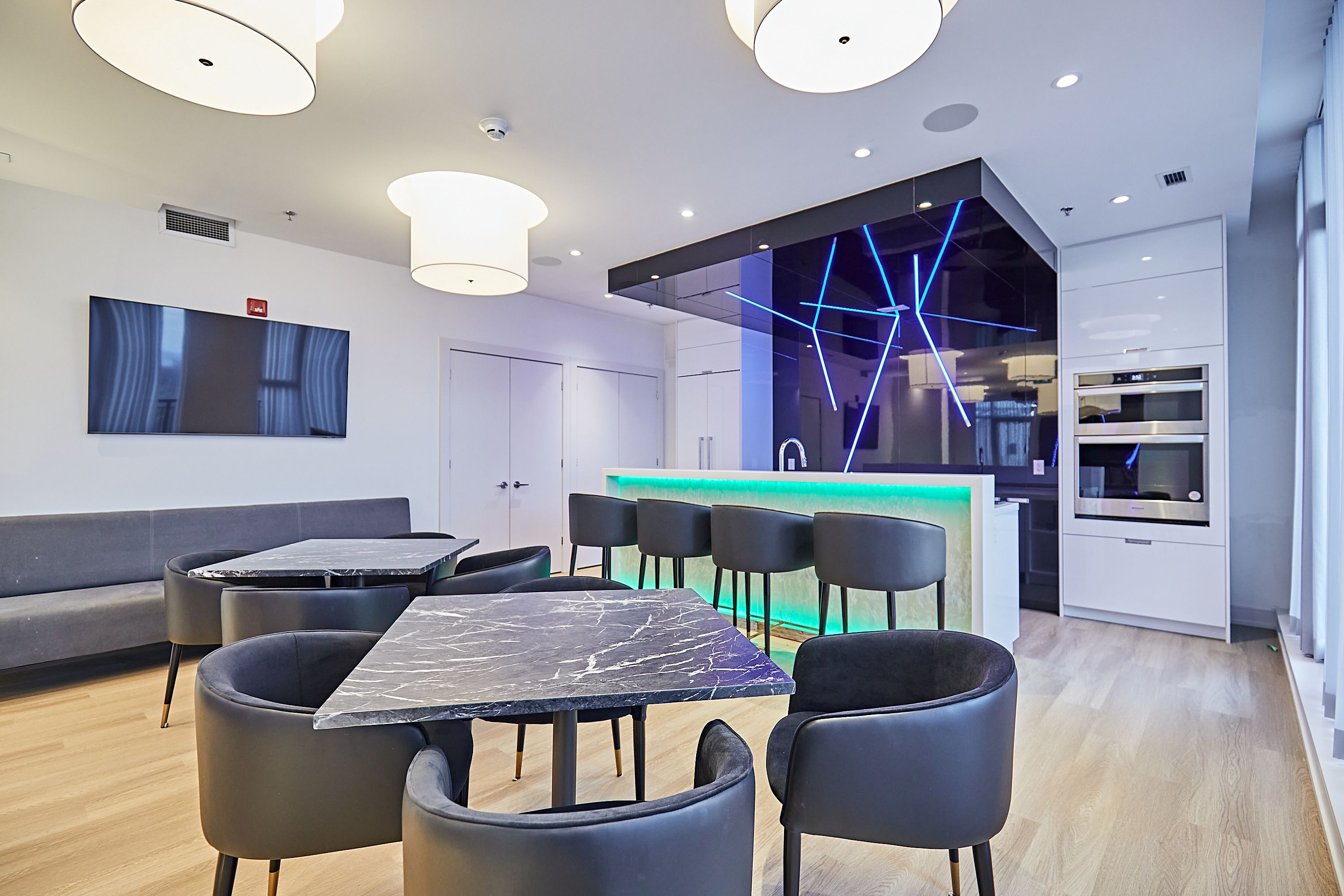 • Building amenities include media room, rooftop terrace, and concierge service.