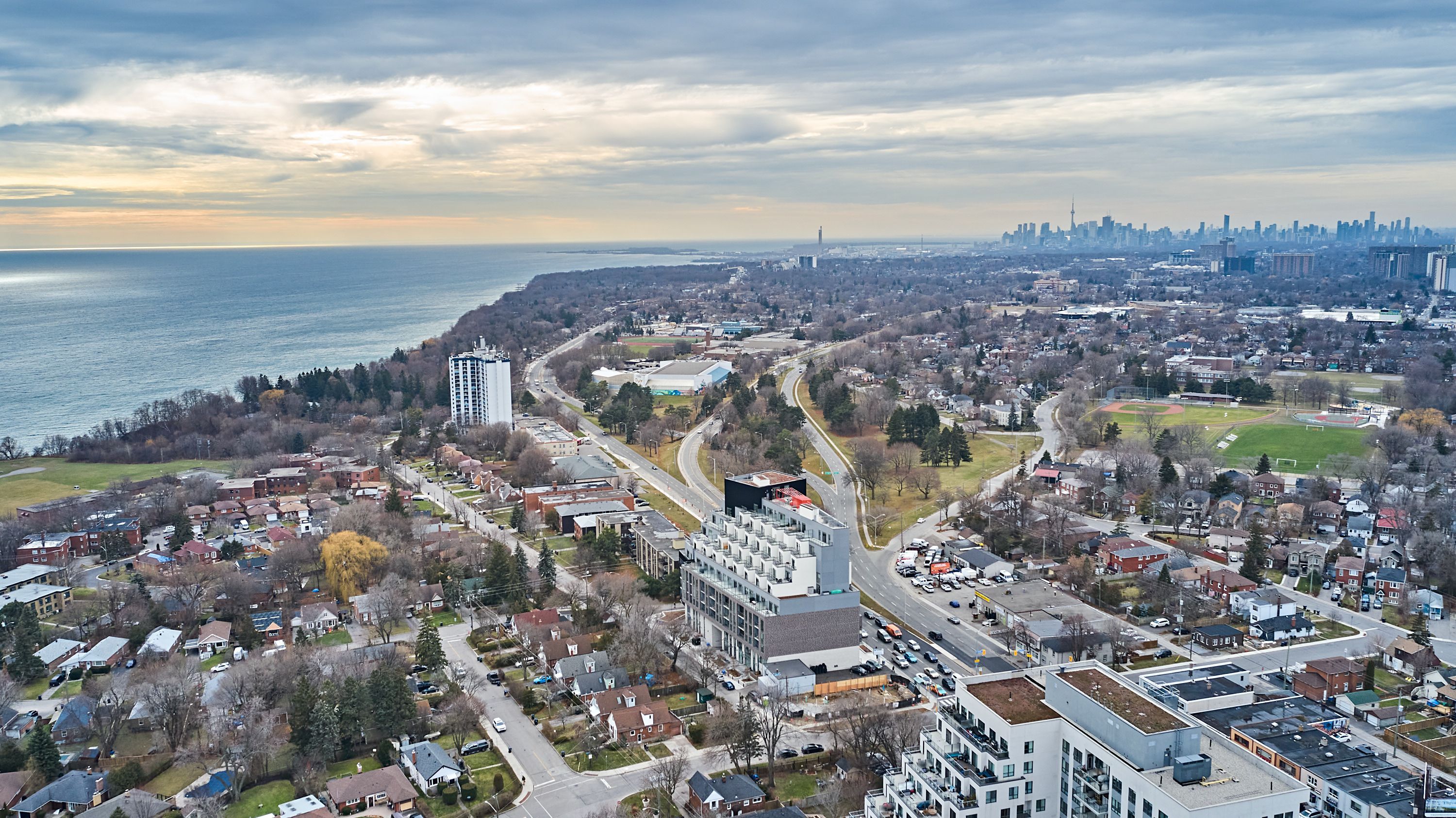 Great ground floor commercial office space fronting on kingston rd in a well-trafficked location in the heart of birchcliffe/cliffisde. Floor-to-ceiling windows and great signage potential. An incredible opportunity for your business some suggested uses include medical, business, professional use (architect, lawyer, accountant, etc), media marketing office, educational use, etc . Landlord willing to do some renovations for a great tenant. Shell space currently. **extras** a+++ building features including dog wash, media room, top floor party room, concierge, & a rooftop terrace w bbq area, al fresco dining area, cabanas, fire pit, and unbeatable panoramic views of the city and unobstructed views of the lake! Note: stairs can be removed for more usable space to the unit.