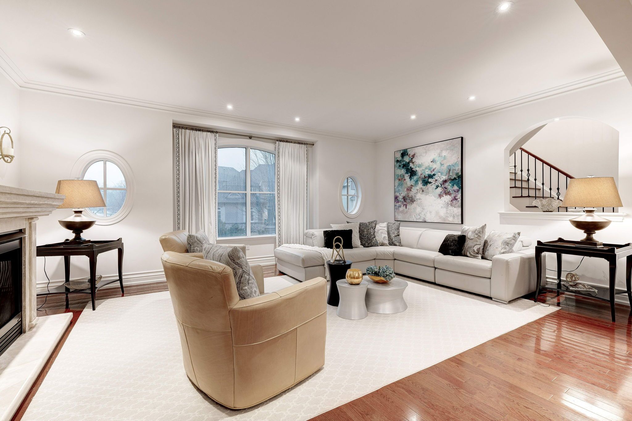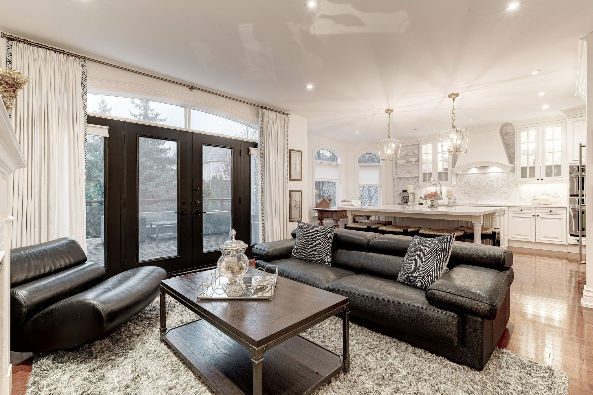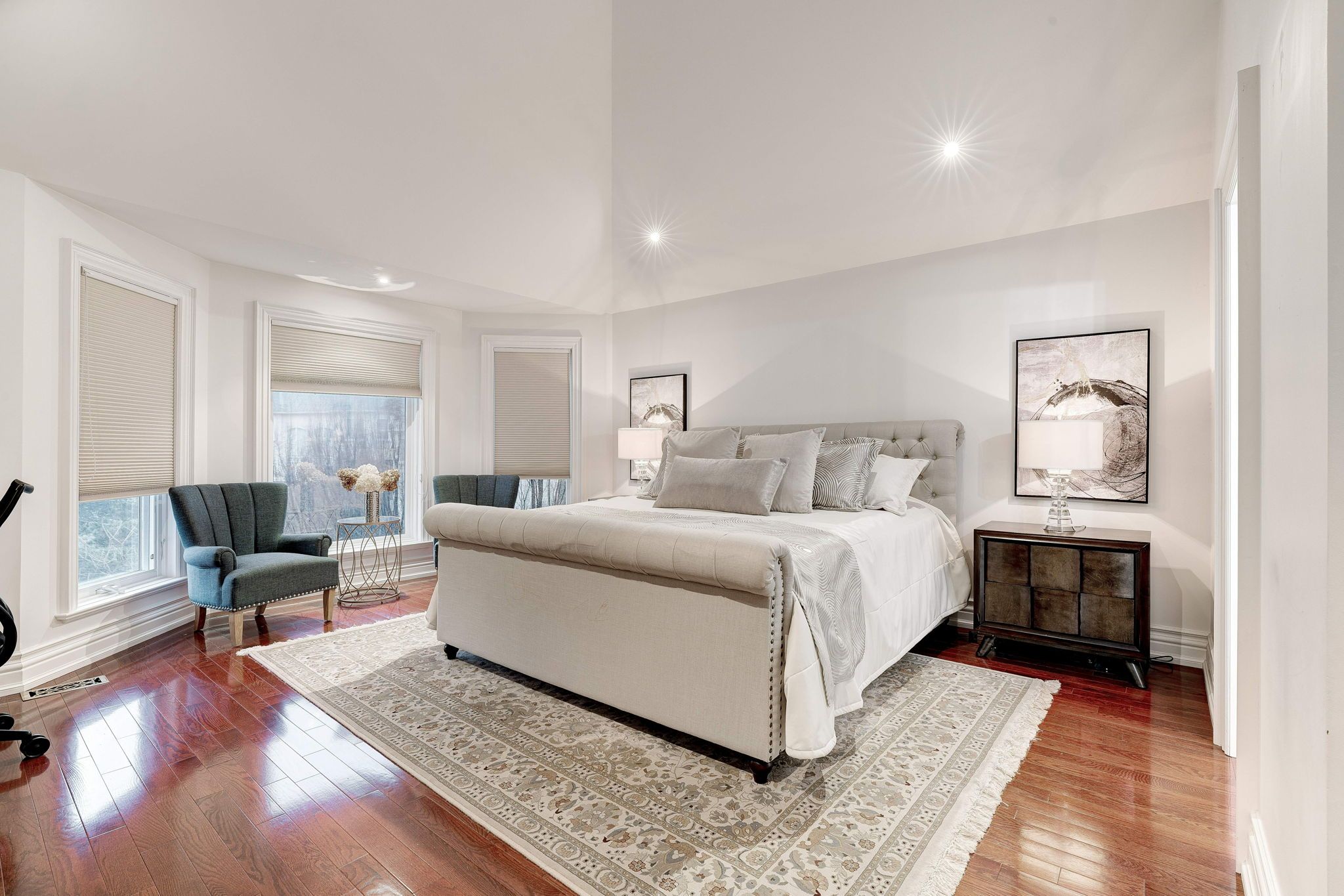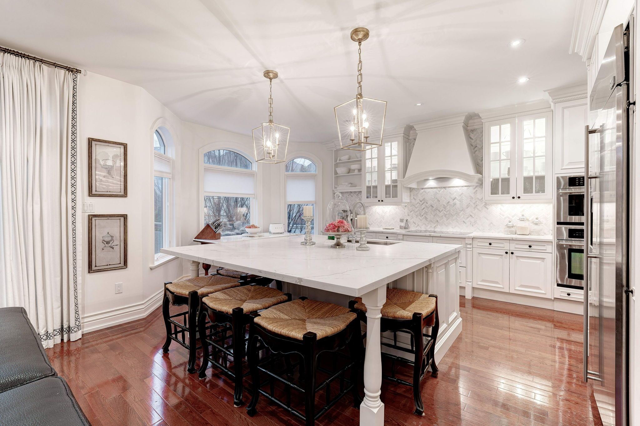 • Bright interior with expansive windows and stunning hardwood floors.