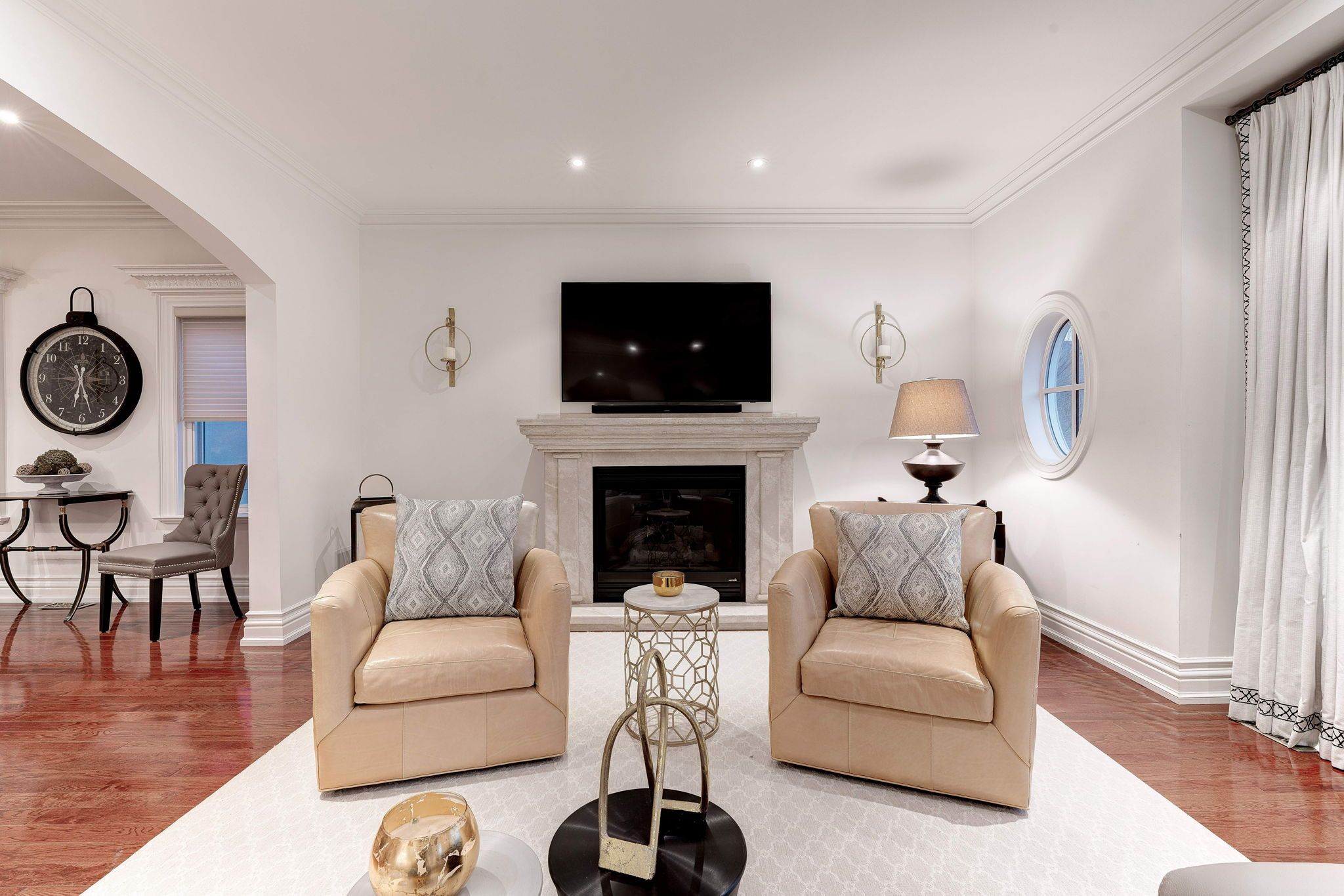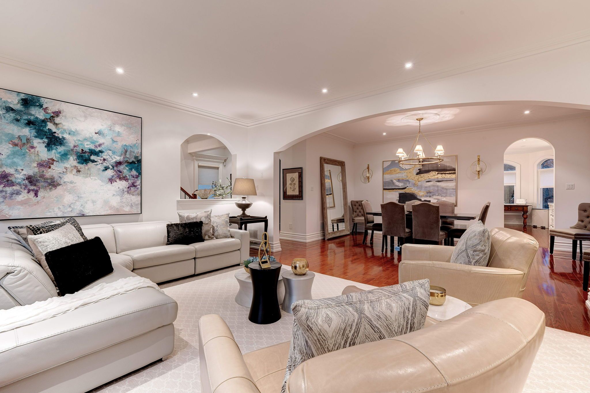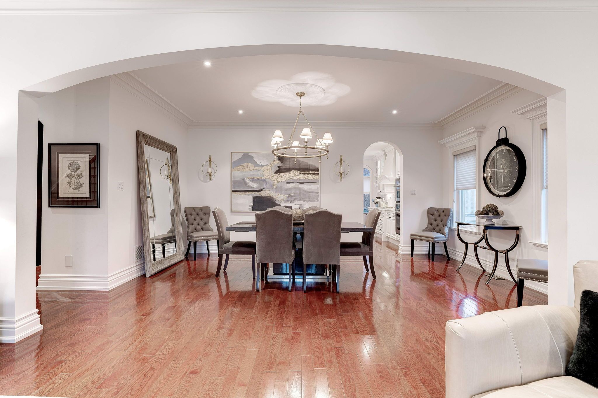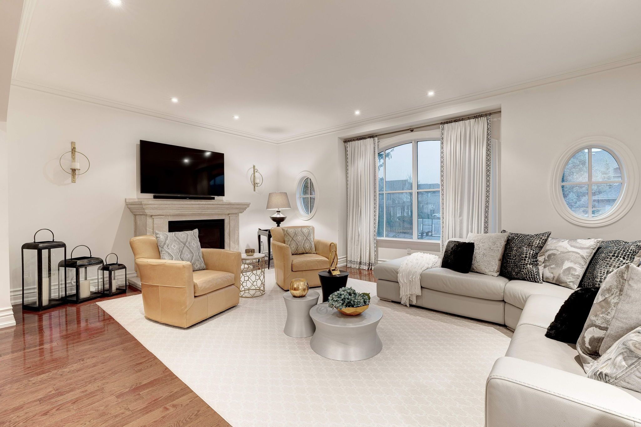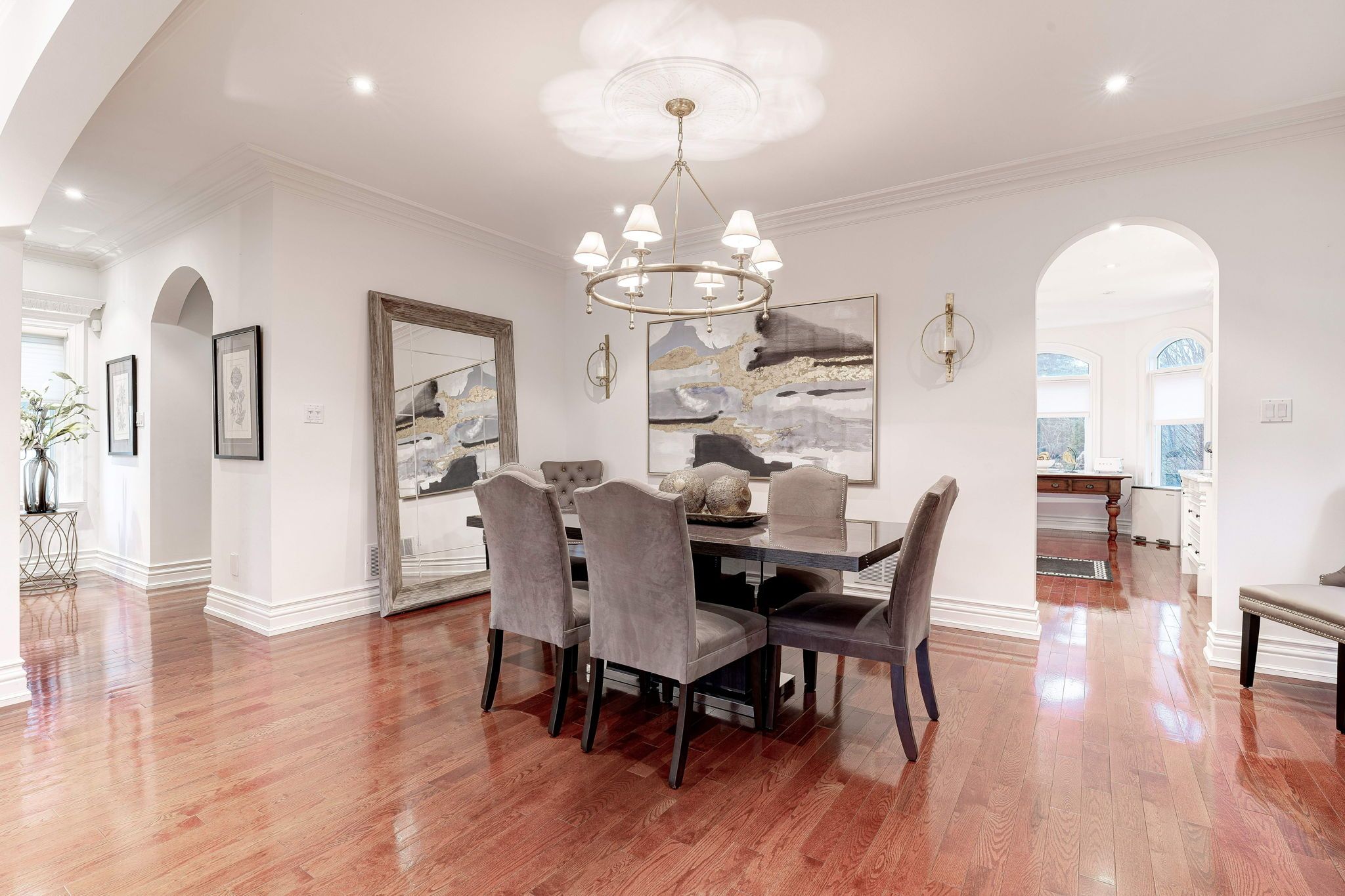 • Bright interior with expansive windows and stunning hardwood floors.