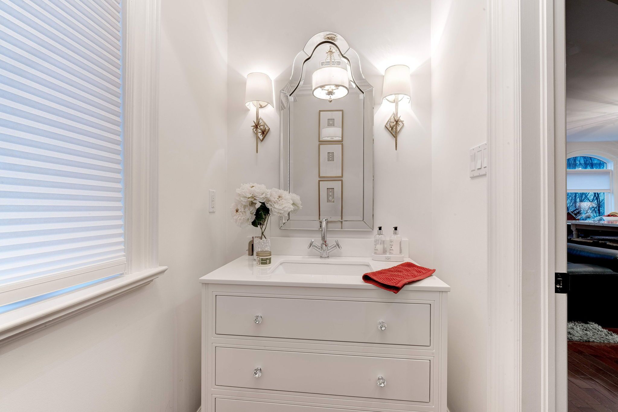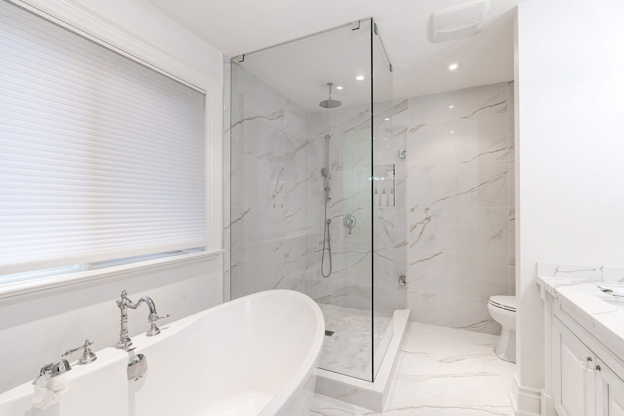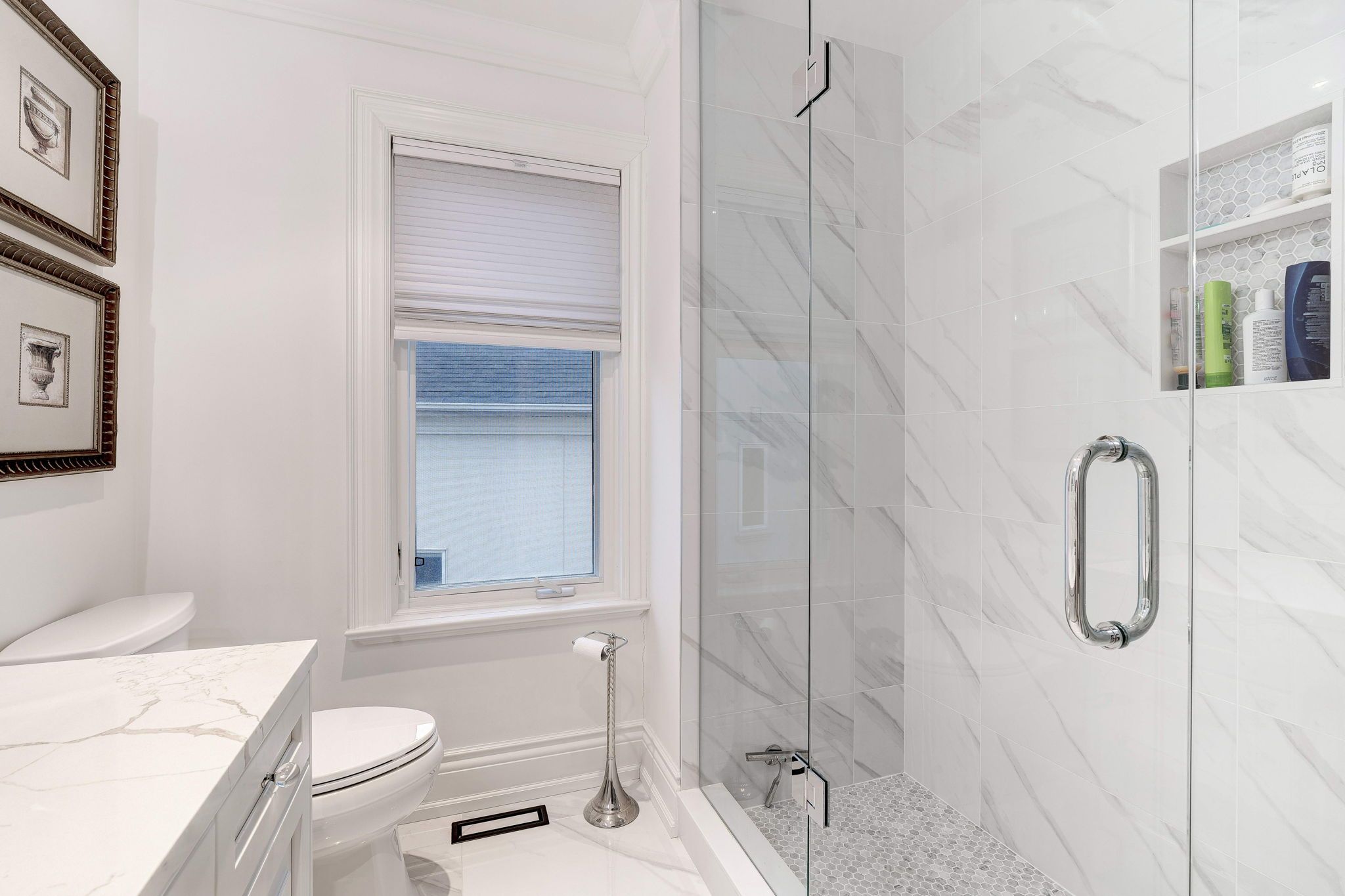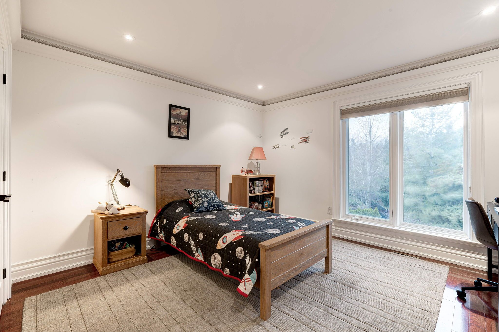 • Bright interior with expansive windows and stunning hardwood floors.