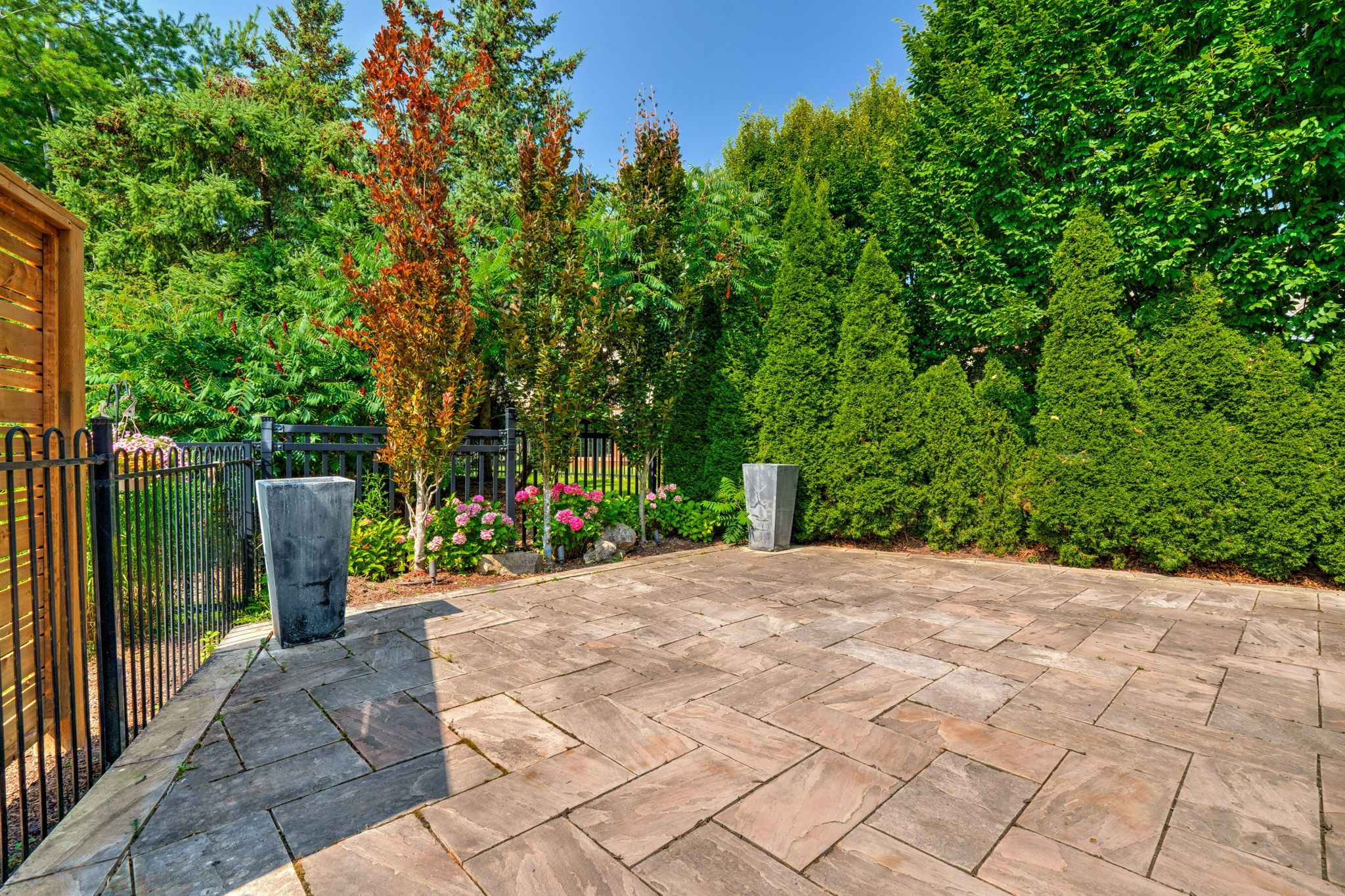 • Private rear yard with views of protected greenspace and low-maintenance features.