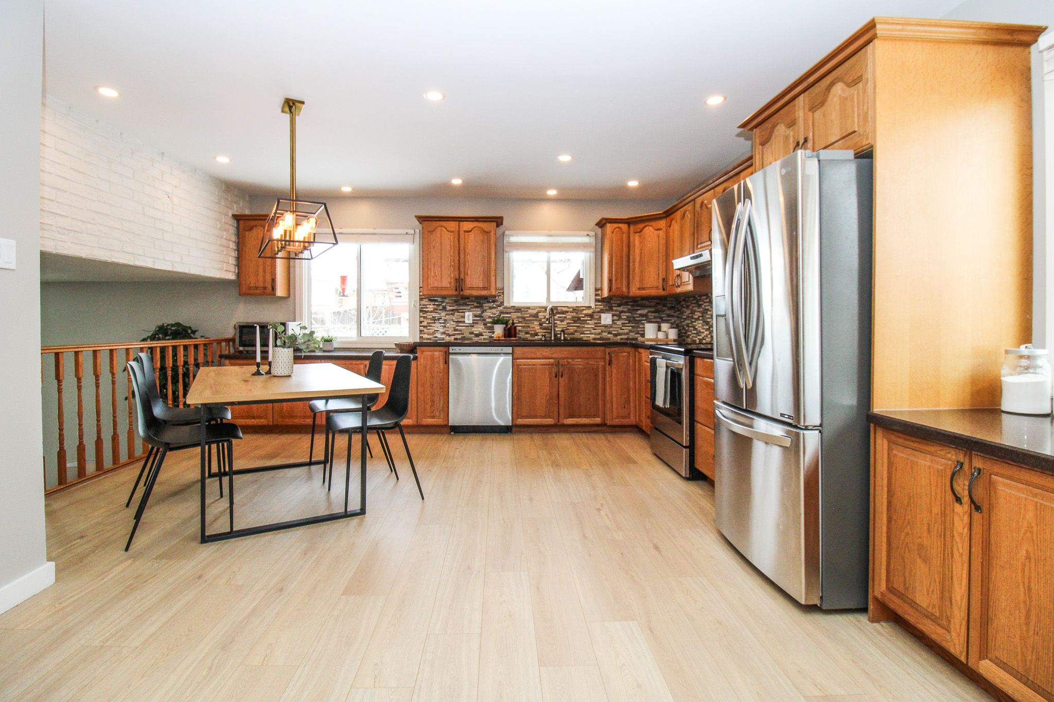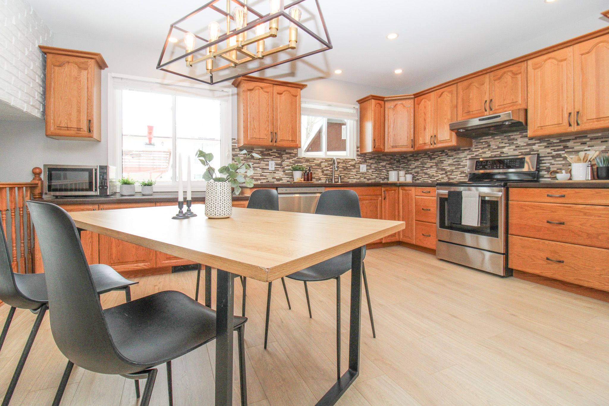 Prime west-end home that's much bigger than it appears. This home has everything on your wish list including a huge kitchen with stone countertops, primary en-suite, bright home office, main floor laundry, renovated baths and an attached garage. Three bedrooms up, two more versatile spaces in the basement and a dedicated home theatre with serious wow factor. Outside, the meticulously maintained property has something for everyone. The flat, fully fenced back yard includes custom structures for the kids, shady spots to relax, abundant storage and an above-ground pool. Kawartha heights park is right across the street and the home is steps from peterborough's most sought-after schools, with easy access to the highway and the city's best amenities. Move right in.