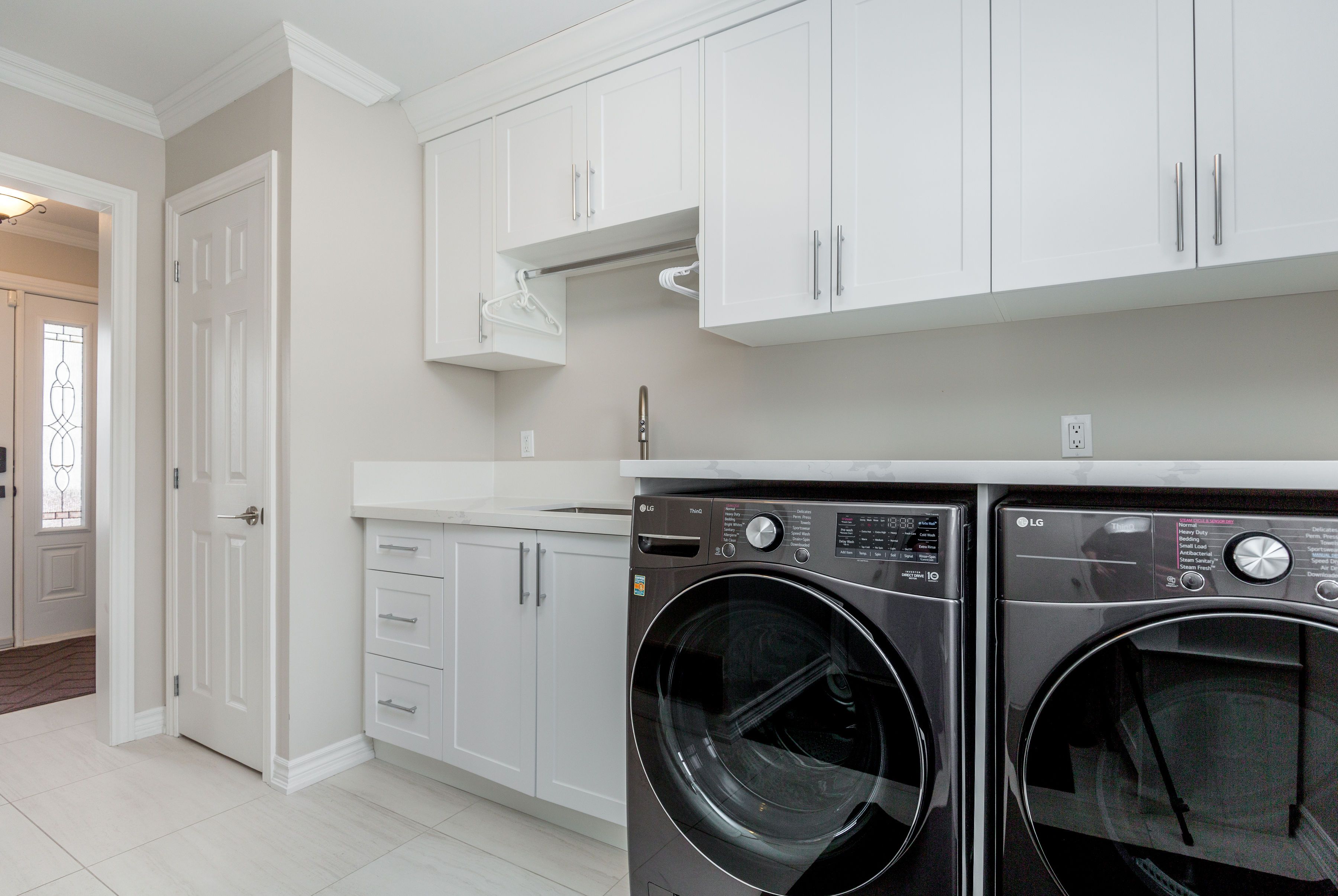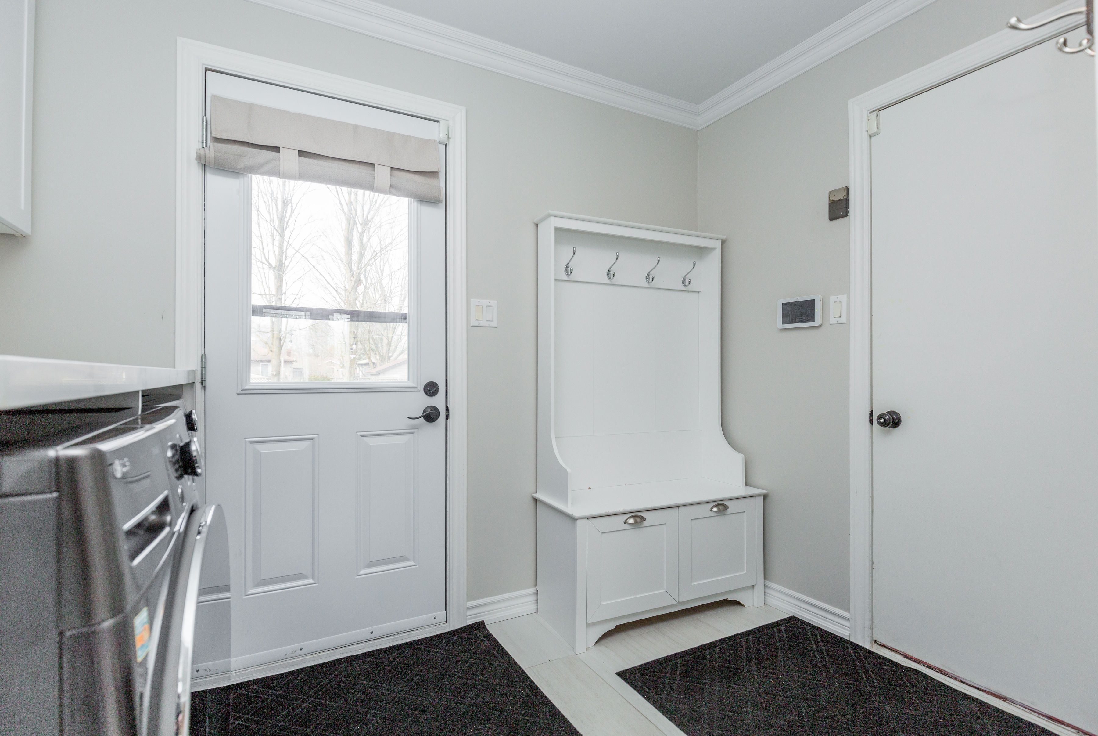 • Oversized heated garage with easy backyard access for hobbyists.