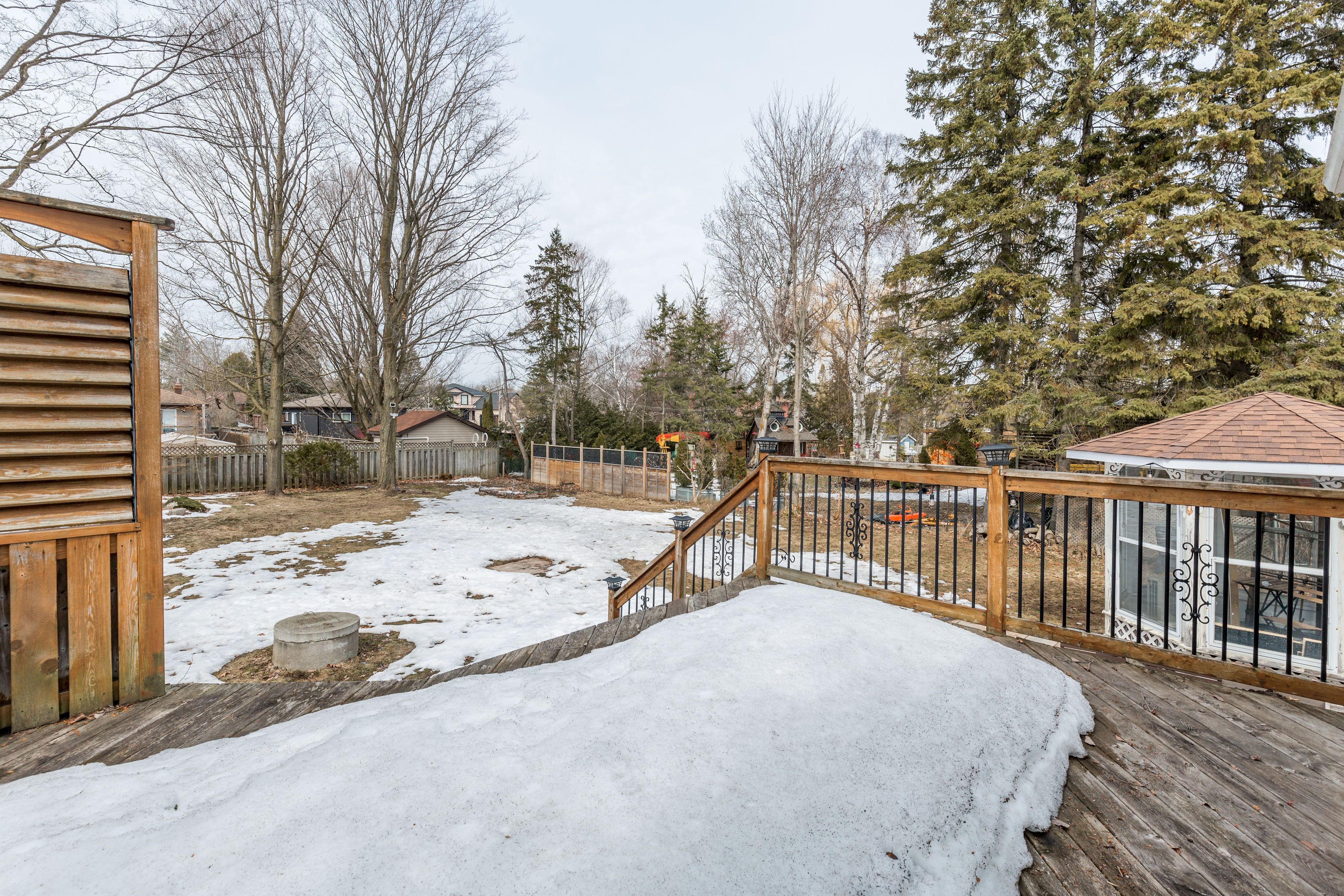 • Multi-tiered deck with gazebo, perfect for summer gatherings.