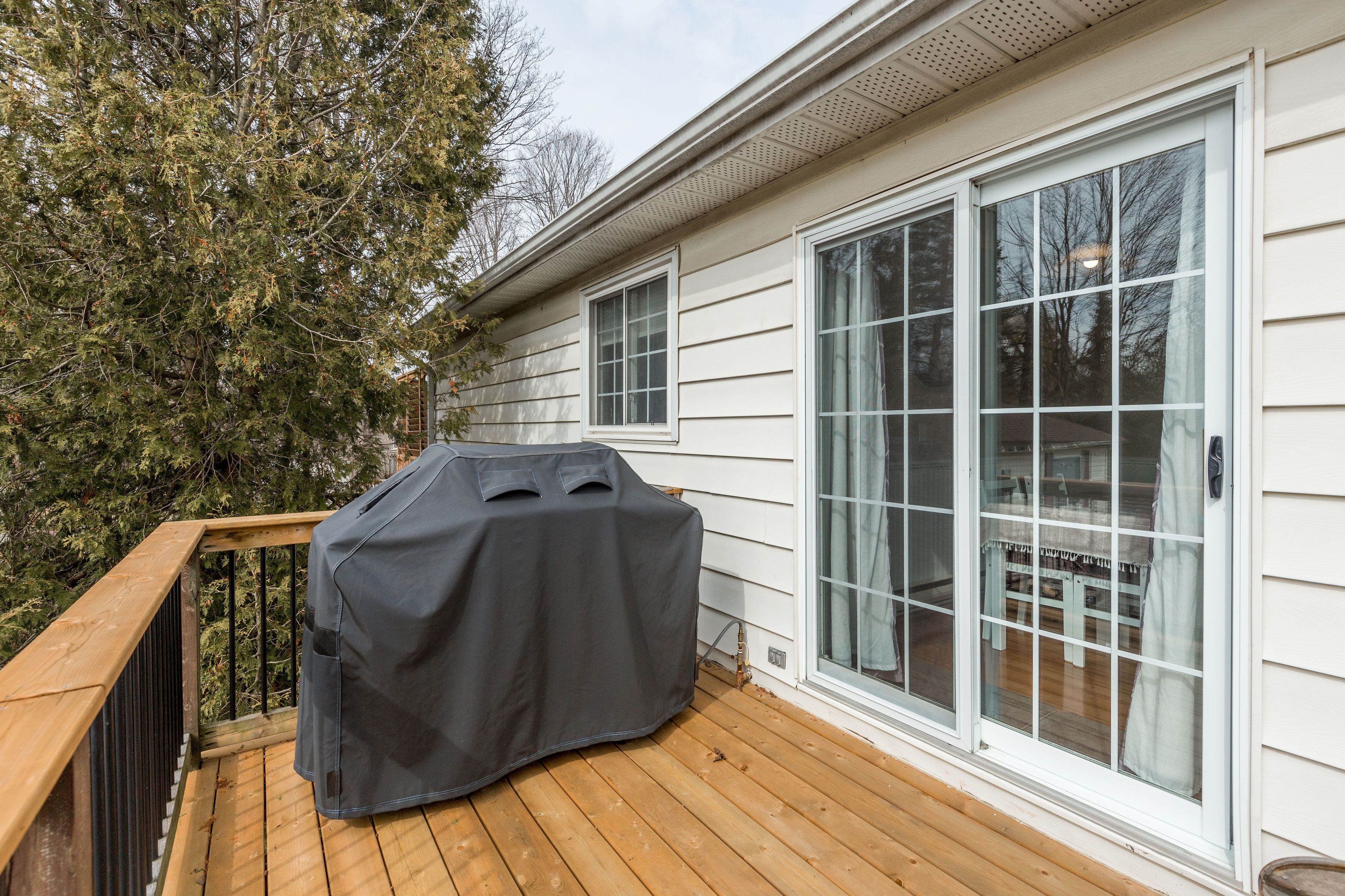 Welcome to this thoughtfully updated custom bungalow in the heart of innisfil, set on a spacious, 75 x 200 foot treed lot with plenty of room to relax, play, and entertain. With 5 bedrooms, 3 bathrooms and a flexible layout, there's space here for the whole family to enjoy. The oversized 525 square foot heated garage is a dream for hobbyists or anyone needing extra room, complete with a rear overhead door for easy backyard access. Outside, the fun really begins-a multi-tiered deck with gazebo creates the perfect hangout spot for summer nights, weekend bbqs, and gatherings with friends, plus two handy storage sheds for all your extras. Inside, the bright and open living and dining areas are filled with natural light from large windows. The updated kitchen features timeless white subway tile, a generous eat-in space, and patio doors leading straight to your bbq deck-making entertaining easy and everyday living even better. All three bathrooms have been beautifully renovated with fresh, modern finishes. Recent updates include a finished basement renovation (2024), upstairs bathroom (2025), 1. 5 tonne ductless a/c with heat pump (2024), and an electric fireplace (2021), so you can move in and enjoy right away. Located just minutes from innisfil beach park-a 75-acre waterfront playground on lake simcoe-and close to schools, shopping, the innisfil idealab & library, and ymca, this home offers a great mix of comfort, convenience, and lifestyle.