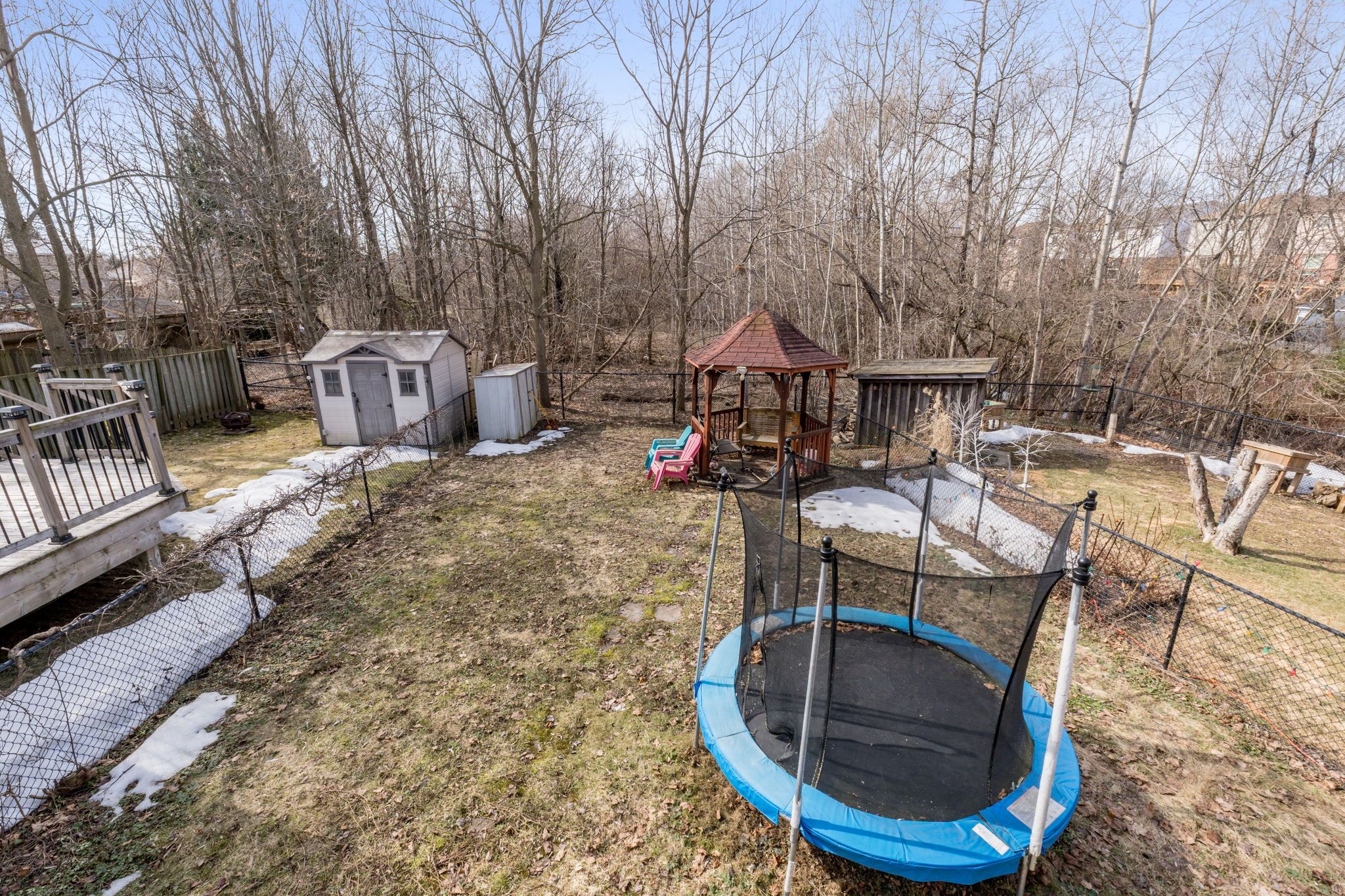 • Large fenced backyard backing onto trees, perfect for quiet relaxation.