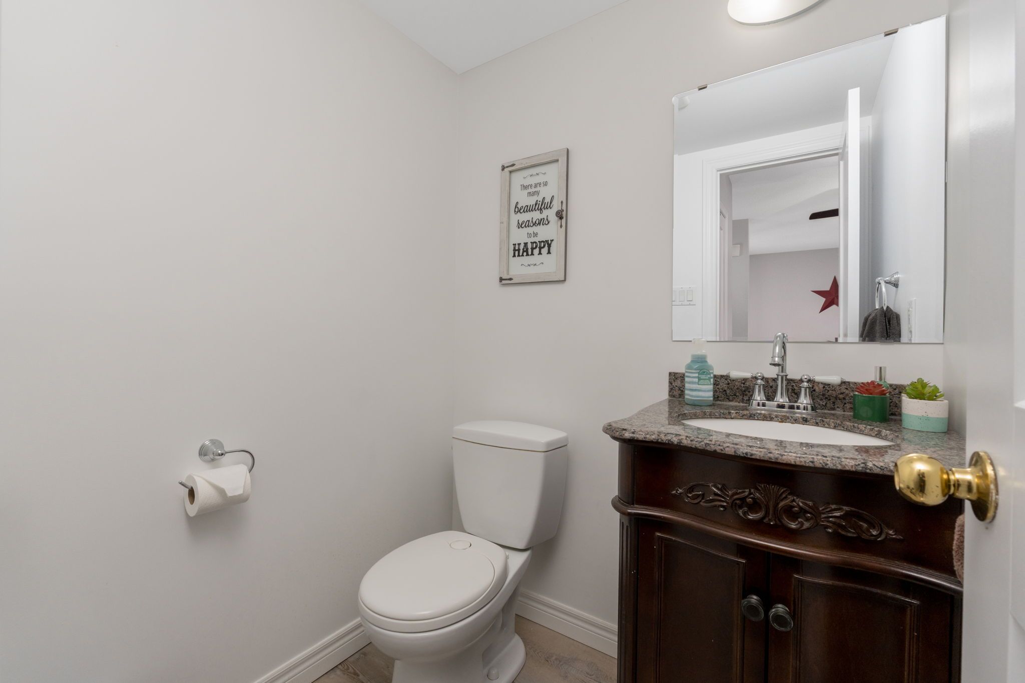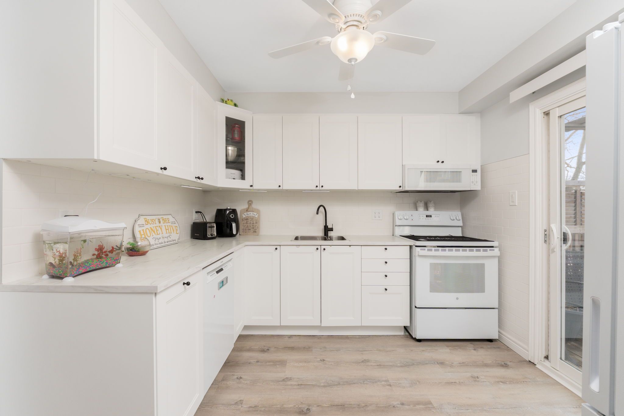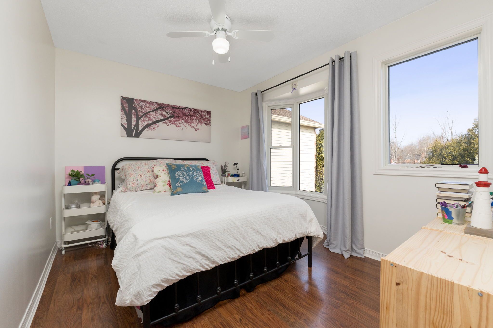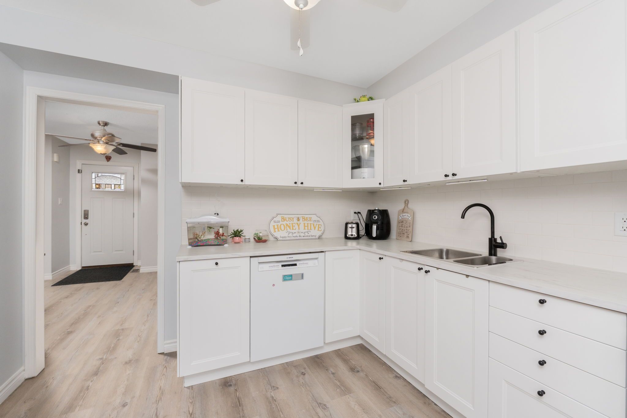 Beautifully renovated 3-bedroom home with no neighbors behind: perfect for starting out, downsizing or starting over! Nothing left to do but unpack and enjoy the compliments! Bright, new kitchen (2024) features crisp white cabinetry, modern white backsplash and lots of cupboard and counterspace. Patio doors lead to backyard deck. Great for barbequing, entertaining or morning coffee! Dining room off the kitchen has a large picture window- a good spot for meals and homework. Spacious living room with bay window overlooking street and renovated powder room off to the side. Main floor has high quality vinyl click floors- low maintenance & scratch resistant- perfect for kids/pets. Upstairs features 3 bedrooms and a beautifully renovated bathroom with white cabinetry and linen tower. The entire home was recently painted in fresh, neutral colors, newer interior doors and hardware create an upgraded, polished look. Finished basement offers lots of extra living space- perfect for kids, working from home, a home gym, man cave... Whatever you'd like! Large backyard is fenced and backs onto treed area. You'll love the privacy, quiet, and the view- especially in the summer and fall. Located in small town acton within a friendly neighborhood. Walk to multiple schools in minutes. Close to parks, shopping, nature trails, indoor public pool, skate park, and more. One car garage + parking for 2 more cars in driveway. Don't miss out on the opportunity to call this listing "home." dates: windows (2017), front door (2018), garage door (2018), main floor flooring (2020), fridge & stove (2024), dishwasher (2026), central air (2018)