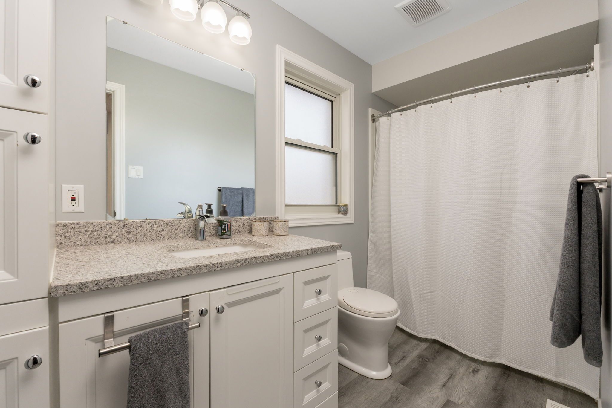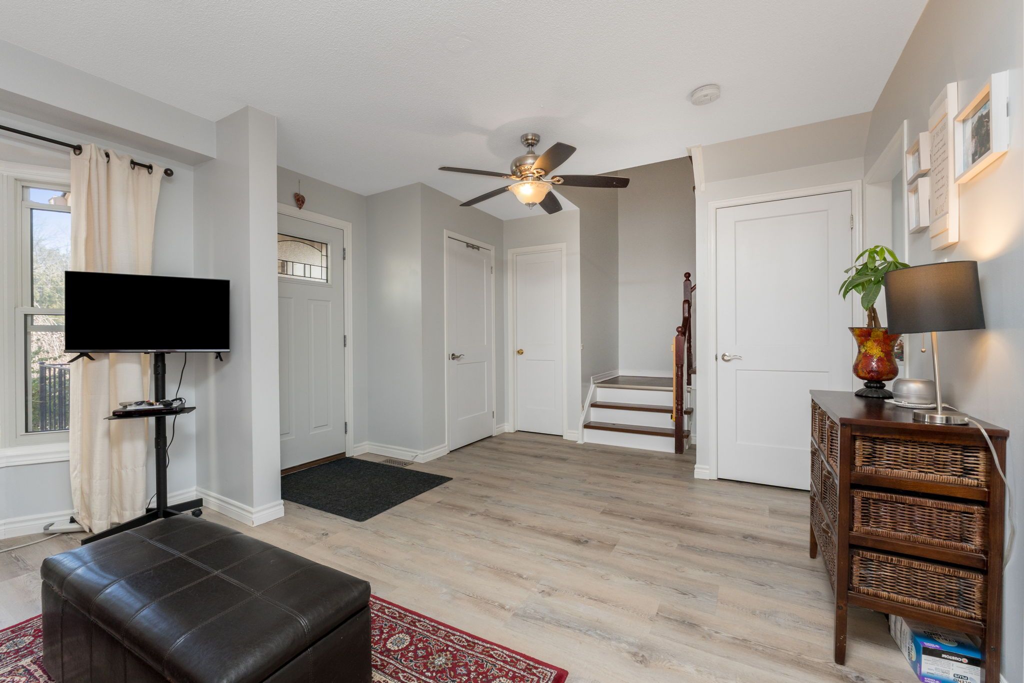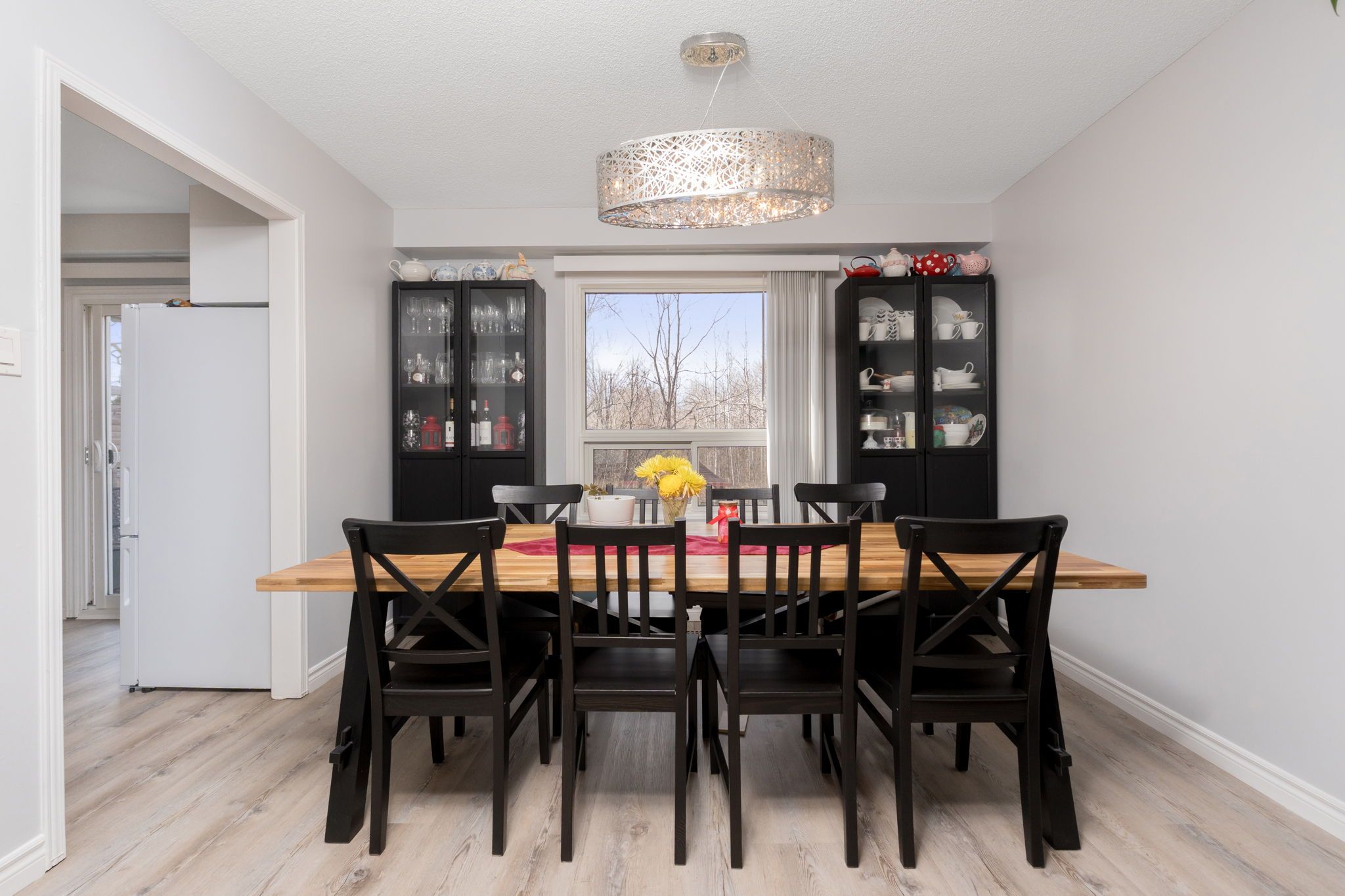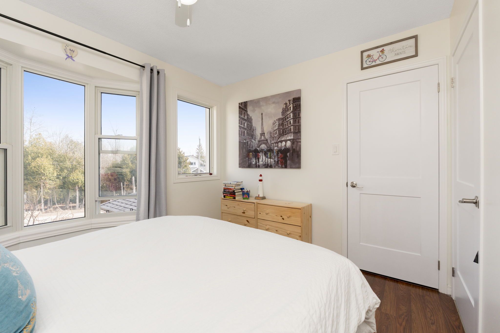 Beautifully renovated 3-bedroom home with no neighbors behind: perfect for starting out, downsizing or starting over! Nothing left to do but unpack and enjoy the compliments! Bright, new kitchen (2024) features crisp white cabinetry, modern white backsplash and lots of cupboard and counterspace. Patio doors lead to backyard deck. Great for barbequing, entertaining or morning coffee! Dining room off the kitchen has a large picture window- a good spot for meals and homework. Spacious living room with bay window overlooking street and renovated powder room off to the side. Main floor has high quality vinyl click floors- low maintenance & scratch resistant- perfect for kids/pets. Upstairs features 3 bedrooms and a beautifully renovated bathroom with white cabinetry and linen tower. The entire home was recently painted in fresh, neutral colors, newer interior doors and hardware create an upgraded, polished look. Finished basement offers lots of extra living space- perfect for kids, working from home, a home gym, man cave... Whatever you'd like! Large backyard is fenced and backs onto treed area. You'll love the privacy, quiet, and the view- especially in the summer and fall. Located in small town acton within a friendly neighborhood. Walk to multiple schools in minutes. Close to parks, shopping, nature trails, indoor public pool, skate park, and more. One car garage + parking for 2 more cars in driveway. Don't miss out on the opportunity to call this listing "home." dates: windows (2017), front door (2018), garage door (2018), main floor flooring (2020), fridge & stove (2024), dishwasher (2026), central air (2018)