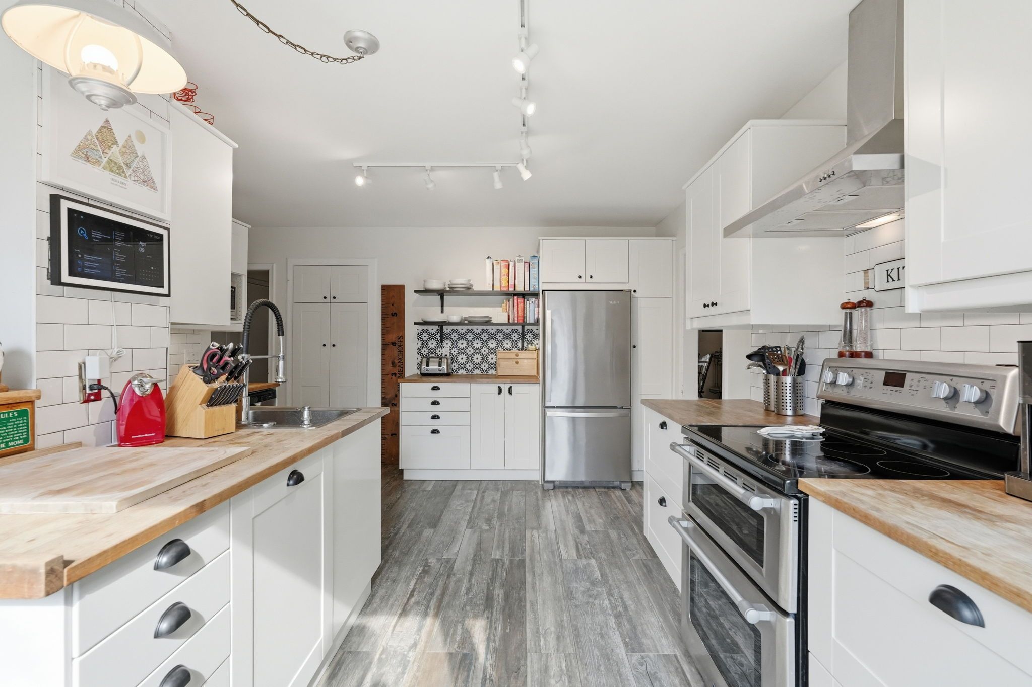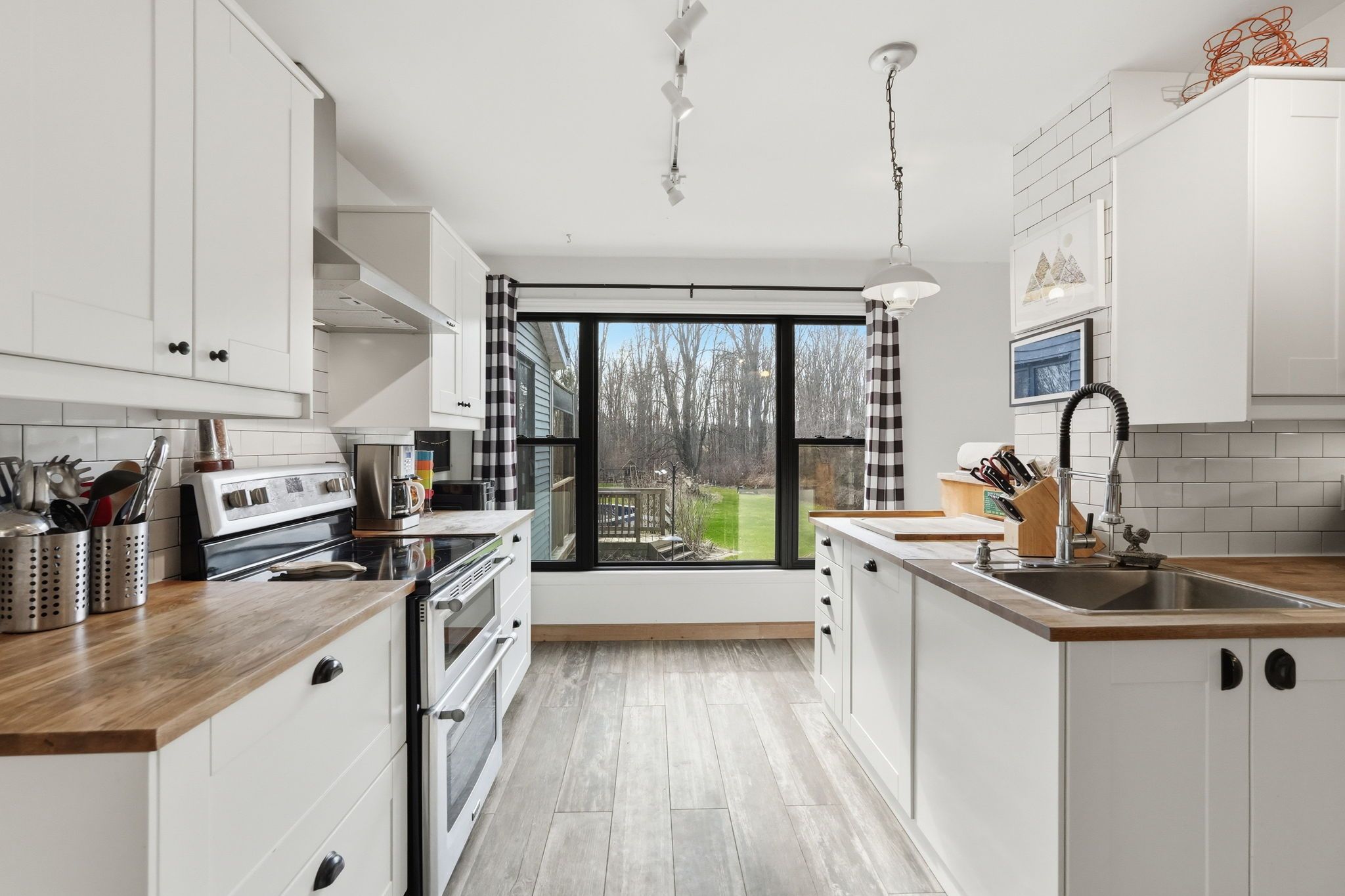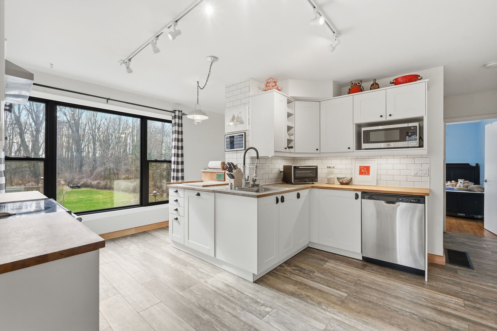 • Updated modern farmhouse kitchen and high-end windows for comfort.