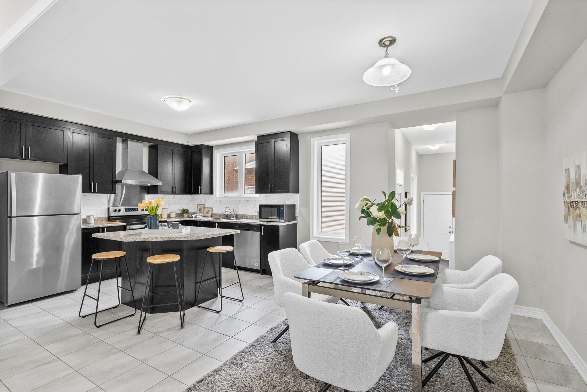 • Open-concept main floor with 9-ft ceilings and a gourmet kitchen.