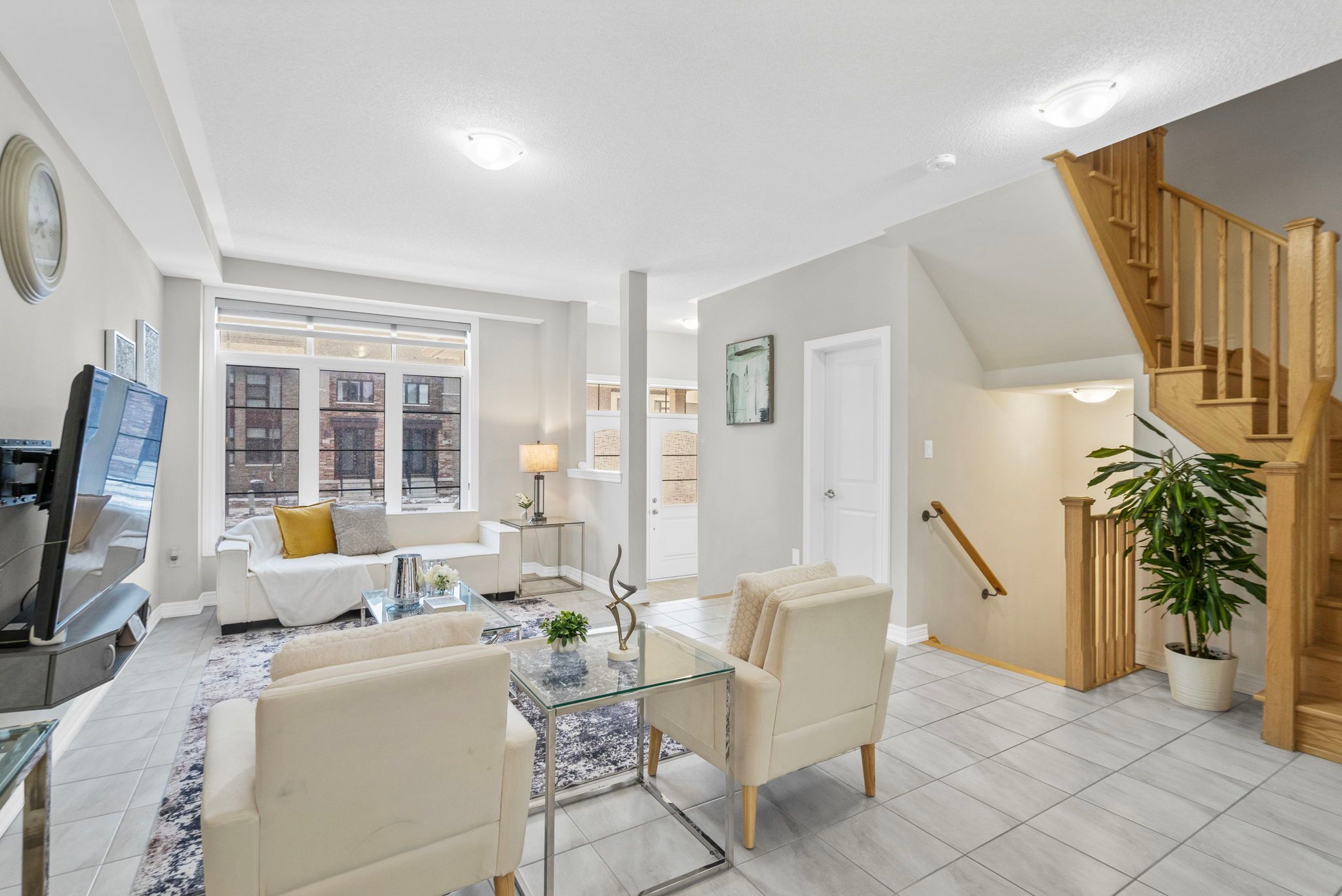 Rare "vanier" model by arista homes in the heart of whitby meadows! This premium 3-bedroom, 3-bathroom 100% freehold townhome offers the rare luxury of a built-in double-car garage with direct interior access-a standout feature in this sought-after enclave. Boasting a sophisticated open-concept layout, the main floor shines with 9-ft ceilings, ceramic tiling, and a gourmet kitchen featuring custom cabinetry, a center island, designer backsplash, and premium stainless steel appliances. The sun-drenched living area enjoys an east-facing exposure, flooding the space with morning light. Retreat to the primary suite featuring soaring ceilings, a generous walk-in closet, and a spa-inspired 4-piece ensuite. Secondary bedrooms are well-appointed with custom closet organizers. Bonus: a massive unfinished basement awaits your personal touch for a gym, theatre, or guest suite. Unbeatable location: steps from the future $53. 9m west whitby elementary school (opening sept or oct 2026). Minutes to hwy 412/407/401, lynde creek park, and the world-class thermëa spa. No maintenance fees! A must-see for families and investors seeking modern, turn-key luxury in a high-growth community.