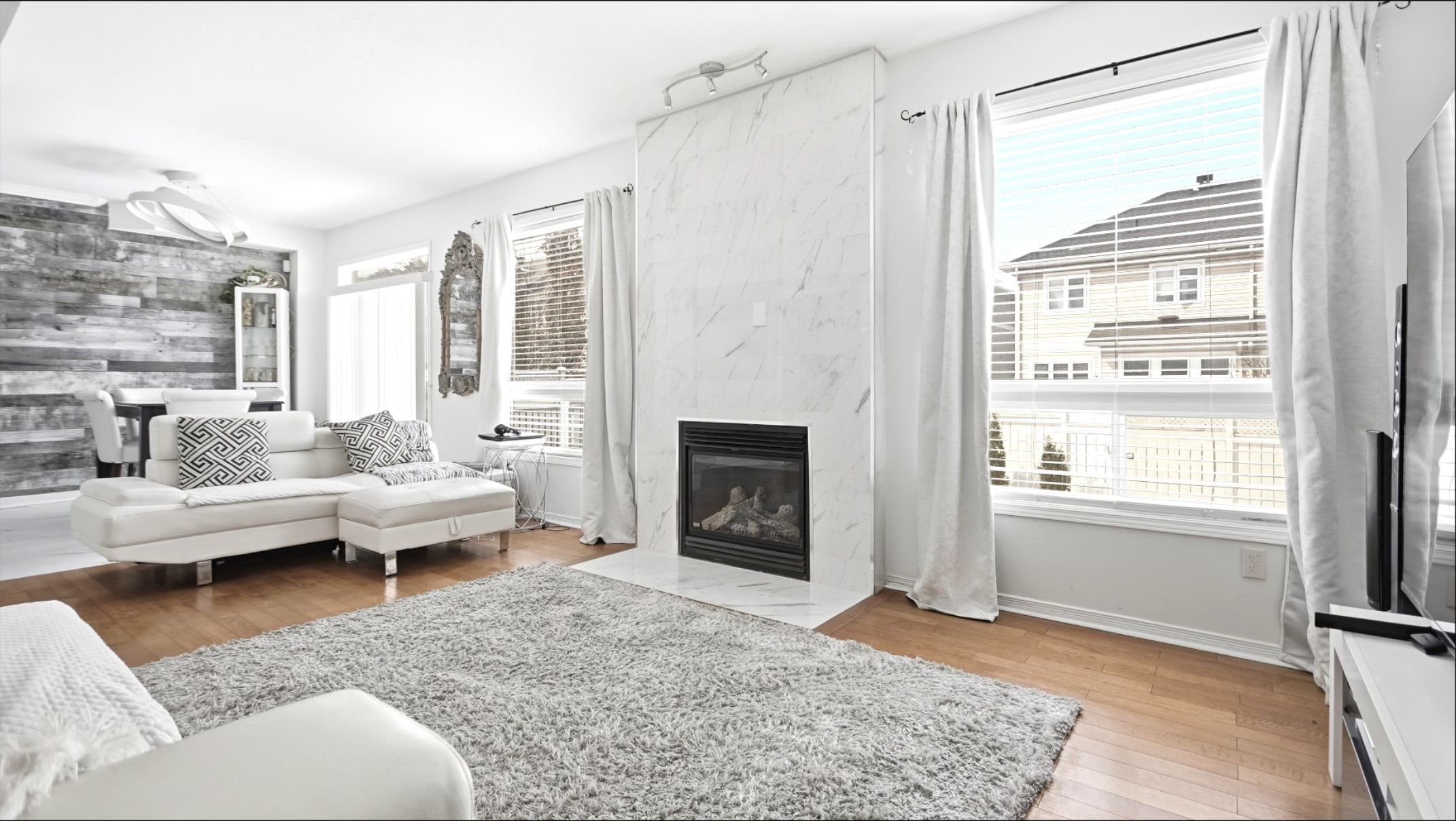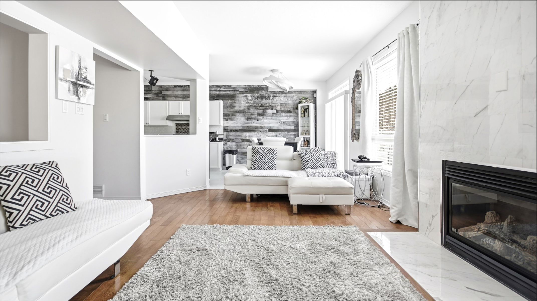 • Open-concept main level with a gas fireplace and access to a spacious deck.