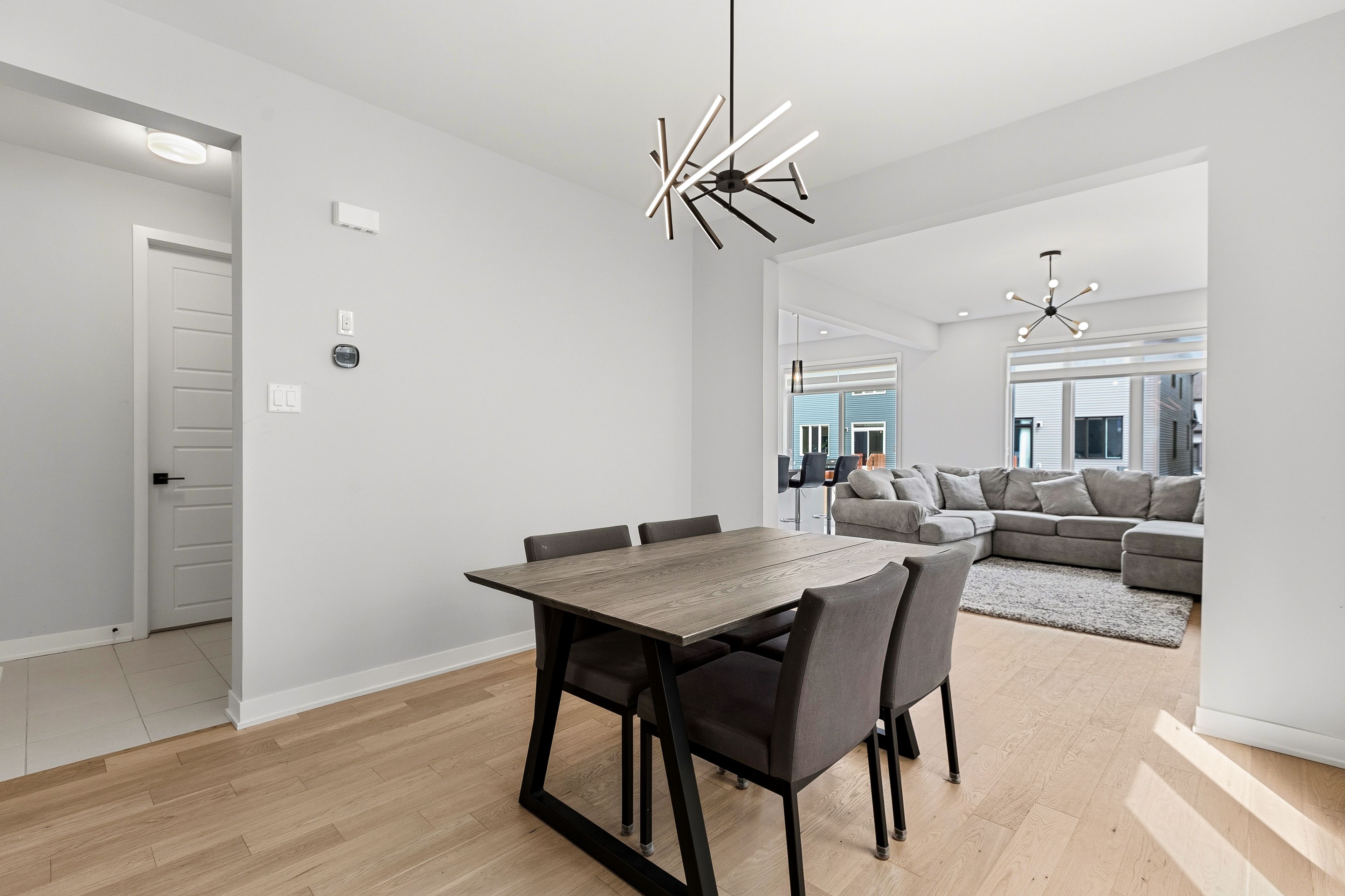 Step into this beautifully crafted, brand-new detached home offering the perfect blend of style, comfort, and modern step into this beautifully crafted, and modern efficiency. Featuring 4 spacious bedrooms and 4 bathrooms, this home is thoughtfully designed for today's lifestyle. The main floor boasts a bright, open-concept layout with a stunning kitchen complete with stainless steel appliances, elegant countertops, stylish cabinetry, a large island with seating, and a convenient pantry. The living room is warm and inviting, highlighted by a cozy electric fireplace and seamless access to the backyard through screen doors perfect for indoor-outdoor living. A partially private dining area adds just the right touch of separation for hosting family dinners or entertaining guests. A powder room completes the main level. Upstairs, you'll find four generously sized bedrooms and two bathrooms, including a beautiful primary retreat featuring a private 3-piece ensuite. The fully finished basement expands your living space with a versatile recreational area and a full bathroom ideal for a home theatre, gym, guest suite, or the ultimate man cave. This energy star certified home is loaded with upgrades, including a 200-amp electrical service, ev charger, owned tankless water heater, and water softener offering both convenience and long-term savings. The backyard fence is scheduled to be installed in may, adding privacy and peace of mind. A perfect opportunity to own a move-in ready, modern home with premium features throughout don't miss it!
