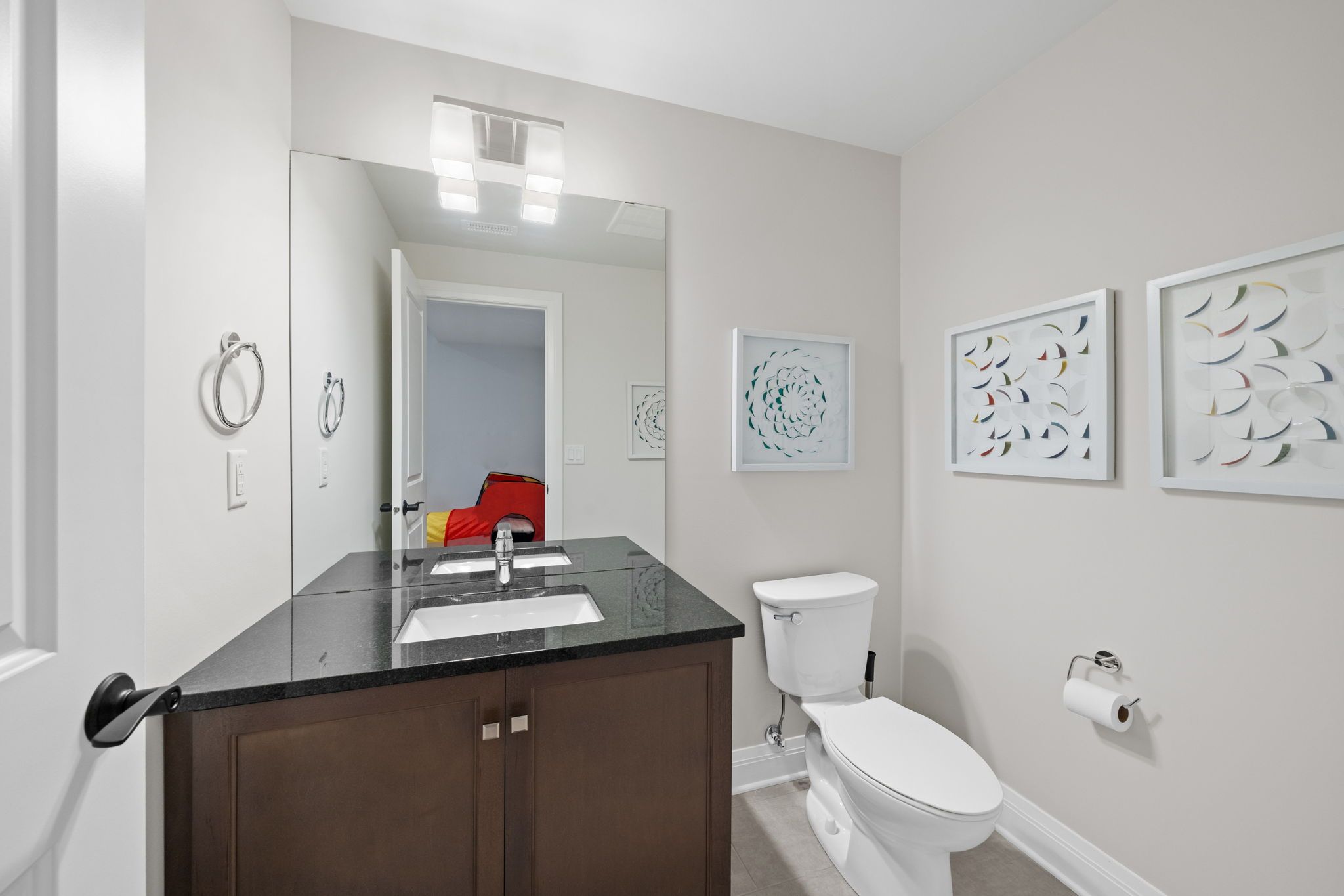 • Finished lower level with high ceilings, gas fireplace, and recreation room.