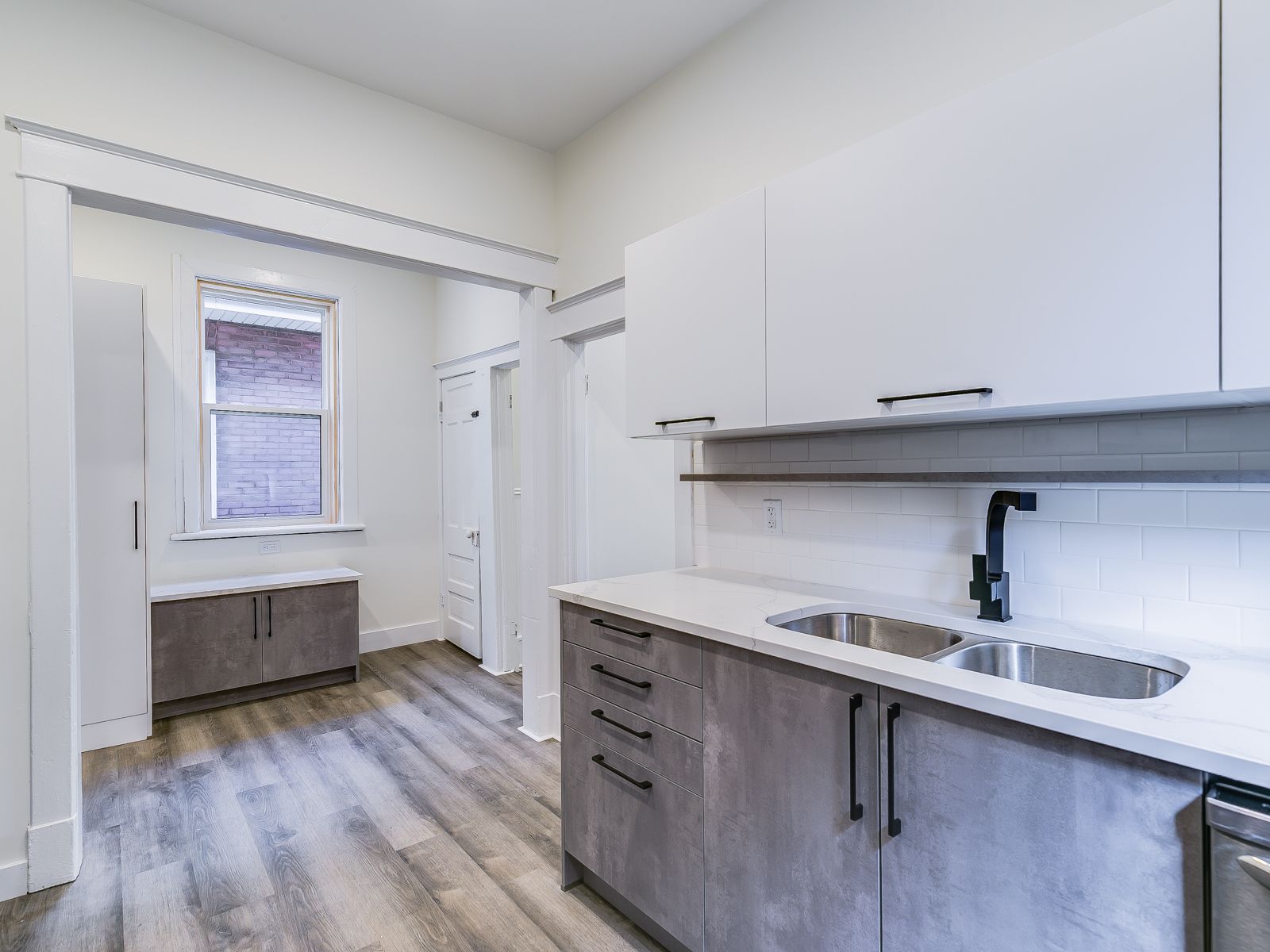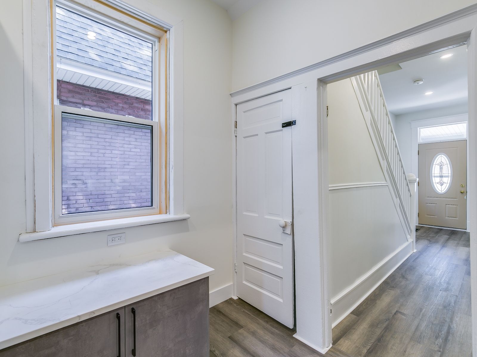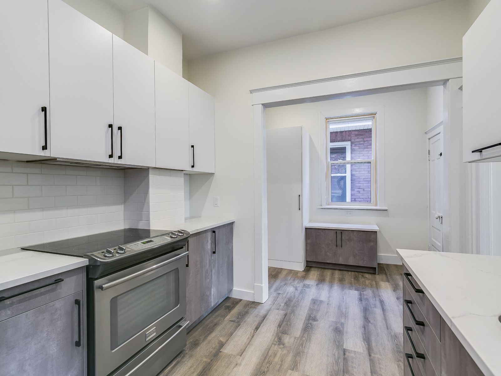 • New kitchen with custom cabinetry and quartz countertops.