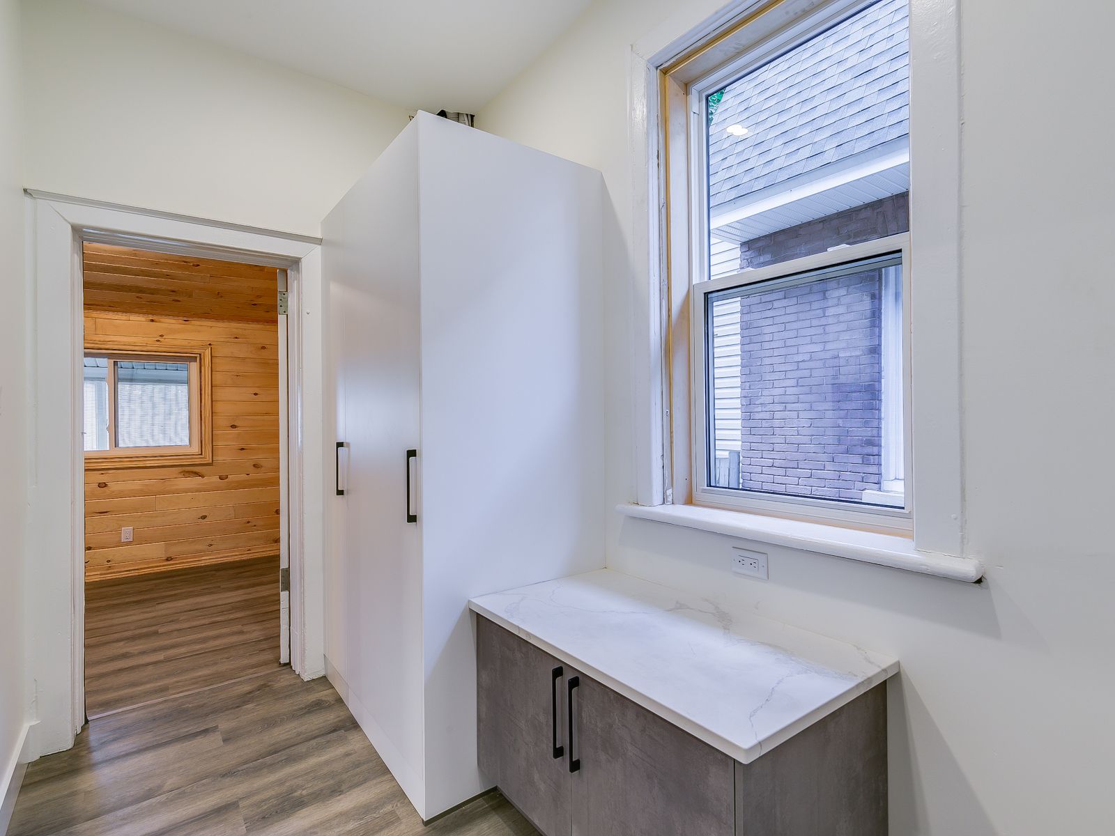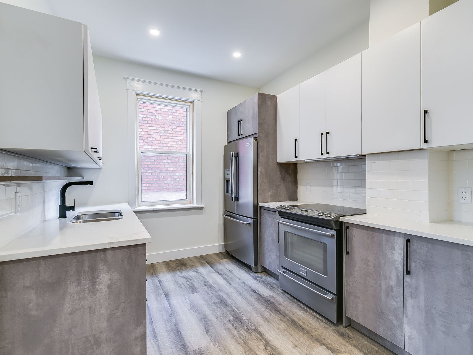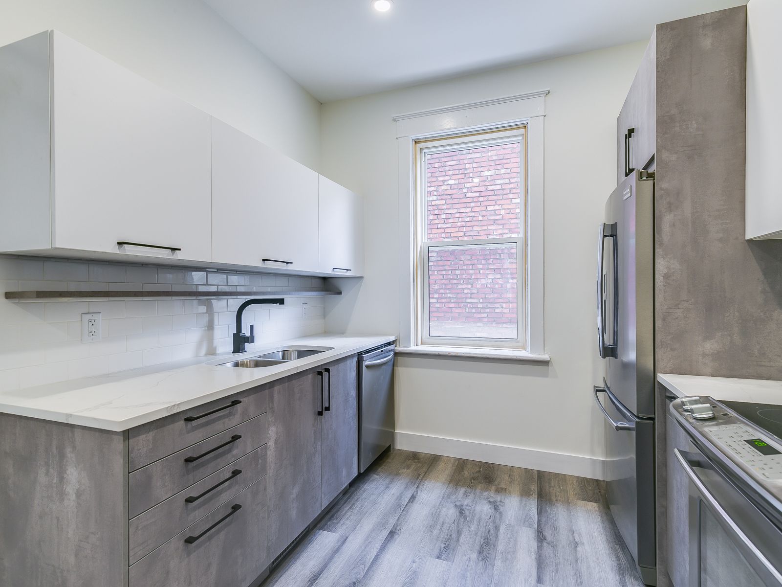 • New kitchen with custom cabinetry and quartz countertops.