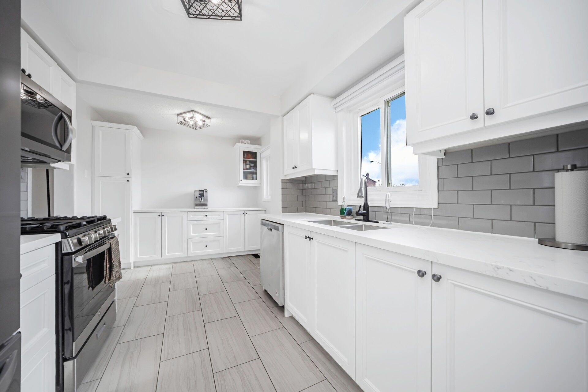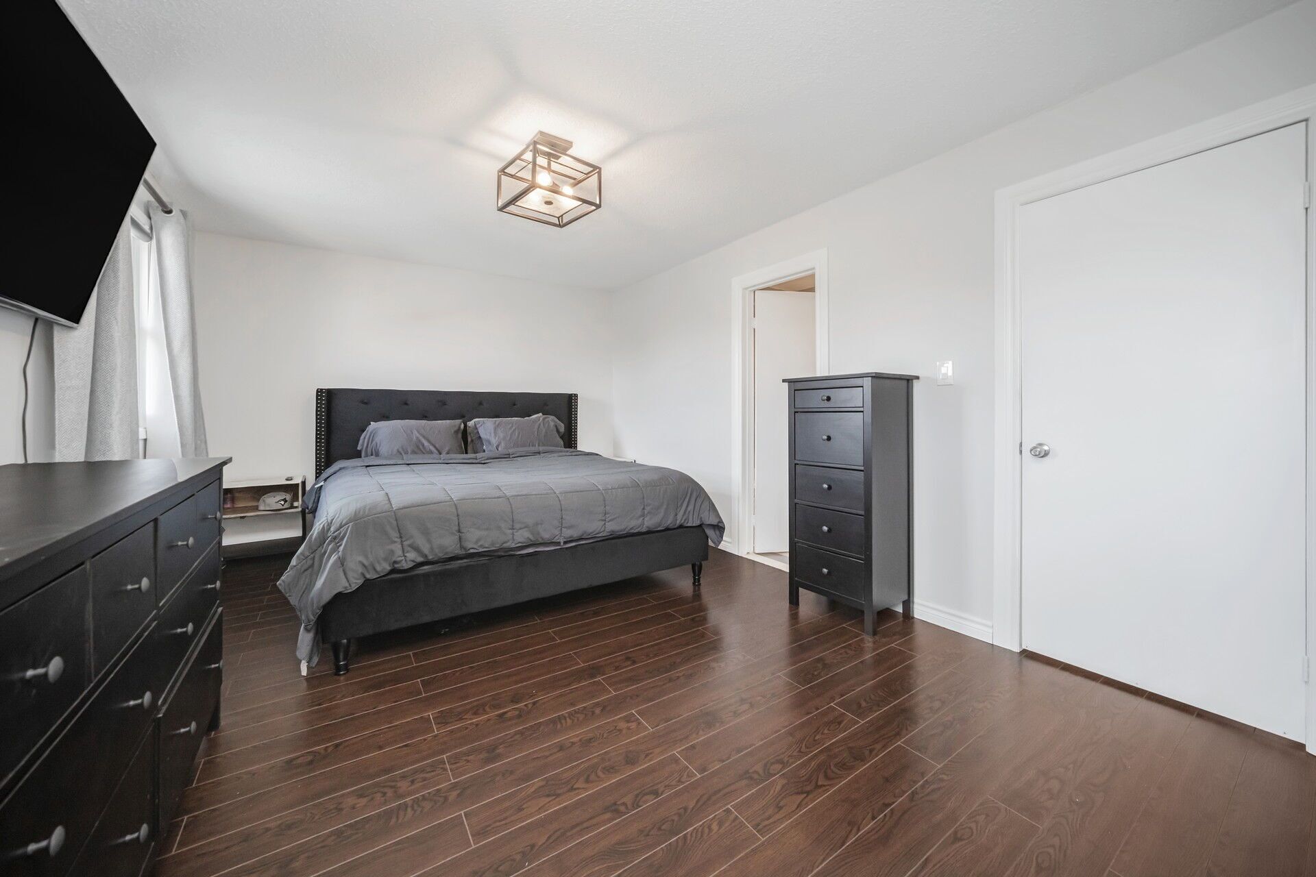 Don't miss this gem in a sought-after neighborhood! Sitting on a massive corner lot, this beautifully maintained, move-in-ready home offers exceptional space both inside and out. Enjoy a bright, spacious layout with large sun-filled windows and no carpet throughout. The private backyard retreat backs onto open space with no rear neighbors, perfect for relaxing or entertaining. Upstairs features 3 generously sized bedrooms, while the finished basement includes a separate bedroom and full bath-ideal for guests, in-laws, or rental potential. Located just minutes from highway 410, a major hospital, and a popular shopping mall, this home combines comfort, convenience, and value.