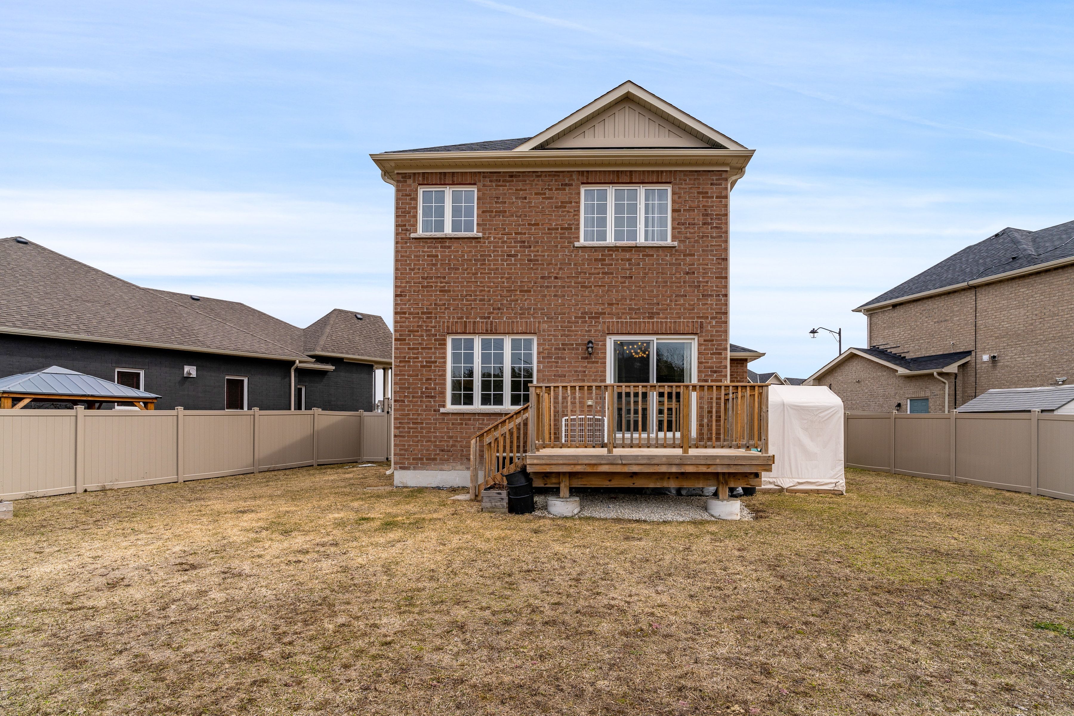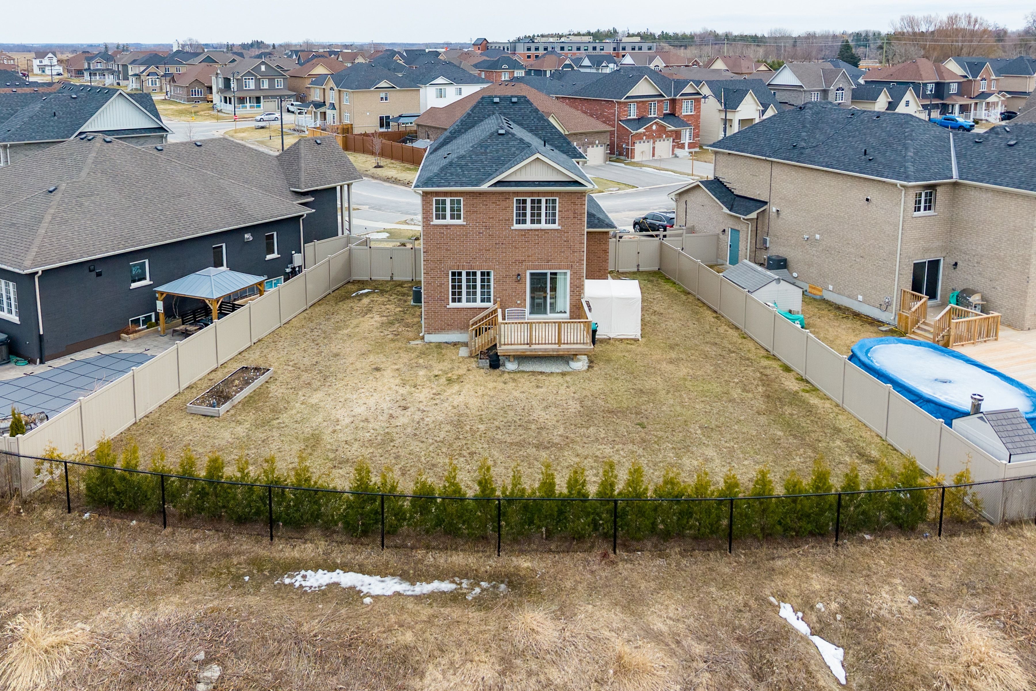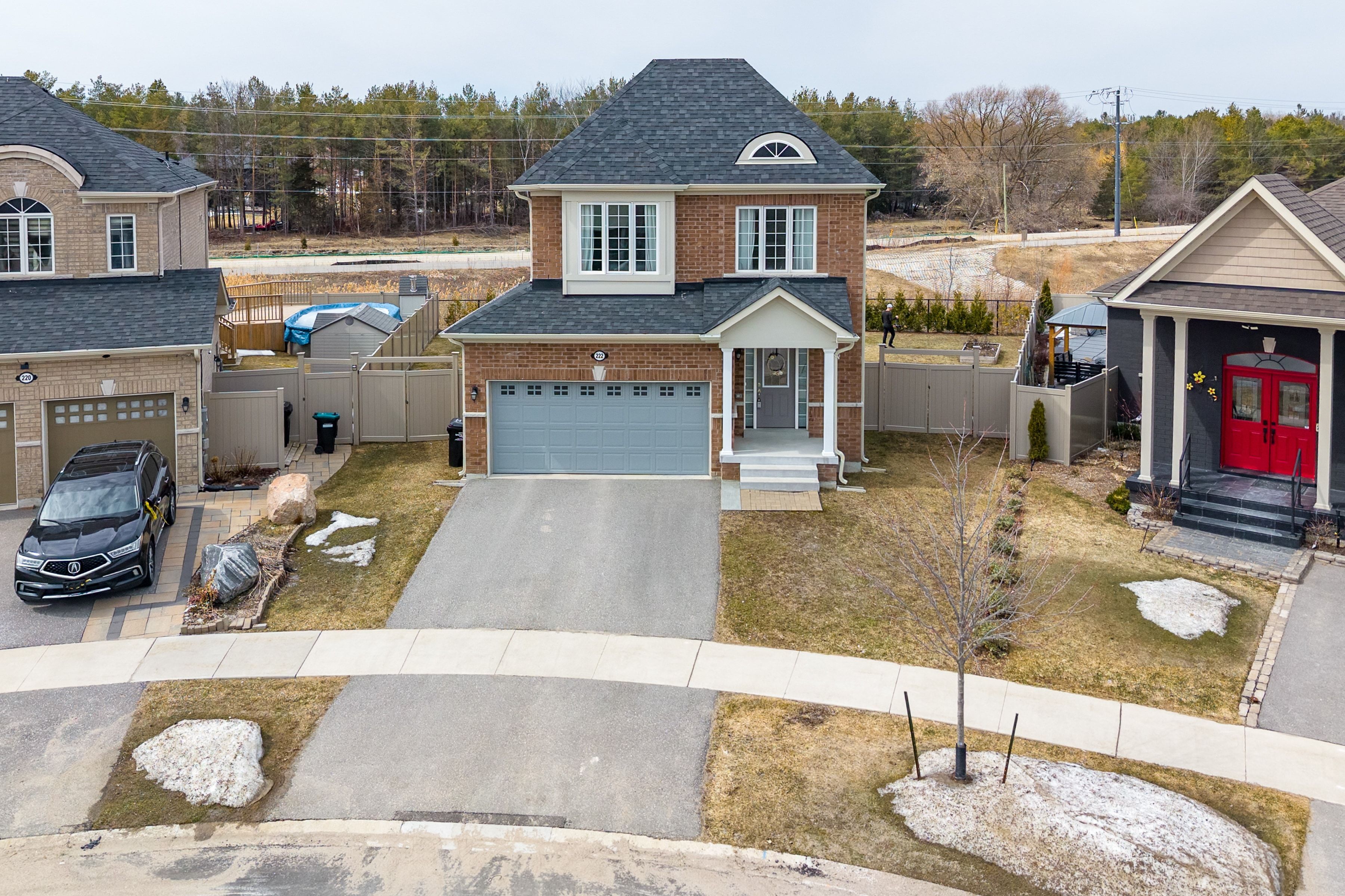 Welcome to 222 springfield crescent, a beautifully upgraded all-brick home in one of stayner's growing family-friendly communities. Set on a massive premium pie-shaped lot, one of the largest in the neighbourhood, this sun-filled 3-bedroom home offers rare privacy with no rear neighbours, peaceful pond views, and a backyard that feels truly serene. Inside, the open-concept main floor features 9-foot ceilings, main floor laundry, a cozy gas fireplace, and over $100,000 in custom upgrades throughout. The stunning customized kitchen is a true showpiece, complete with extended quartz countertops, custom cabinetry, a gas stove, matte white ge café appliances with brushed bronze hardware, and a custom hood fan. Upstairs, the spacious primary suite features a walk-in closet and a luxurious 5-piece ensuite with a deep soaker tub and glass shower. All of this is set in a peaceful small-town location with convenient access to schools, amenities, wasaga beach, collingwood, blue mountain, barrie, and everything this four-season region has to offer.