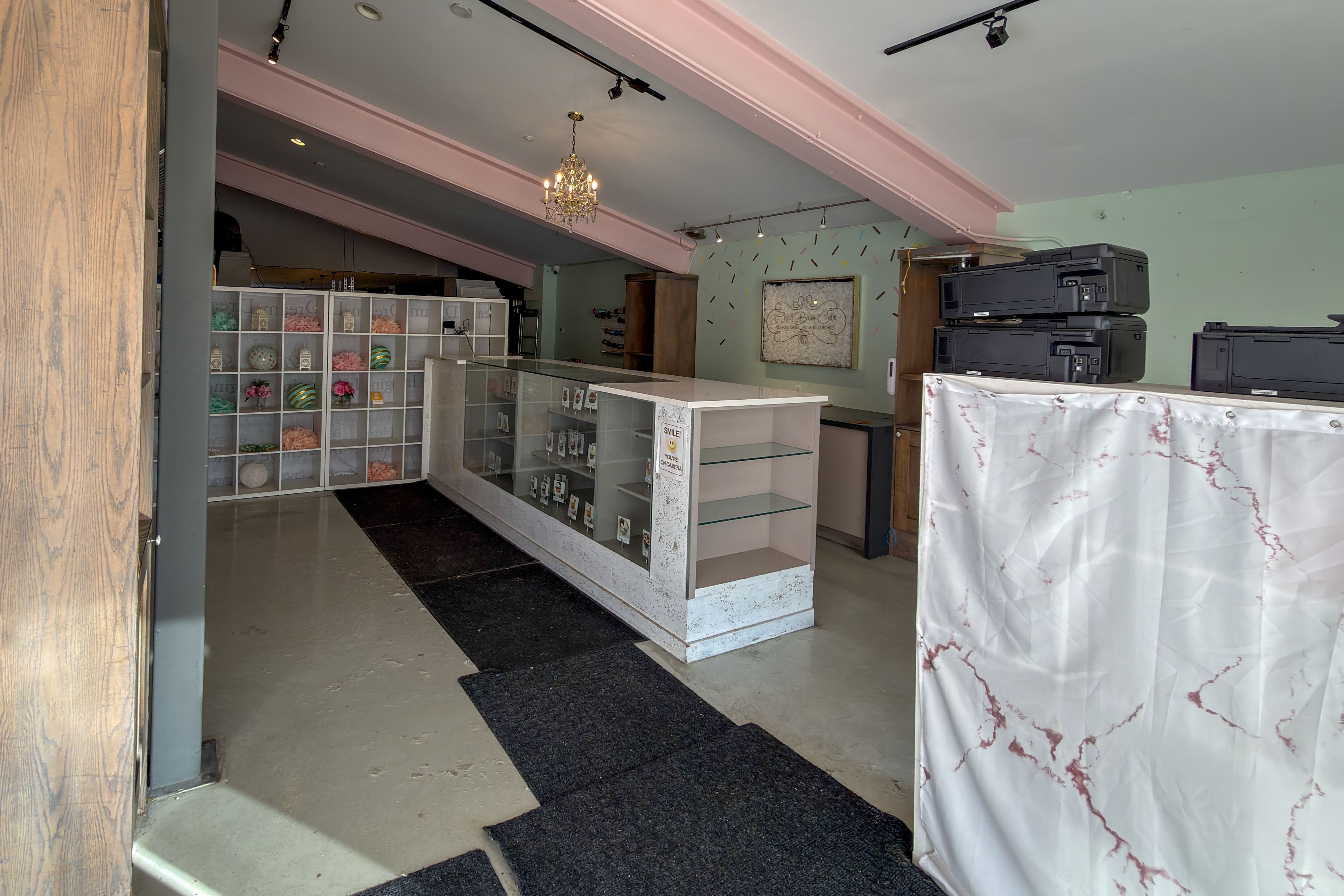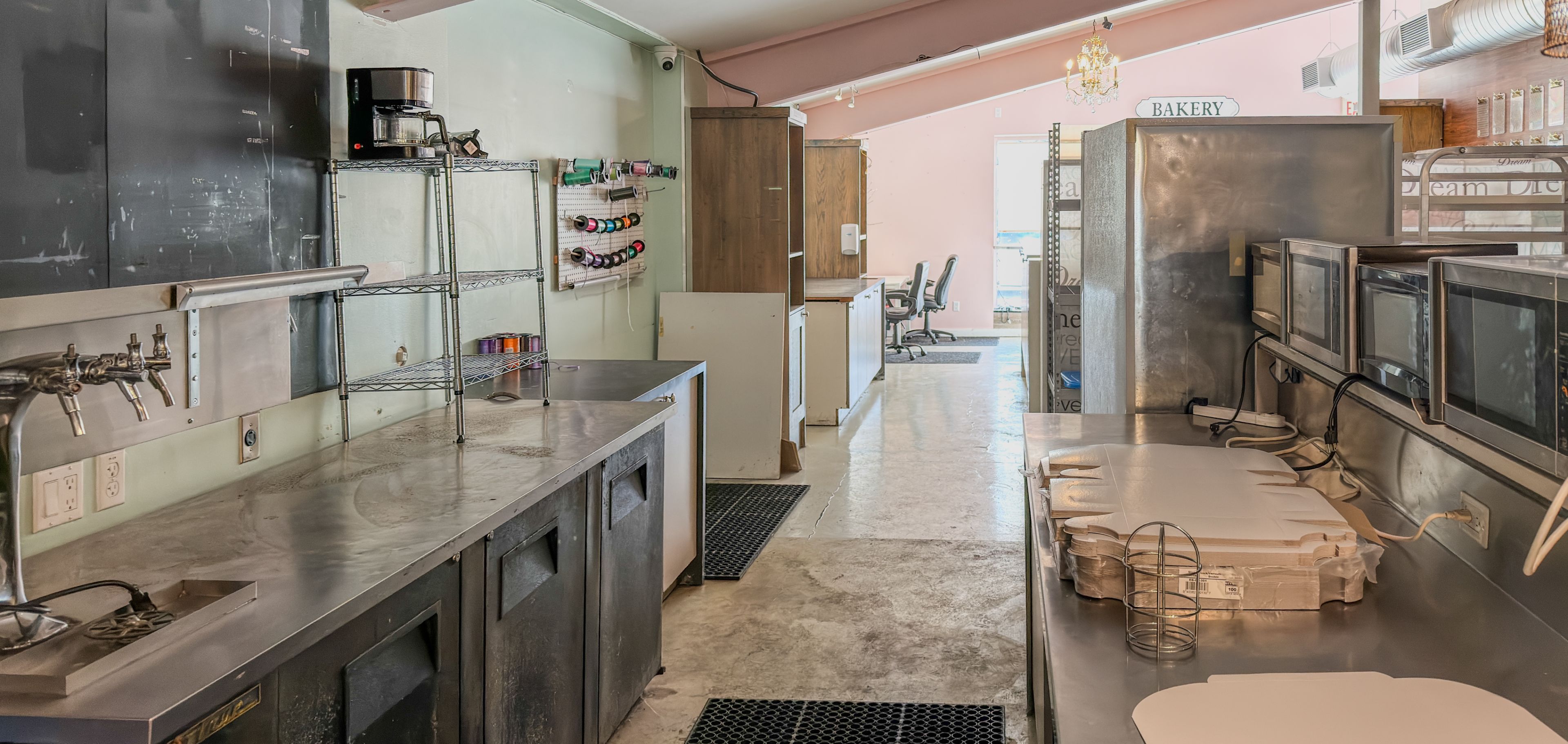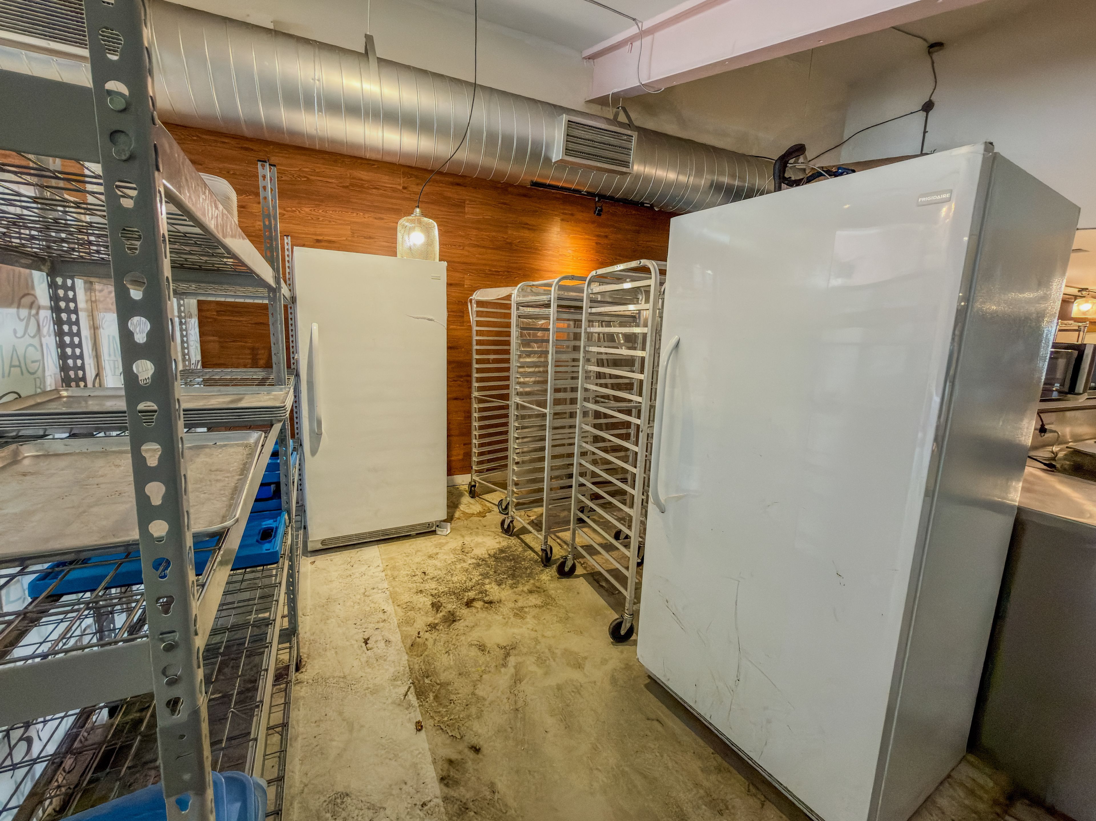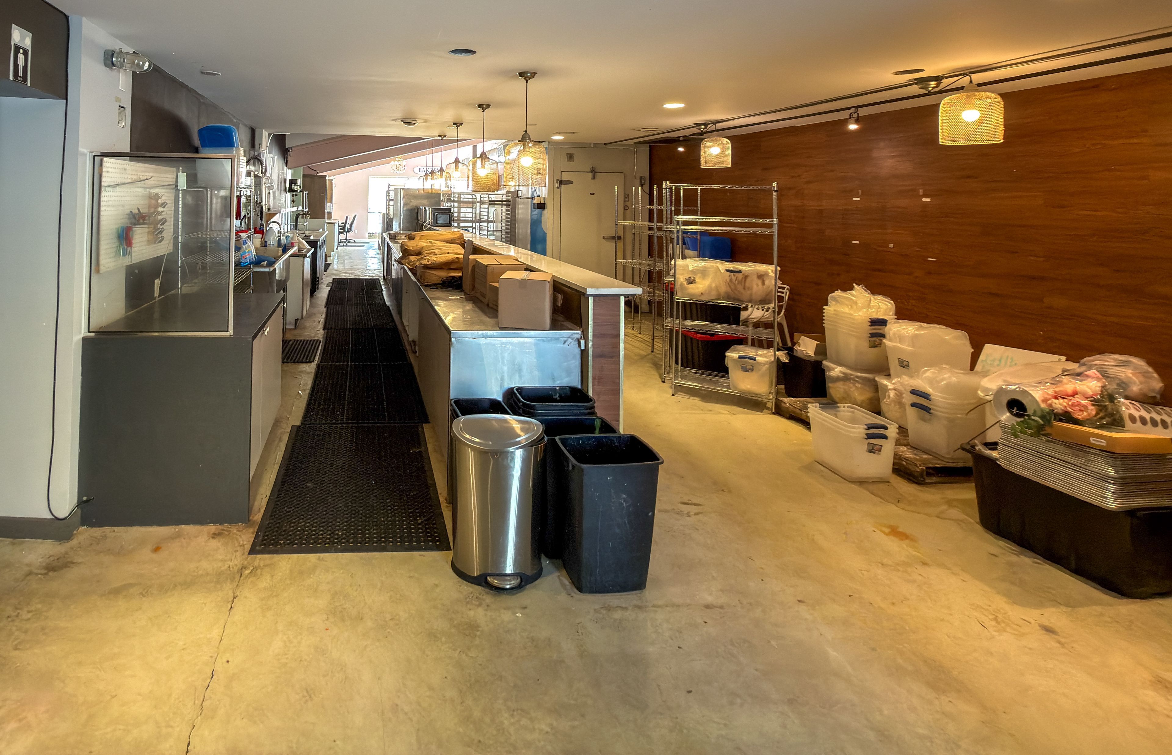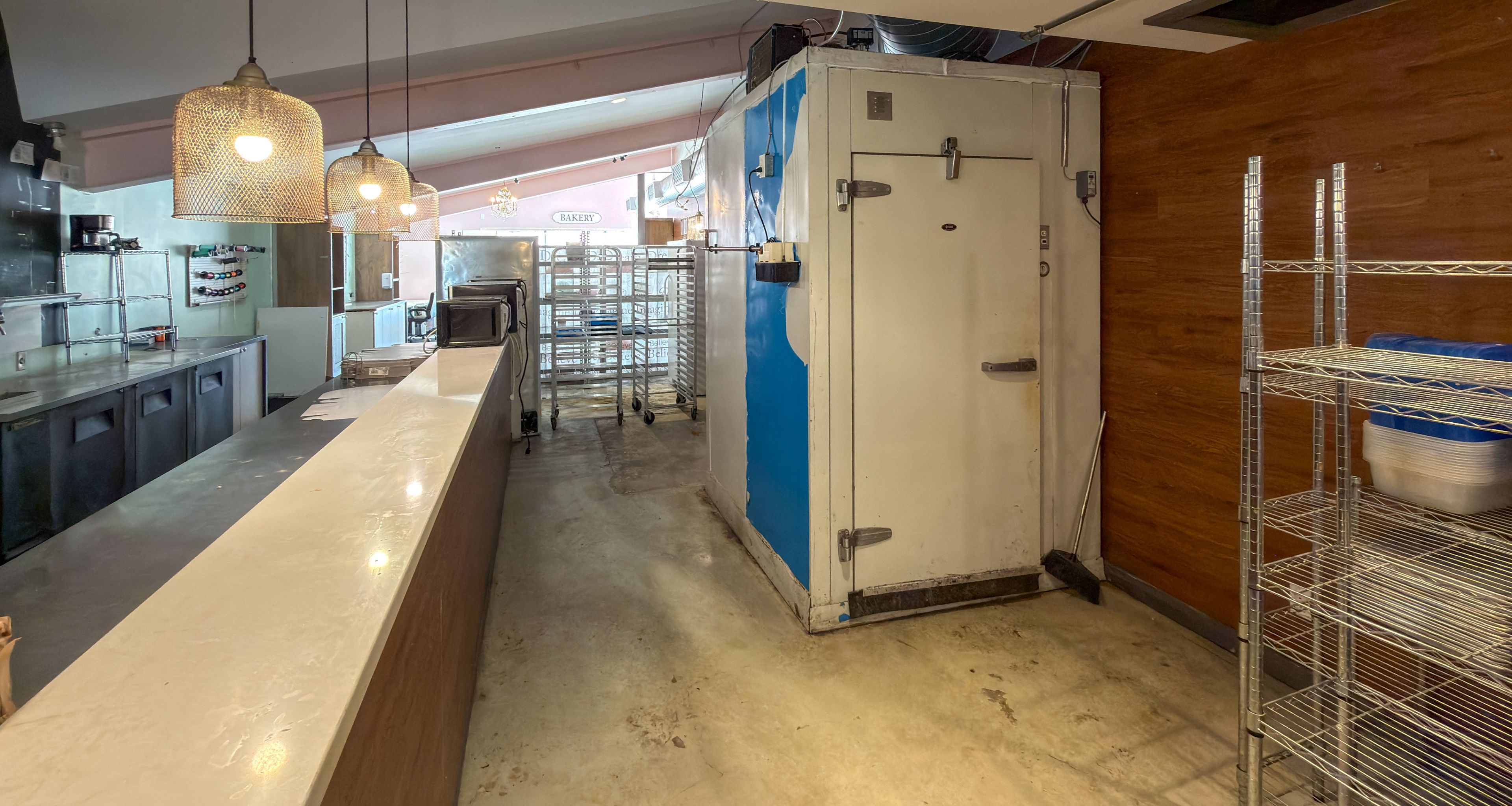 • Previously a bakery, featuring a walk-in freezer and prep counter.