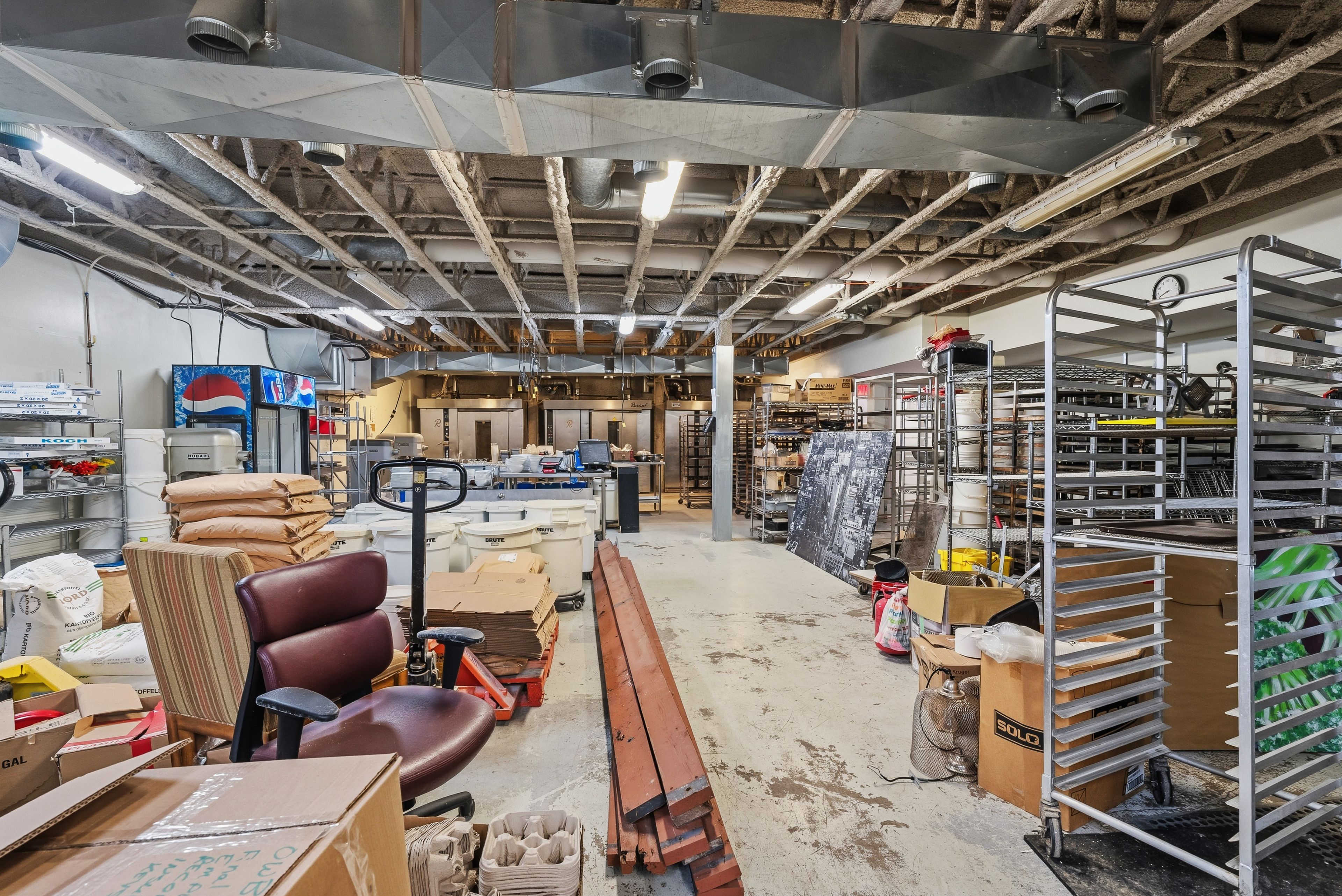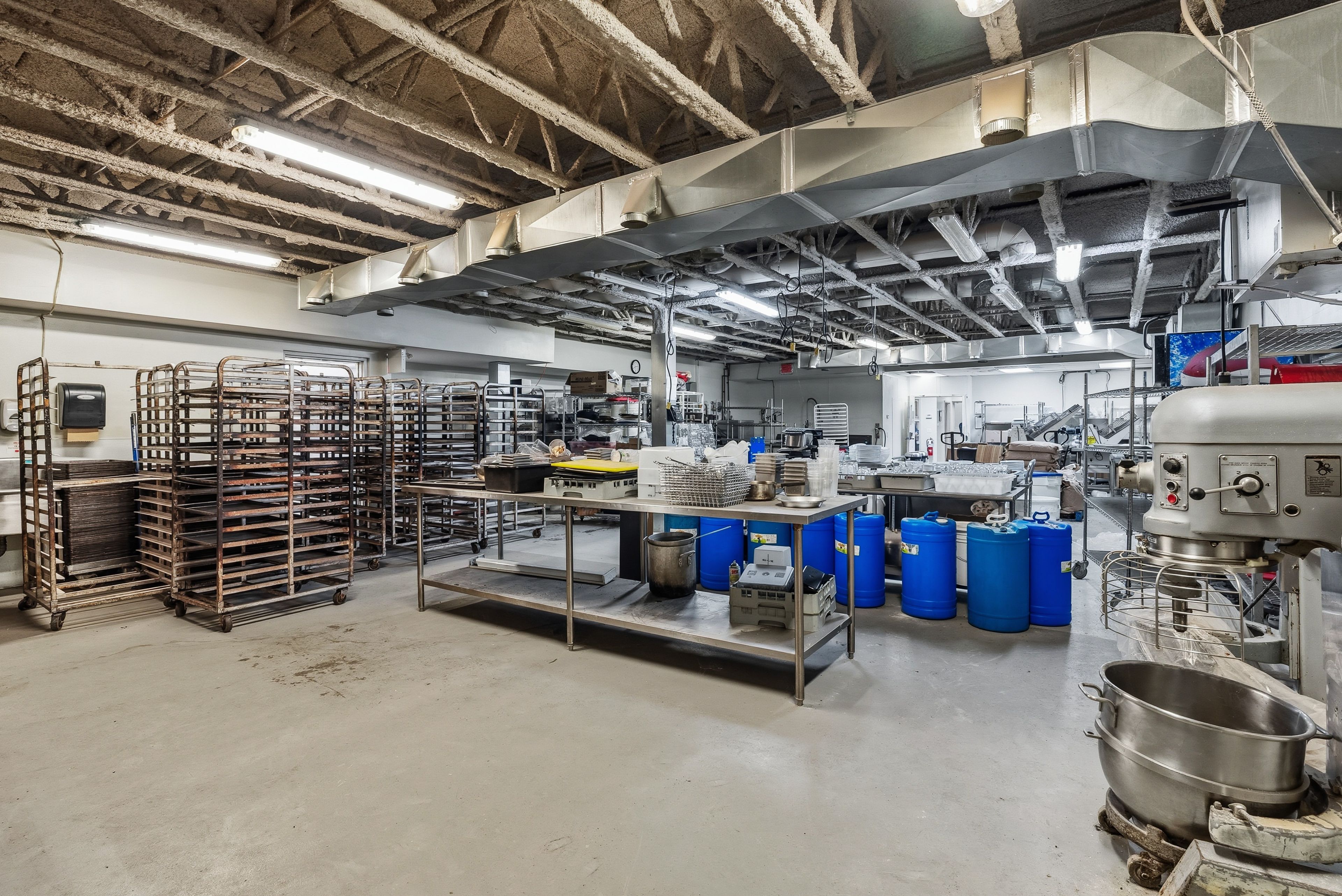 • Equipped with industrial ovens, walk-in coolers, and a freight elevator.