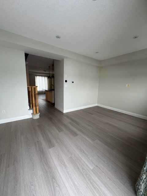 *** additional listing details - click brochure link *** 3 bedroom + den, 2. 5 bathroom townhouse available for immediate occupancy. Central natural gas heating. Brand new floors and carpets. 1 parking spot/single car garage. Private balcony and backyard. Unfinished basement (great for storage). The townhouse is located on a quiet cul de sac on queensway drive in burlington, is a 7 min walk to burlington go station and a 5 min drive to costco, home depot, mapleview mall, burlington centre and major restaurants. Utilities extra
