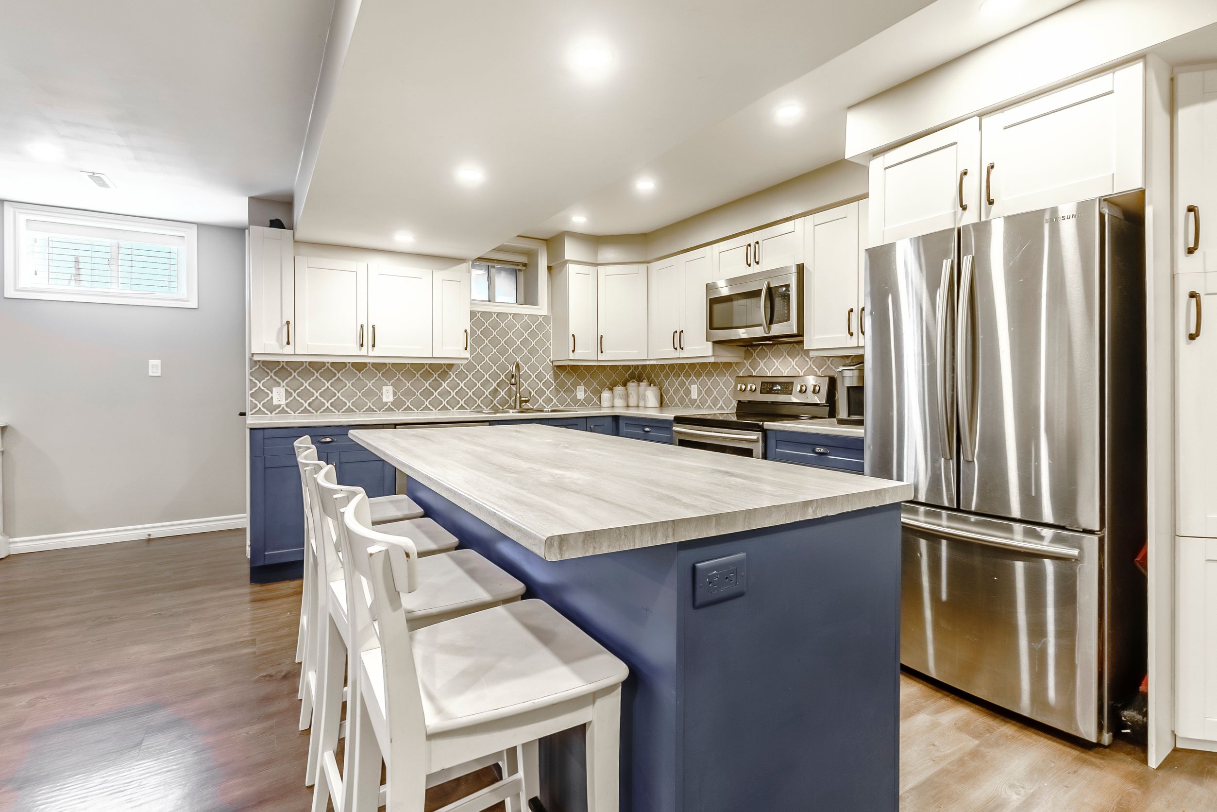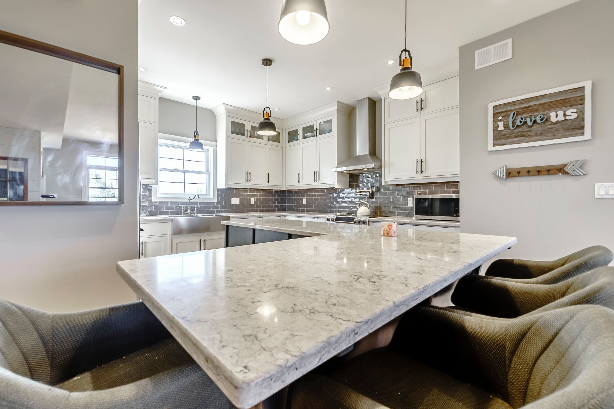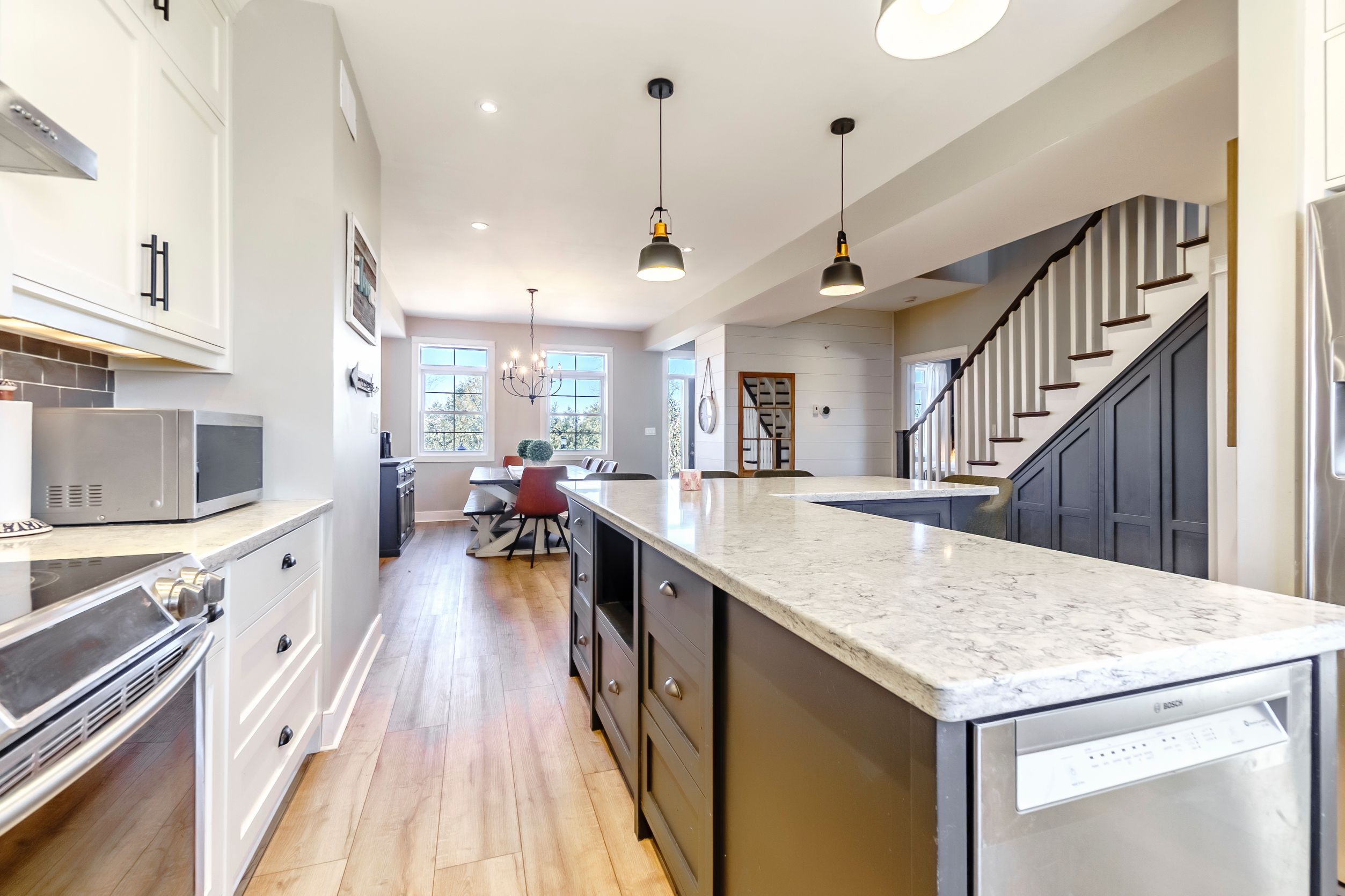 • Bright kitchen with quartz countertops, perfect for gatherings and entertaining.