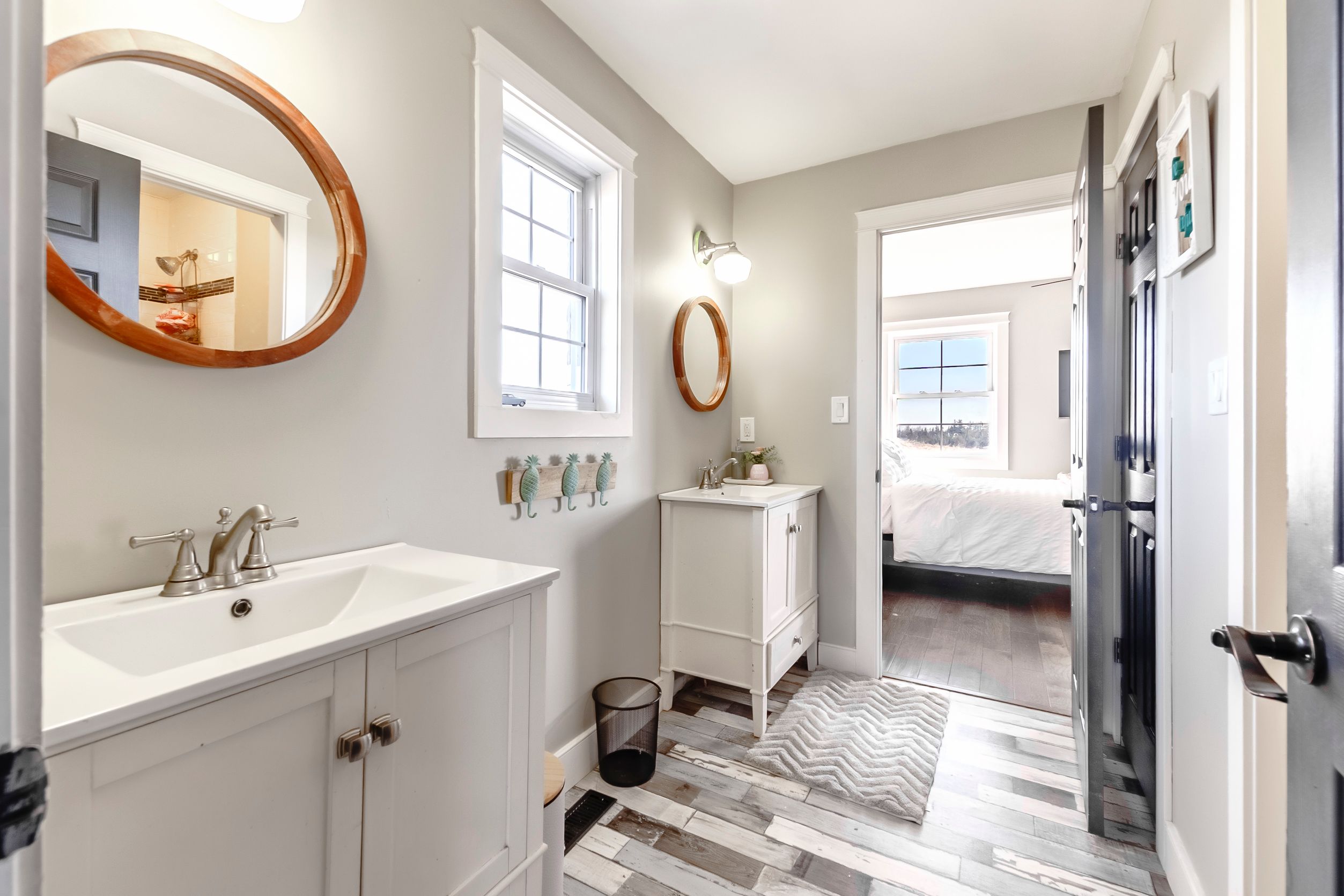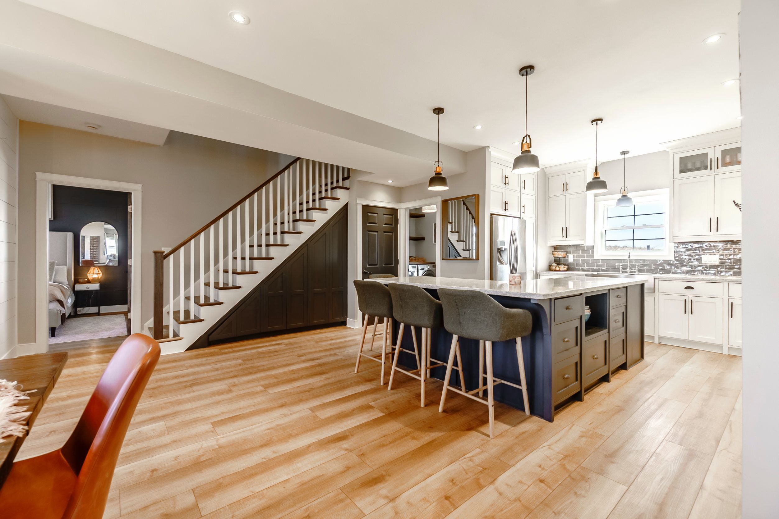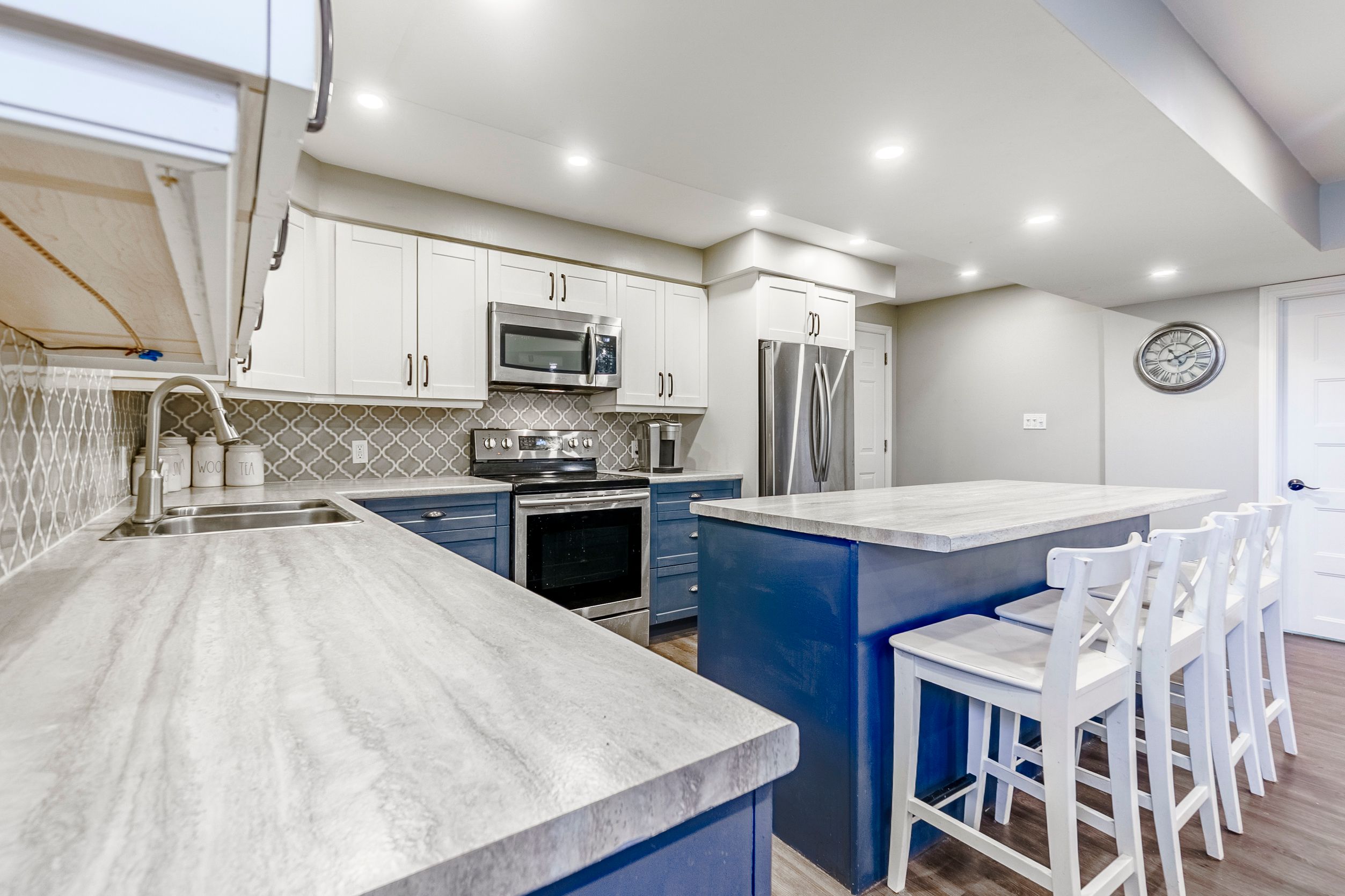 • Bright kitchen with quartz countertops, perfect for gatherings and entertaining.