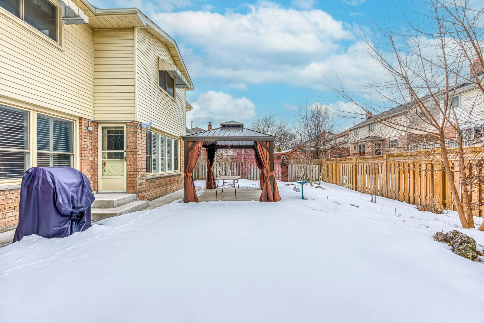 • Private backyard with new patio, fence, and gazebo for outdoor enjoyment.