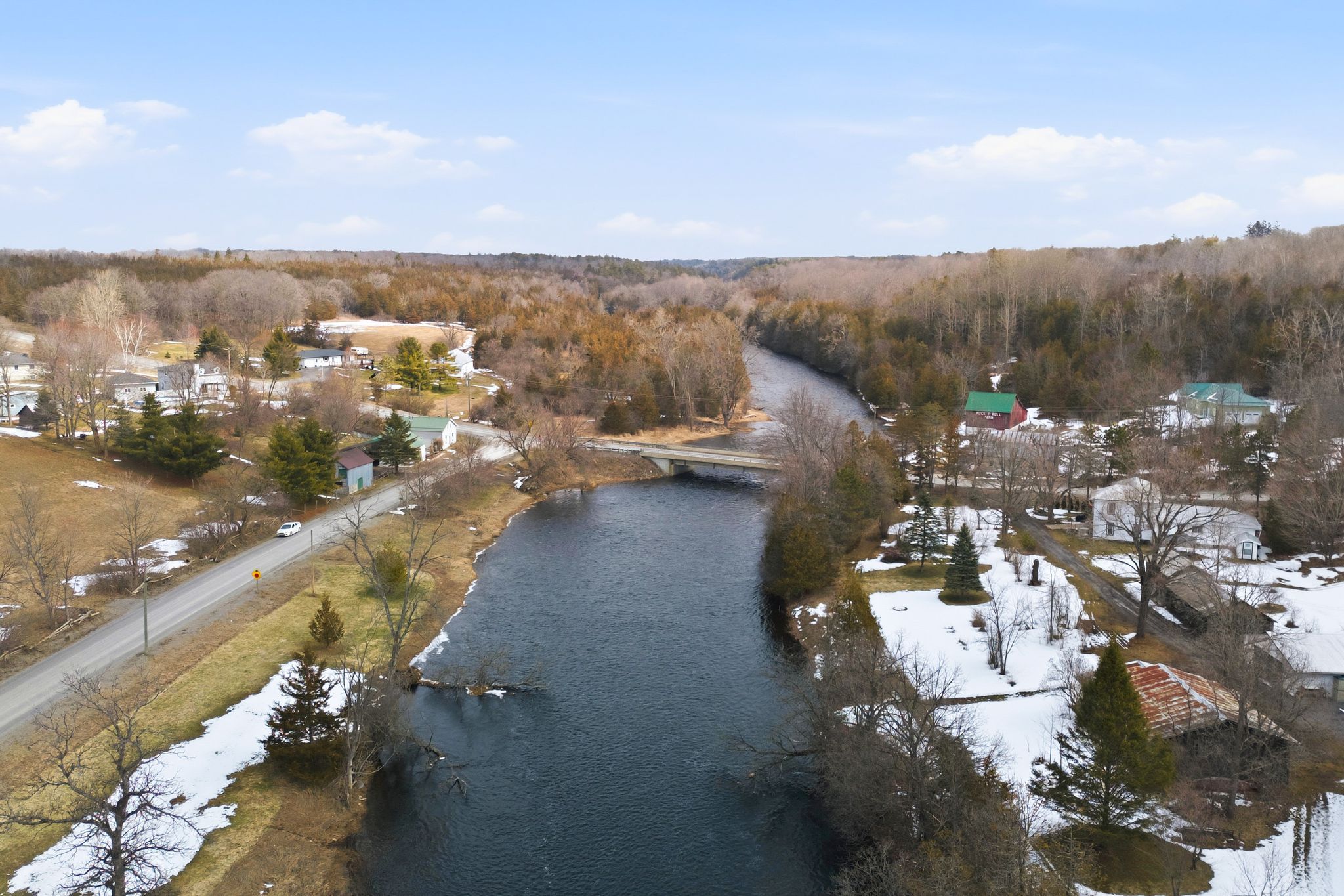 Enjoy life along the beautiful salmon river in marysville's hamlet of kingsford. Less than 5 minutes north of the 401 resides this larger than it looks 1. 5 storey home offering 1,600 sq feet of finished living space. Driveway access is safely tucked away on blessington road offering ample parking & sheltered covered option for two. Secluded south facing deck overlooks the river & invites you into the large eat-in kitchen with updated laminate flooring, pine ceiling & cabinetry + cozy propane freestanding fireplace. The massive living room is sure to impress with south, east & west facing windows, original wooden beam & door features, pine wainscotting & comfy wood stove. Full bath + main floor bedroom option here, creates a fabulous office or playroom as well. The upper level provides an inviting sitting room, once upon a time used as a nursery, two piece powder room and two great sized bedrooms, both with functional wall storage. Numerous exterior offerings include the drive shed with covered rear parking or secluded entertaining area protected from the wind & rain. 248 sq ft of storage here + a detached barn offering an additional 475 sq ft of outbuilding space. Both with upper level storage areas as well. Spacious rear yard, ideal for pets & children at play & a unique enclosed root cellar built into the hill. Ideal for cold storage, preserving your garden vegetable harvest or perhaps a fun fort. Minutes to kingsford conservation park where you can picnic, hike, fish or wade in the water. 30 minutes south to popular prince edward county offering many breweries, wineries, award winning beaches & culinary gems. Welcome home, to 2229 deseronto road with your very own view of the salmon river.