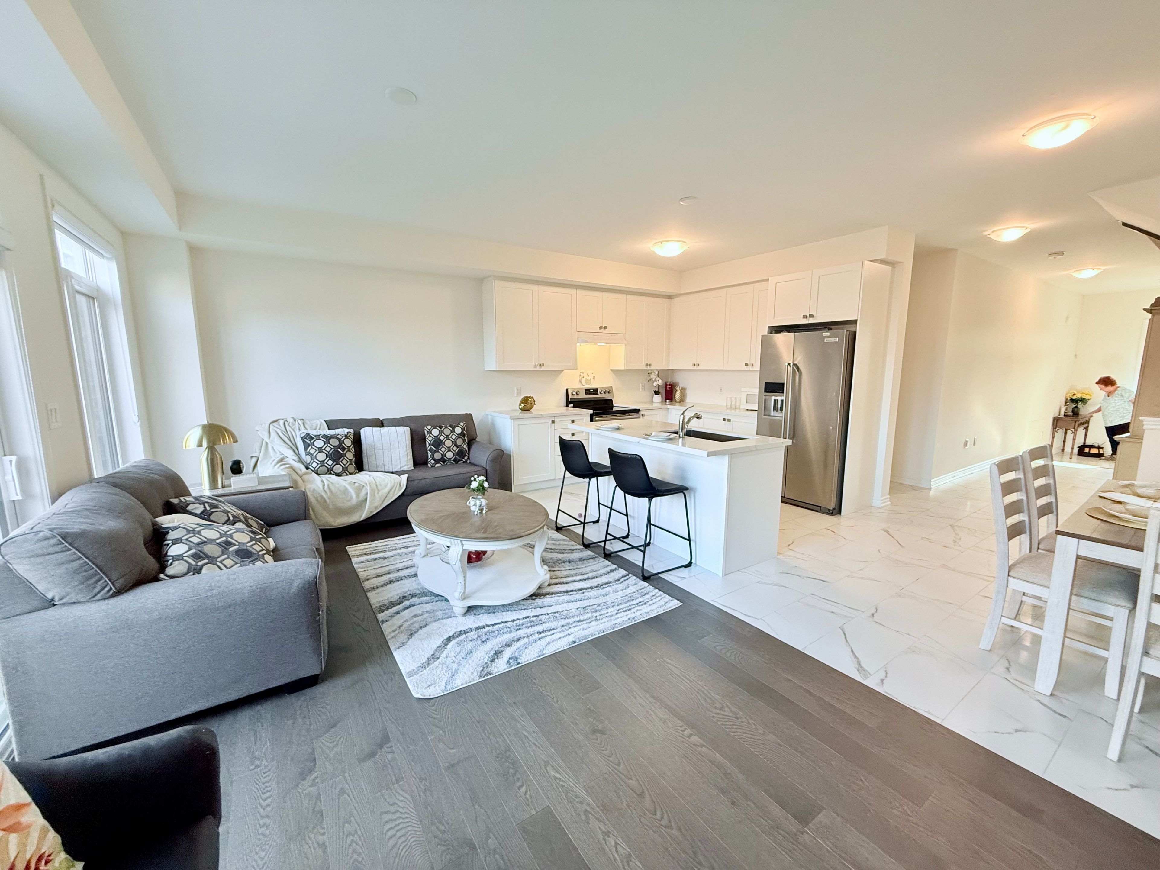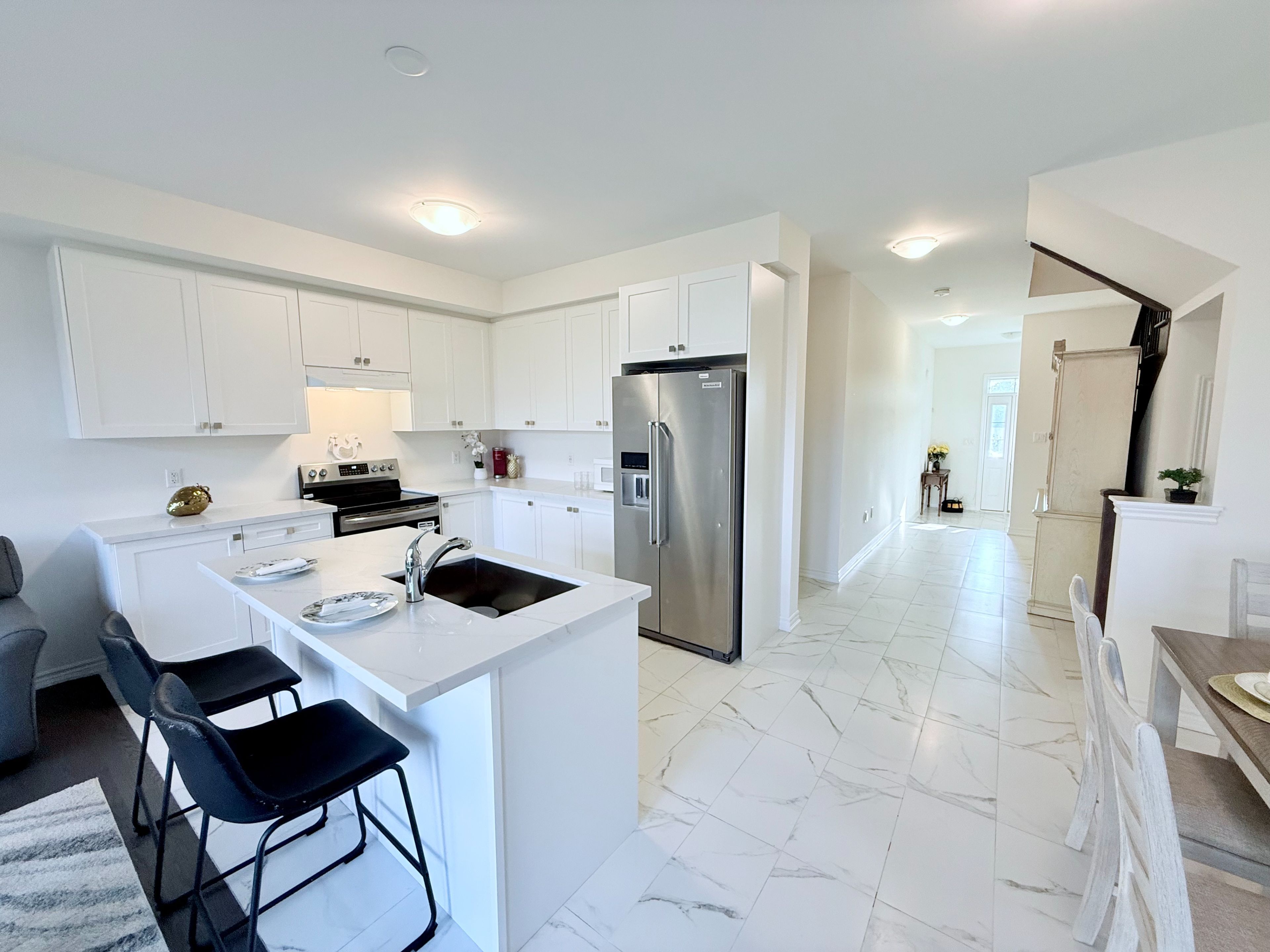 • Upgraded kitchen features quartz countertops and high-end appliances.