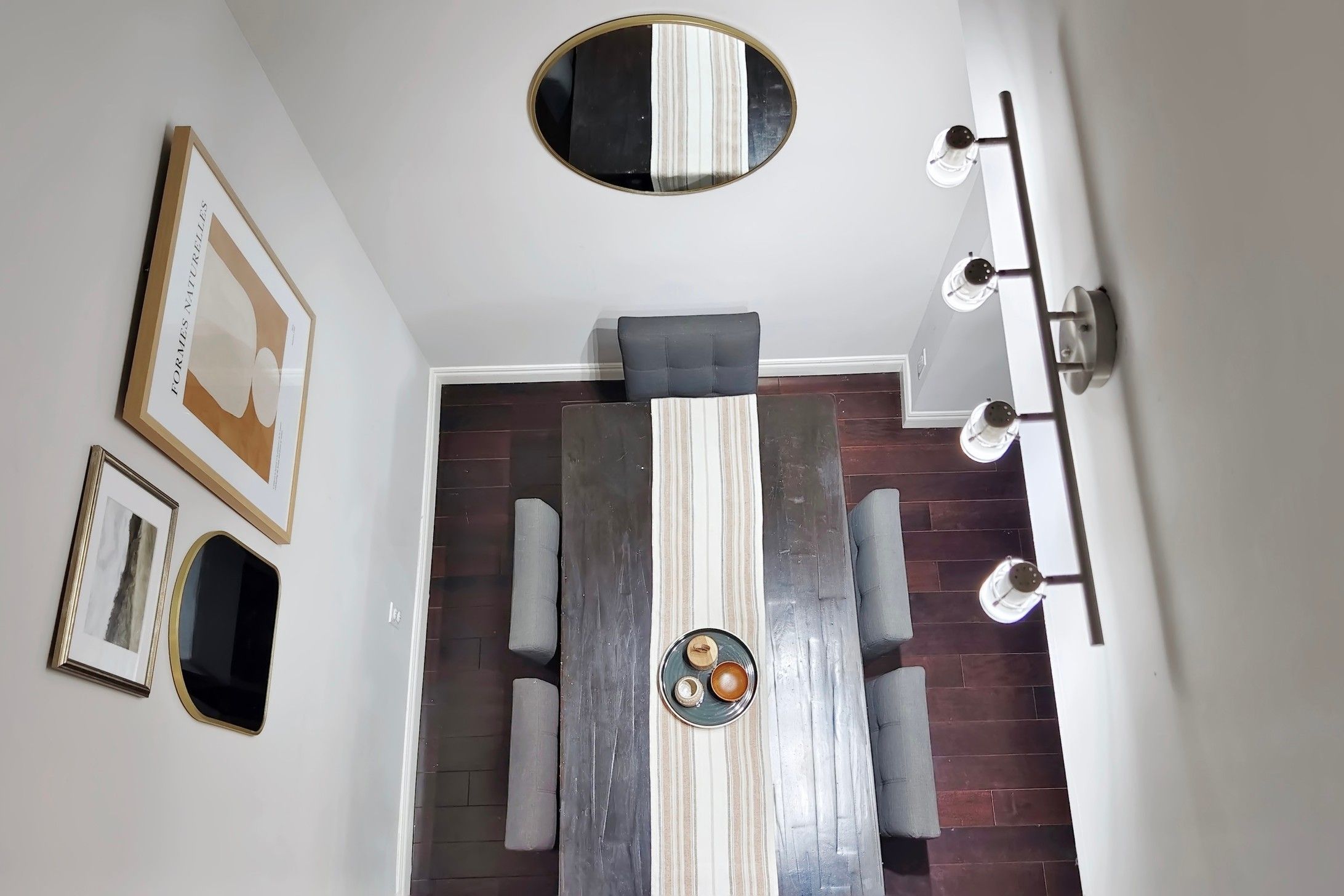 • Elegant dining room with soaring ceilings, perfect for entertaining.