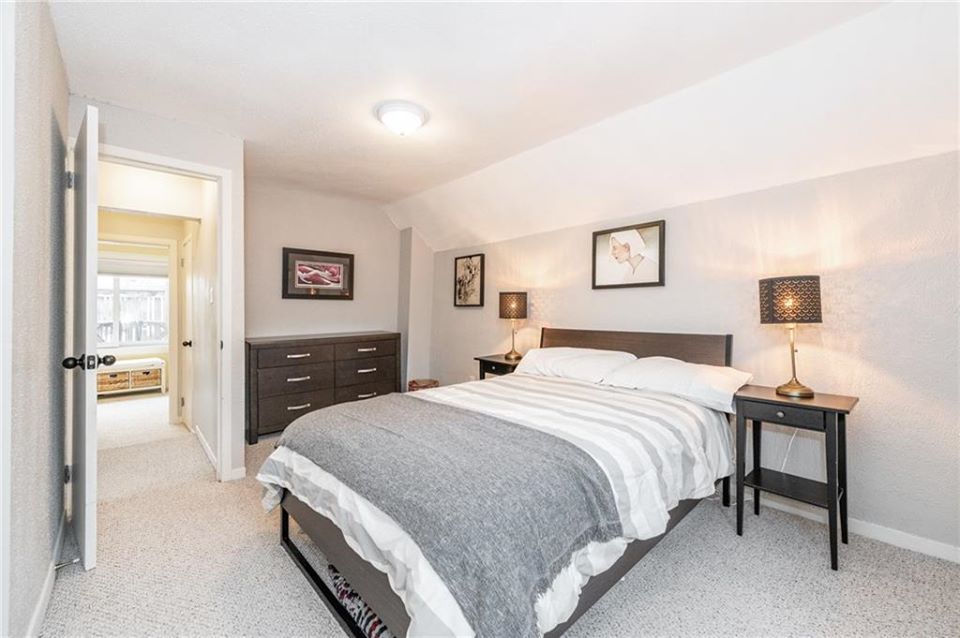• Spacious primary bedroom and sunny upper deck for relaxing outside.