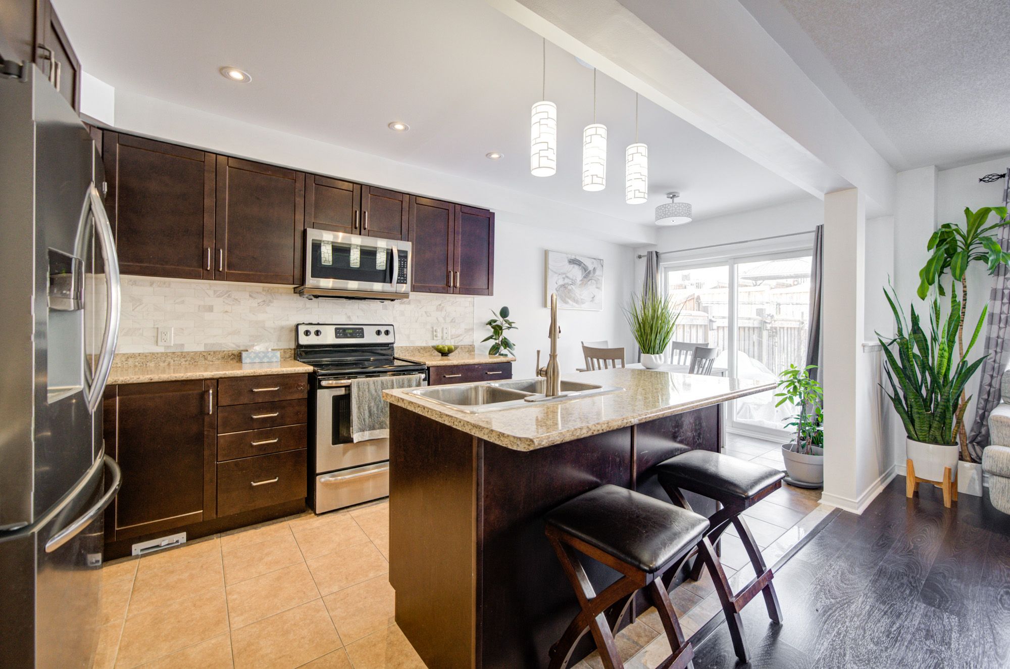 Welcome to extra ordinary orr. Stunning 3-bedroom town home in the heart of bradford - steps to go transit beautifully situated in one of bradford's most convenient pockets, this upgraded 3-bed, 3-bath townhouse offers turnkey living with stylish finishes and a functional layout perfect for families, commuters, and investors alike. Step inside to a welcoming foyer that opens into a bright main level with laminate flooring throughout and a spacious open-concept living/dining area illuminated by pot lights. The modern kitchen features frigidaire stainless steel appliances, a centre island, marble backsplash, custom cabinetry, an upgraded faucet, and an eat-in breakfast area with a walkout to the backyard. A wrought-iron staircase leads to the second floor, where you'll find three generous bedrooms & a bedroom in the basement, including a sun-filled primary with a walk-in closet and a 4-piece ensuite complete with separate shower and soaker tub. The newly finished basement adds incredible value, offering a versatile recreation space plus an additional bedroom, all completed with sleek pot lights-perfect for guests, work-from-home, or extended family. This home has been meticulously improved with thoughtful upgrades throughout, including recent renovations & upgrades. New paved front walkway for enhanced curb appeal. Added garage shelving for optimized storage. New door from laundry room to garage for improved interior access. Marble kitchen backsplash. Additional shelving in primary bedroom closet. Finished basement with additional bedroom and pot lights. Upgraded kitchen faucet. Cement patio blocks in backyard for outdoor furniture set-up. Laundry room folding table, clothing rod and extra shelving. Offering incredible value, excellent commuter access, and a growing family-friendly community, this home is truly move-in ready.