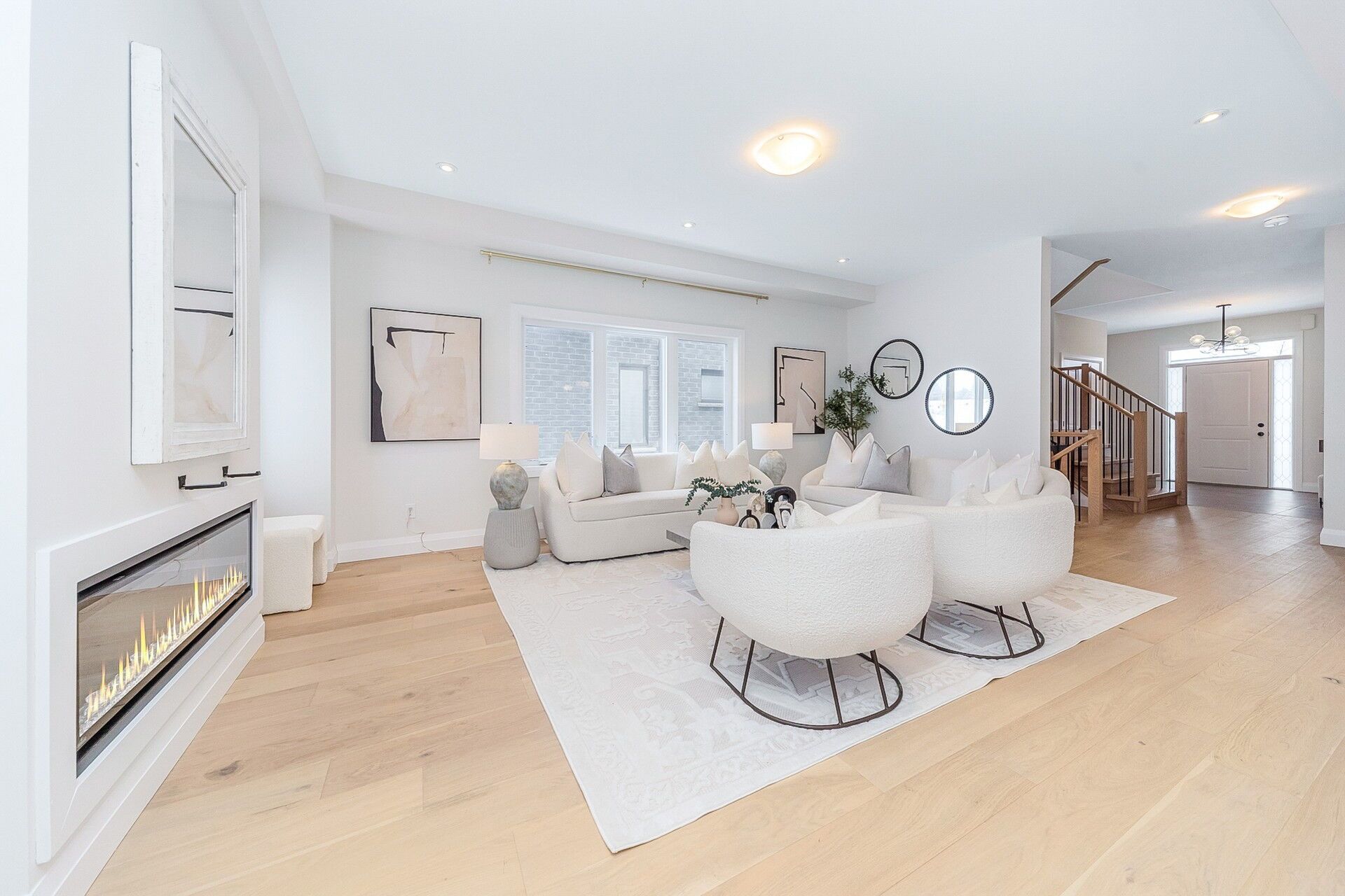 • Bright open-concept layout with hardwood flooring and a cozy gas fireplace.