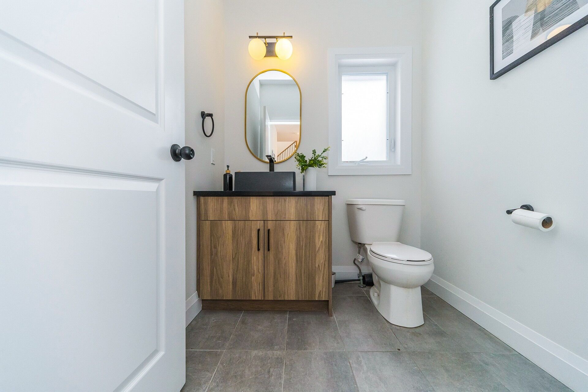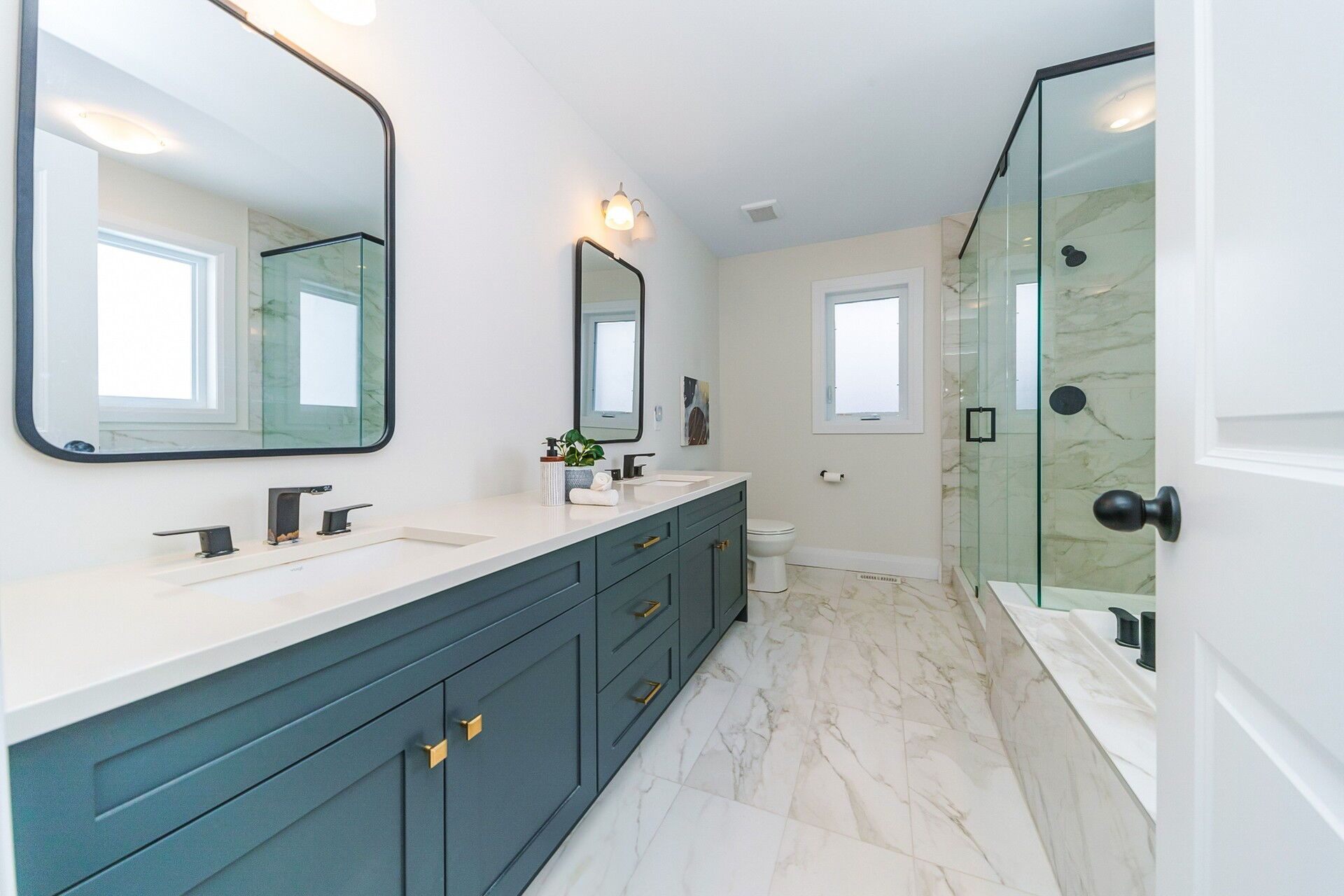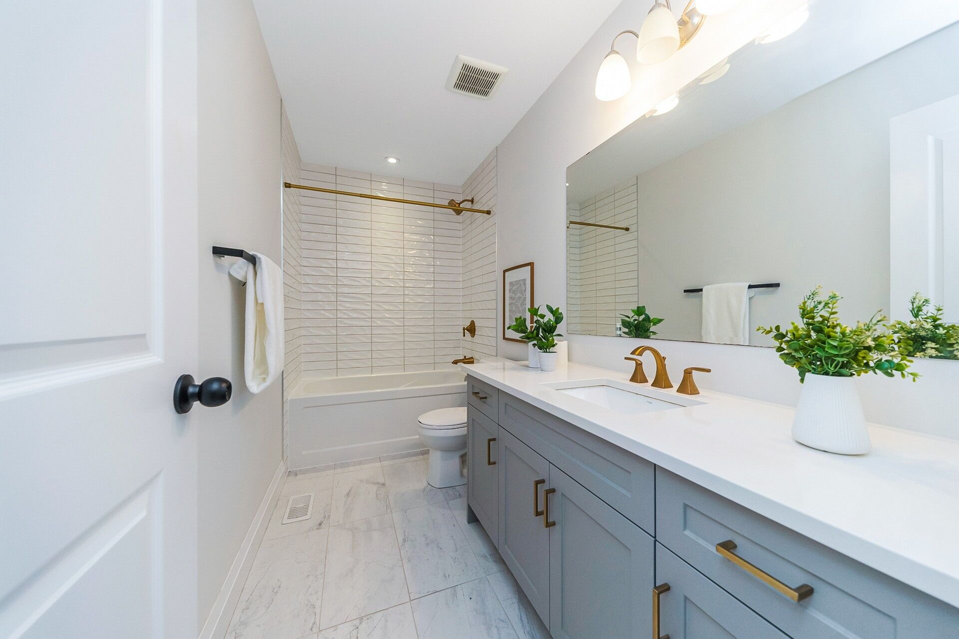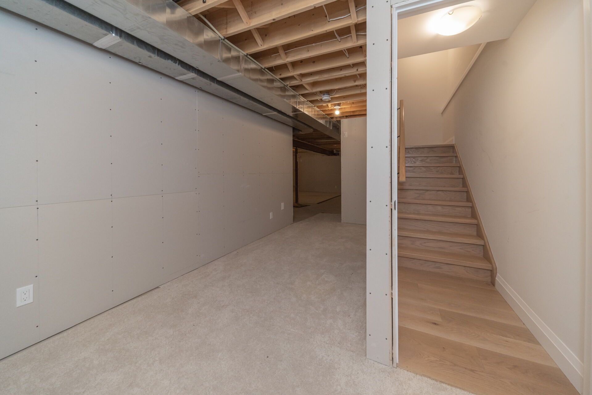 • Elegant bathrooms with upgraded Silestone countertops and natural oak stairs.