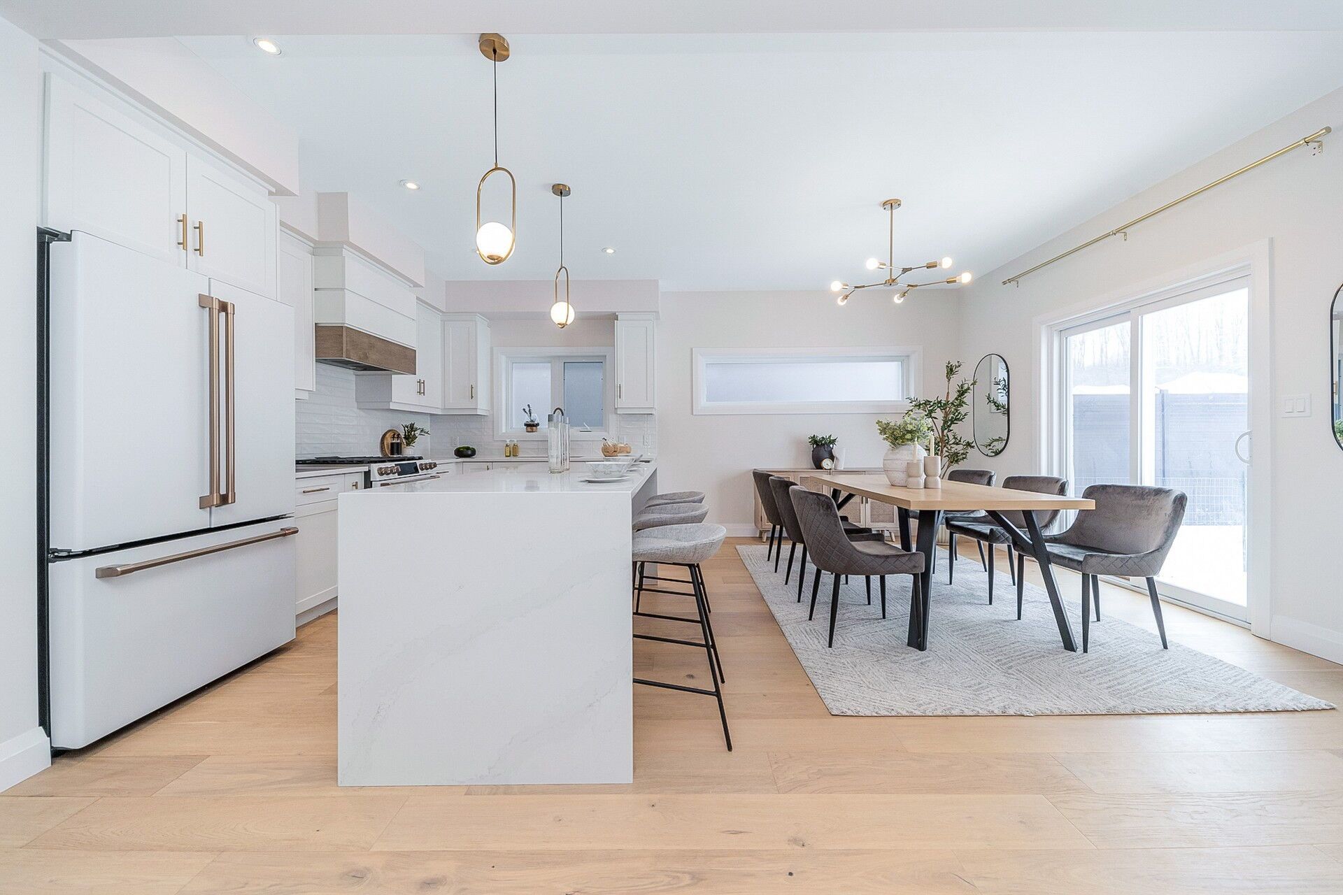 • Chef-inspired kitchen featuring high-end GE Café appliances and stylish finishes.