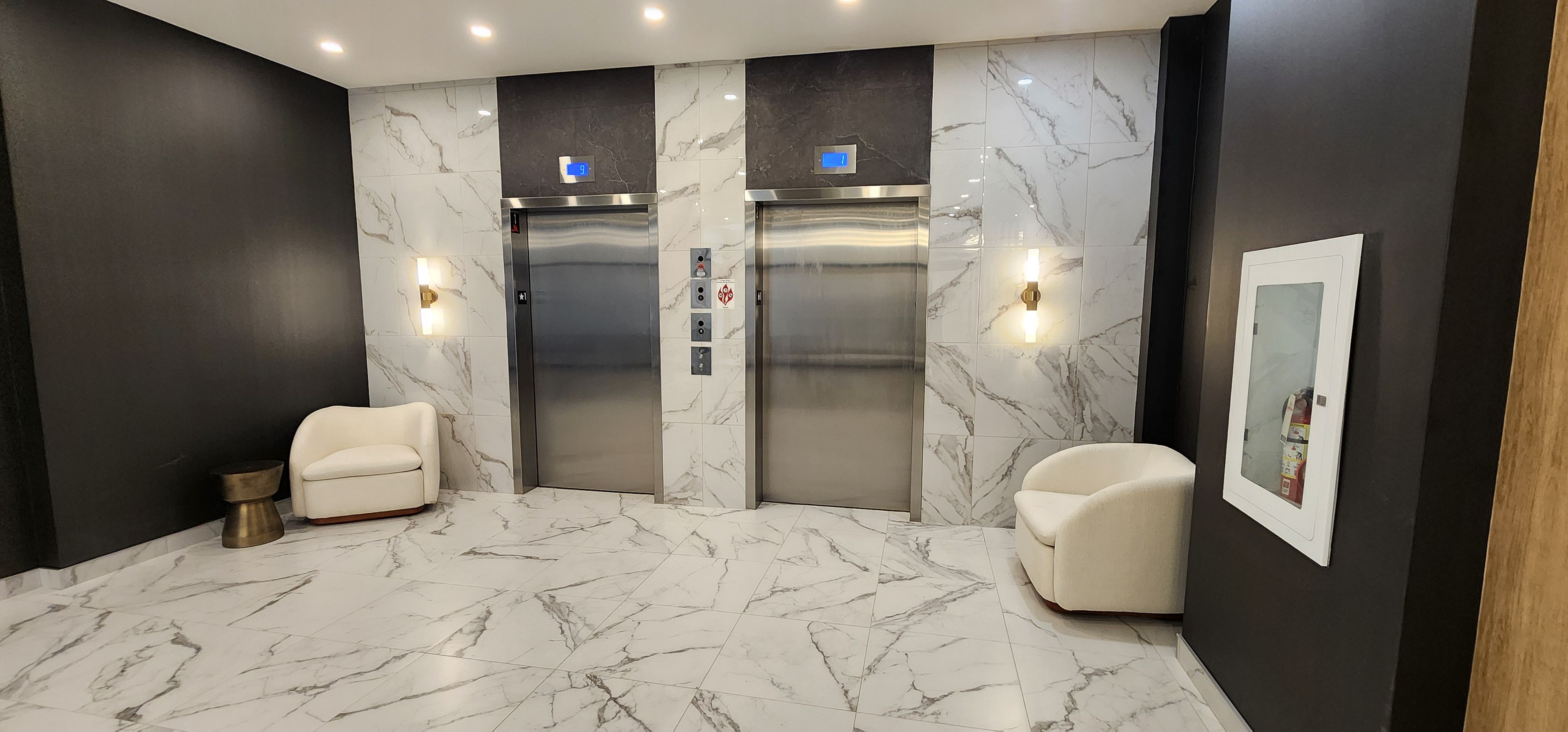 • Third-floor unit with soaring ceilings and open-concept living/dining area.