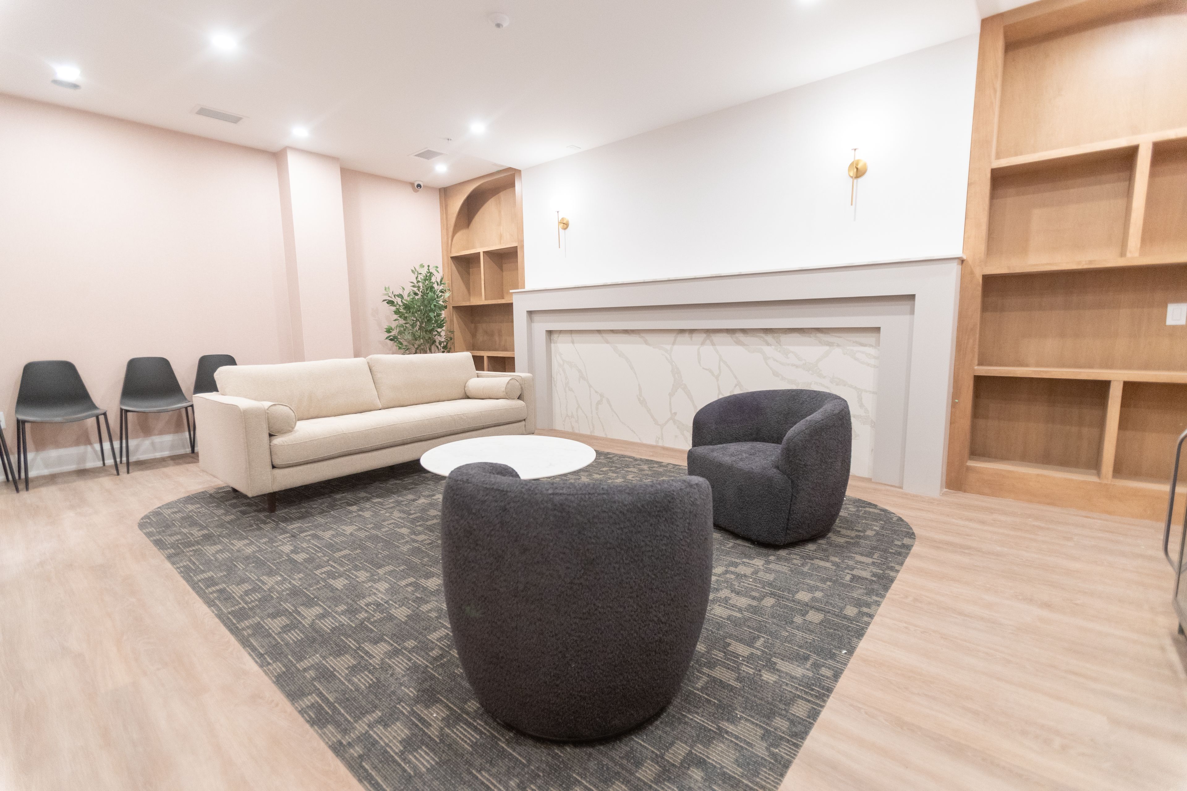 • Additional amenities include a fitness centre, yoga studio, and party room.