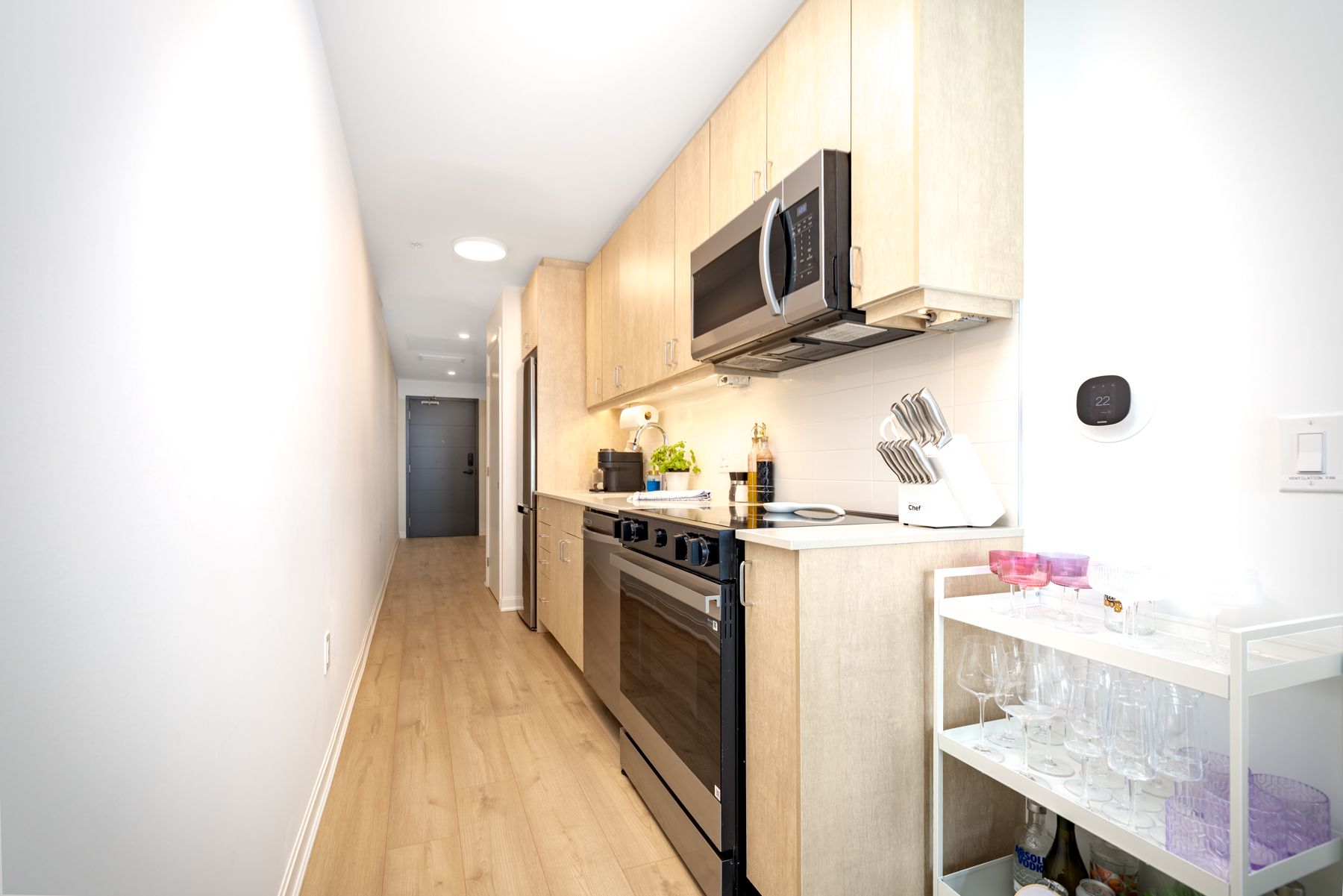 The crown condominiums, perfectly positioned in the heart of downtown kingston. This fourth-floor 1-bedroom plus den suite offers 584 sq ft of well-planned living spacethe bright, open-concept layout seamlessly connects the living and dining areas, complemented by in-suite laundry, a sleek 4-piece bathroom and this unit also includes bike storage. Residents enjoy an impressive collection of amenities, including a private rooftop terrace with bbq stations, dining and lounge areas. Additional conveniences include concierge service, a fully equipped fitness centre and a party and multi-purpose room with a complete kitchen-ideal for entertaining. Situated steps from restaurants, and a mix of popular shops, this location places you in kingston's vibrant downtown core. You're within a 10-minute walk of historic downtown and the waterfront, with an easy commute to queen's university or rmc-urban living at its best.