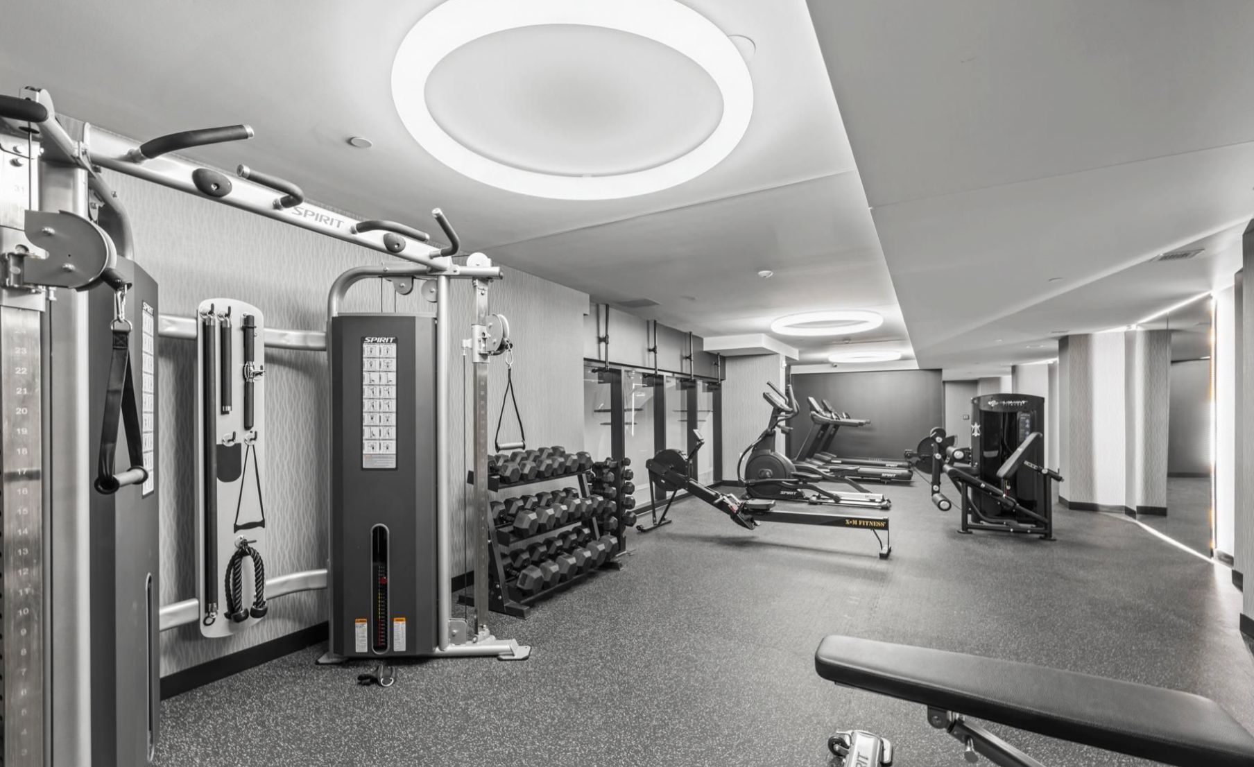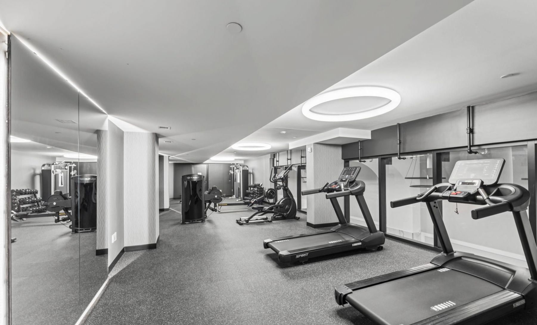 • Amenities include fitness center, party room, and concierge service.
