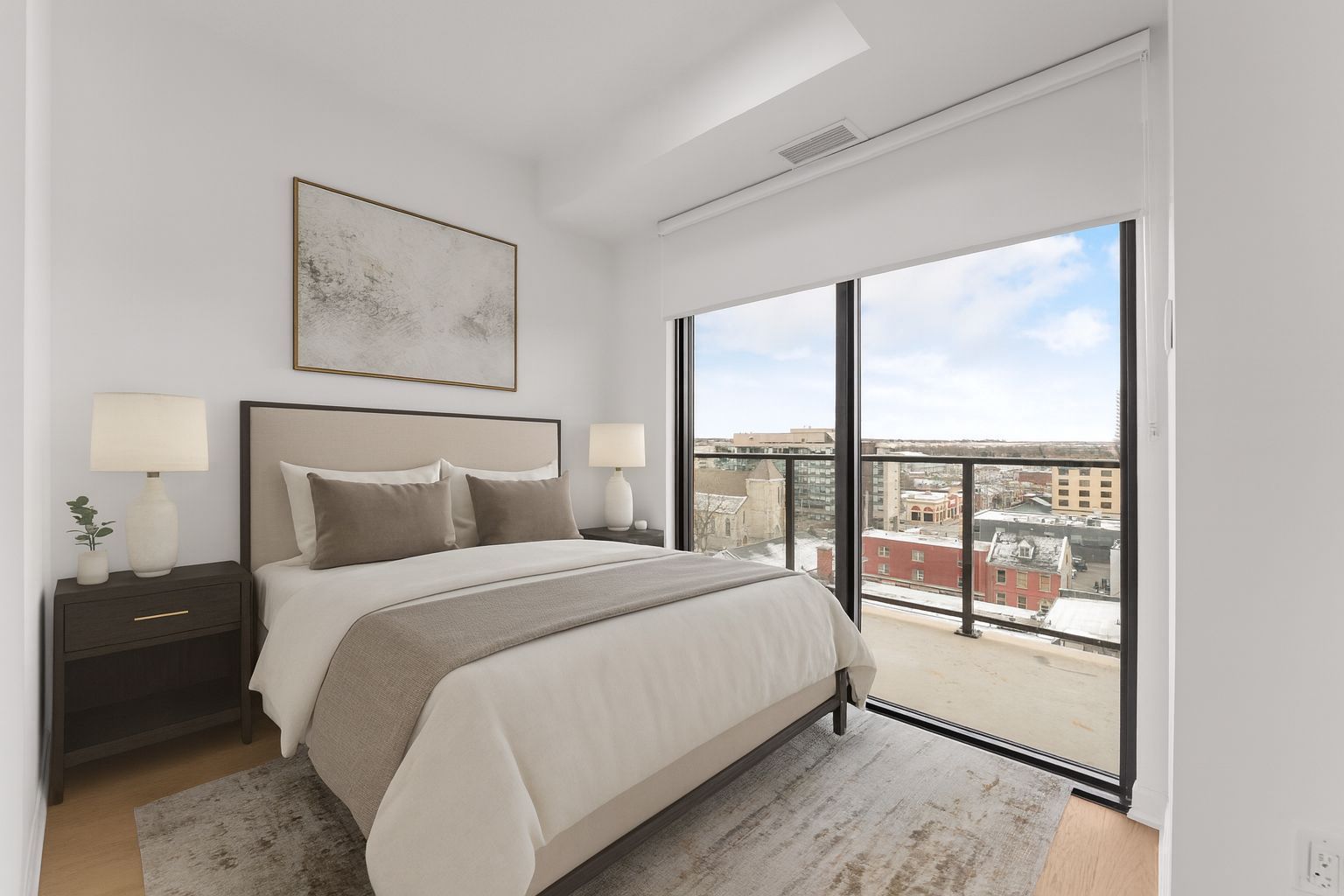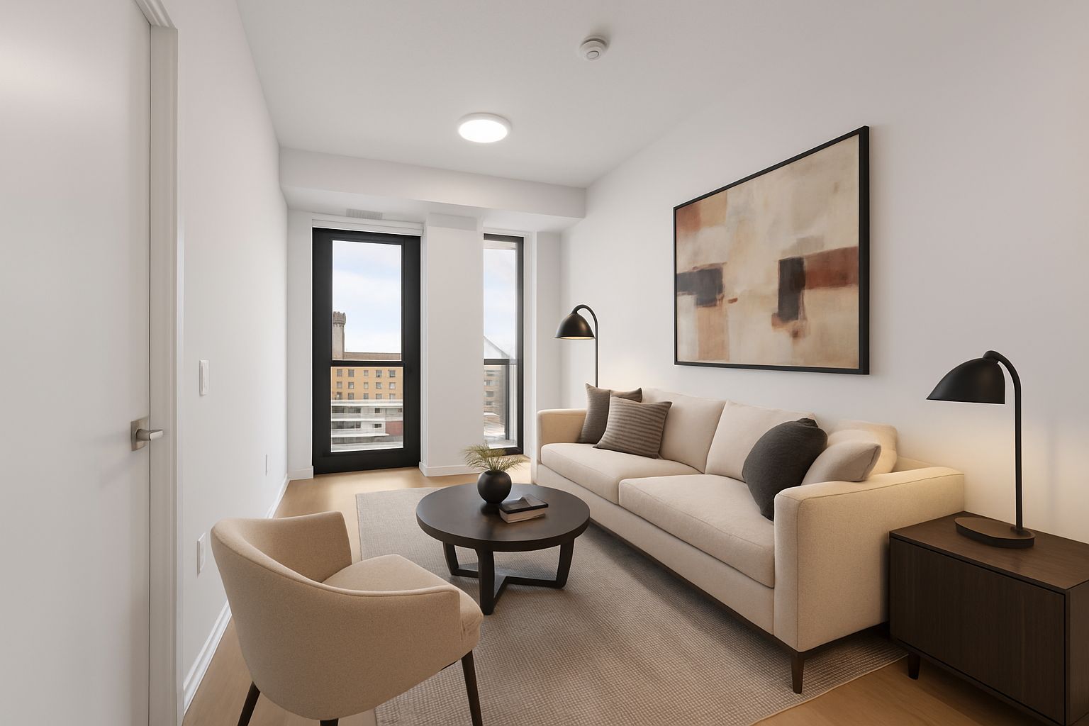 • Bright, modern layout with high ceilings and large windows for natural light.