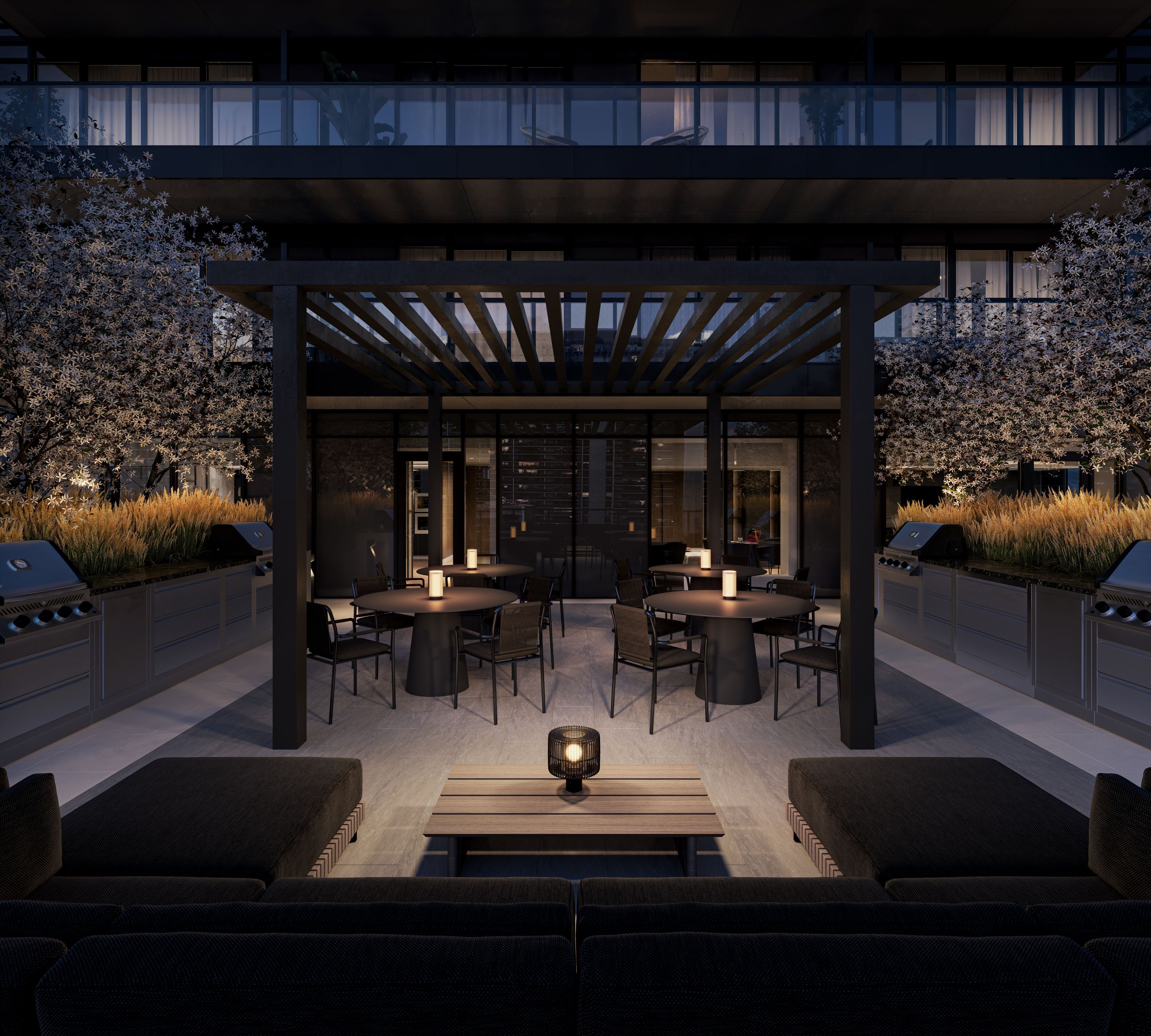 • Enjoy extensive amenities like a fitness room and outdoor terraces.