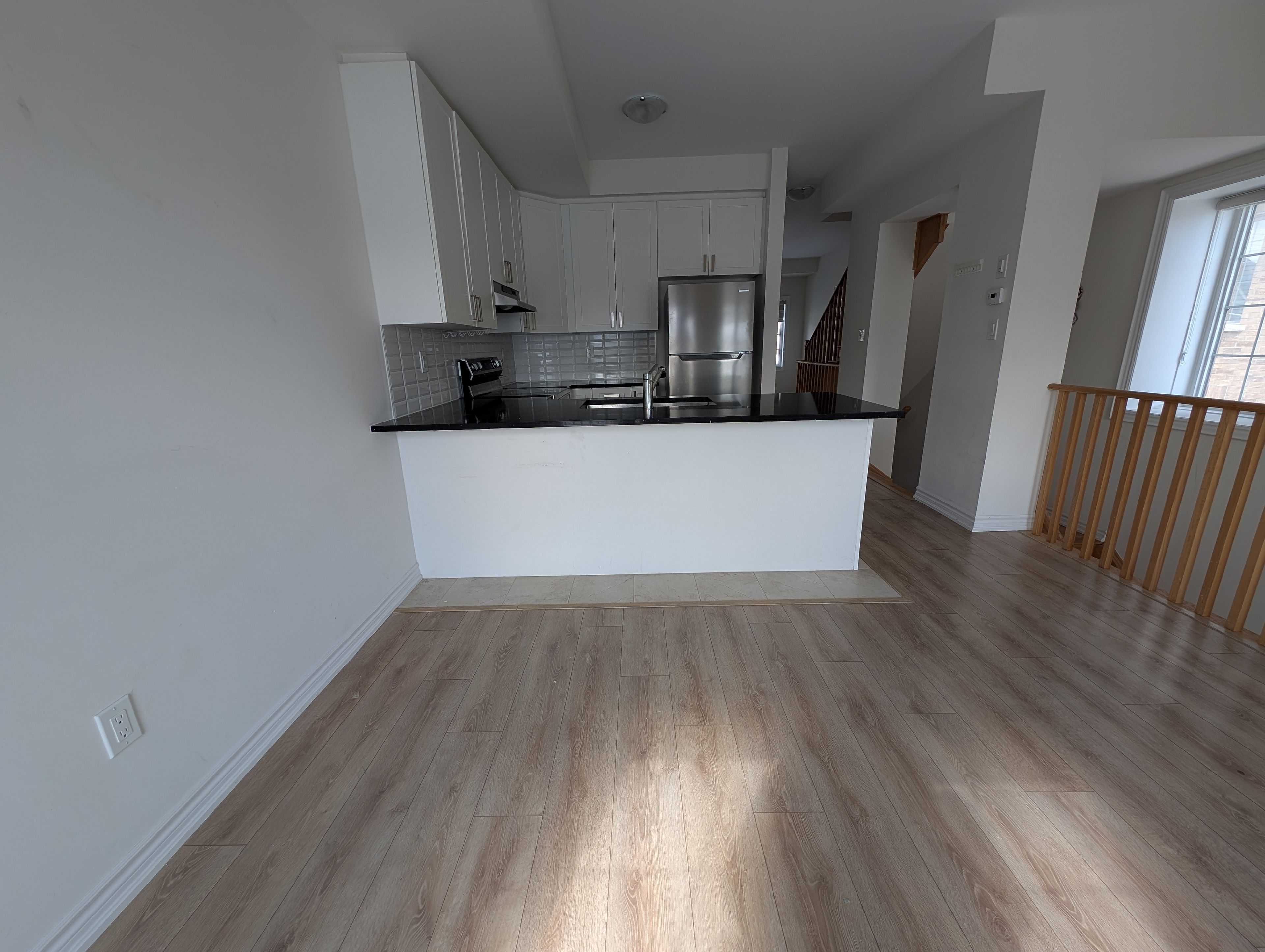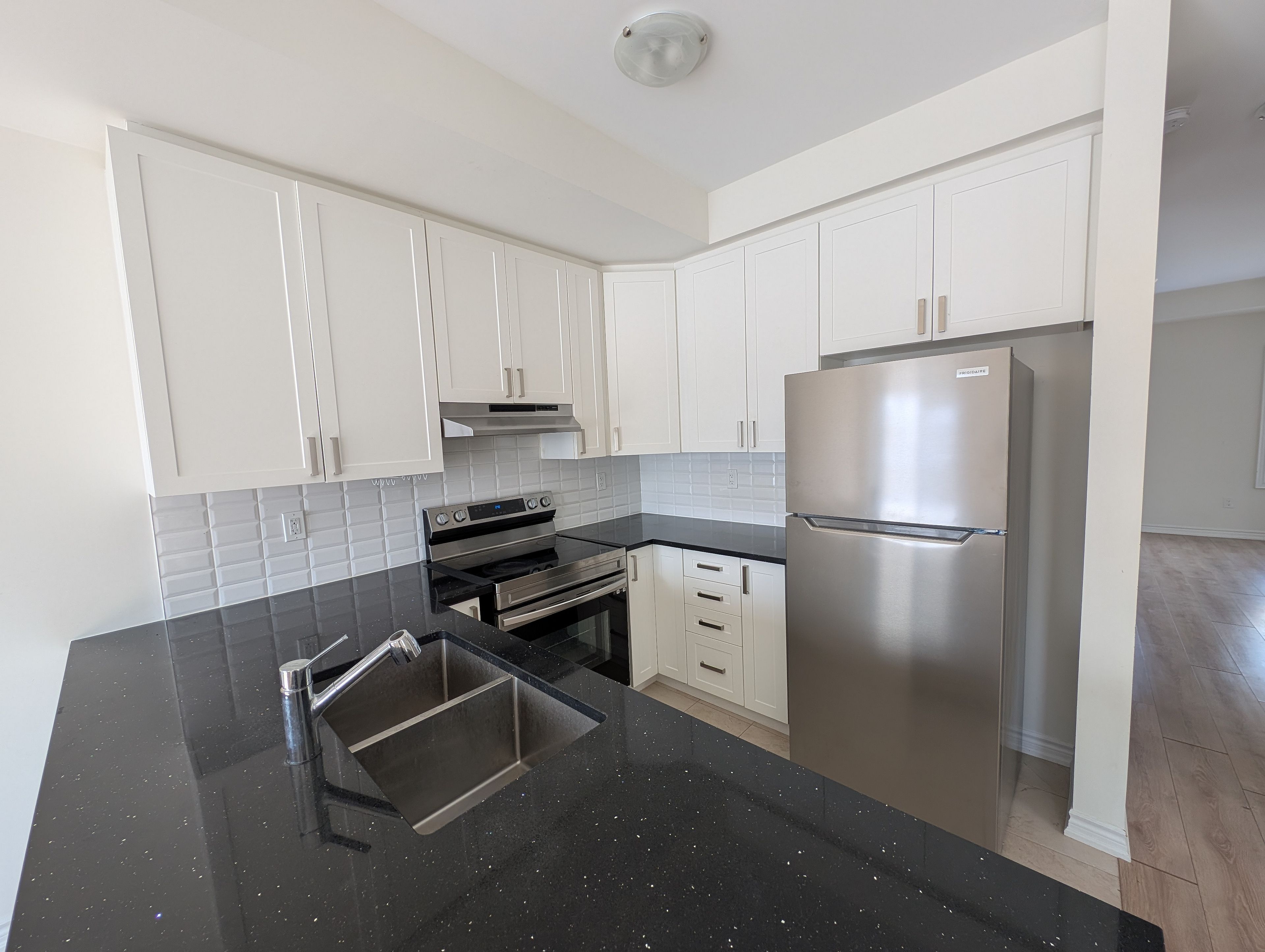 • Modern open concept kitchen featuring quartz countertops and stainless steel appliances.
