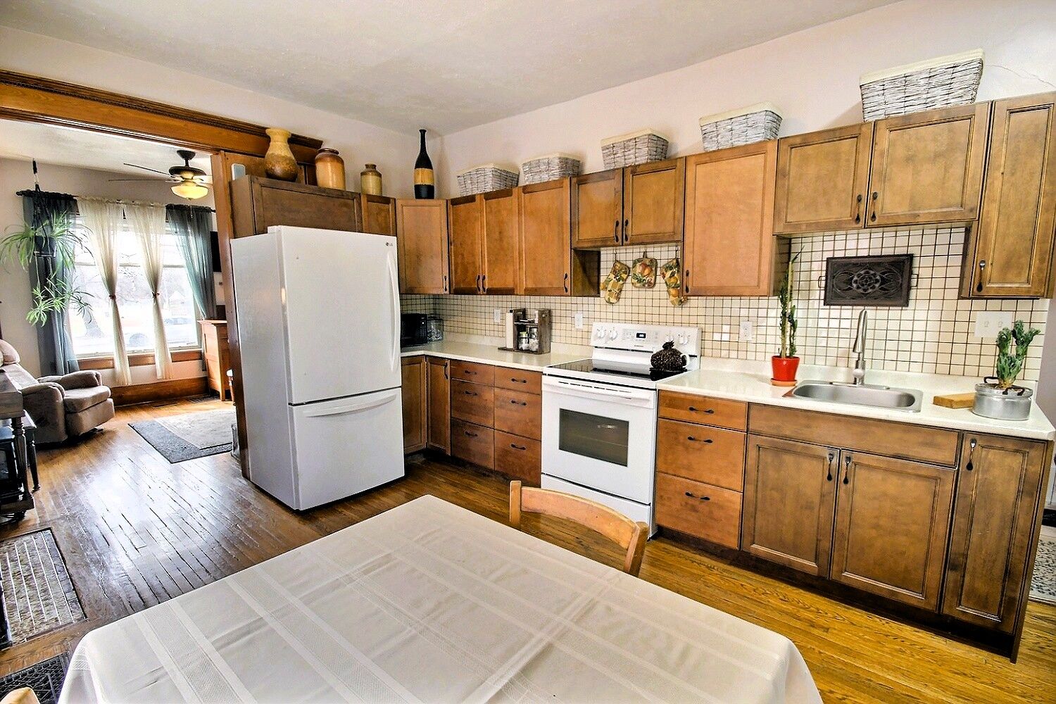 Great investment opportunity: legal duplex with strong income potential. You can get vacant possession and set your own rents. This up-and-down property includes two units 1-bedroom unit, two bedroom unit plus a possible of a basement in-law suite (currently the son is living there). The upper unit offers a playful loft for extra living . The main level boasts high ceilings, a den/office, and a front and rear entrance. Ample parking behind the house. Conveniently located near the schools, hospital, shopping, and downtown, with nearby parks, river trails, and walking paths for outdoor recreation. Twenty minutes to the 401 and a bus stop directly across the road.? Two separate hydro meters a real money maker.
