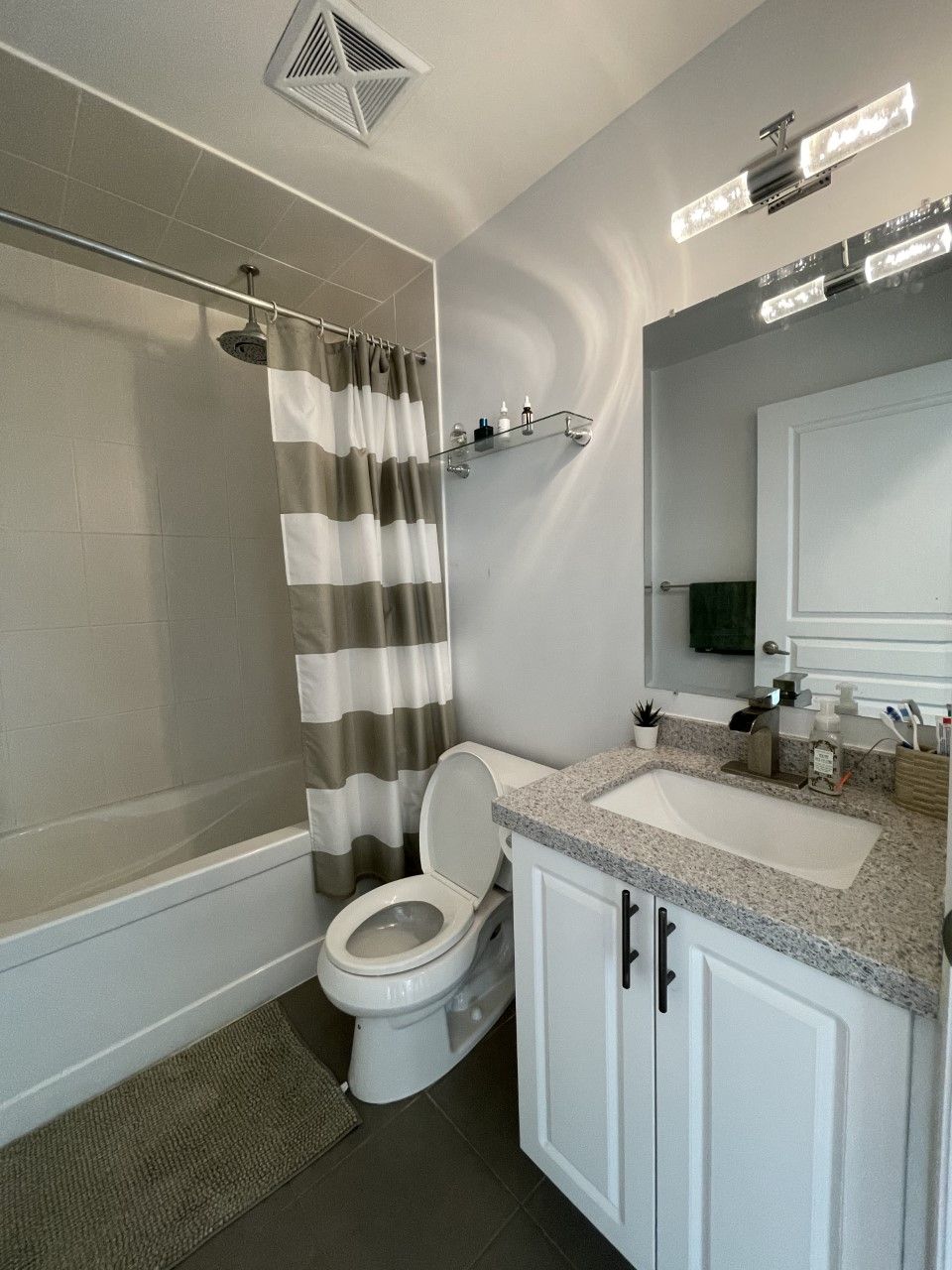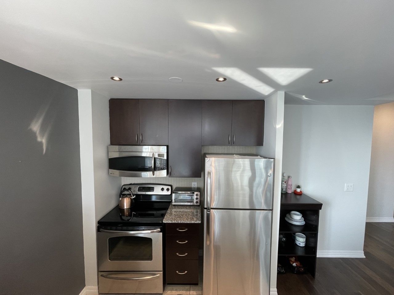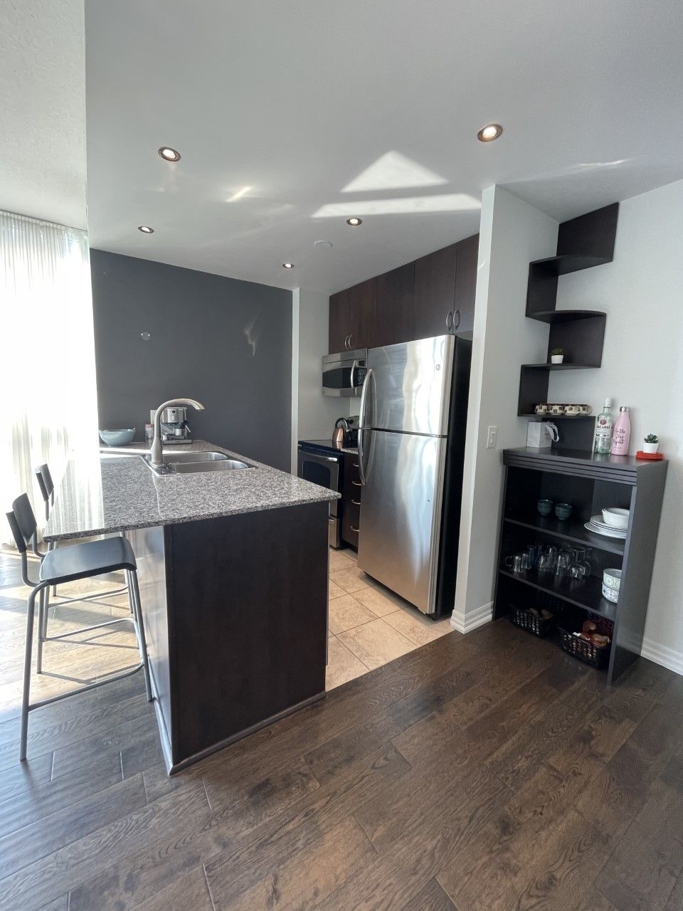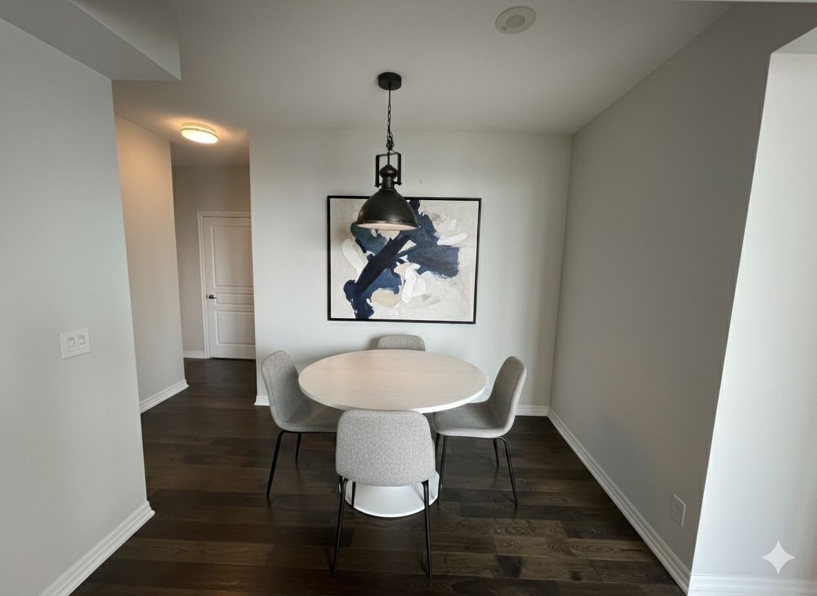 • Upgraded lighting and engineered hardwood add a modern touch.