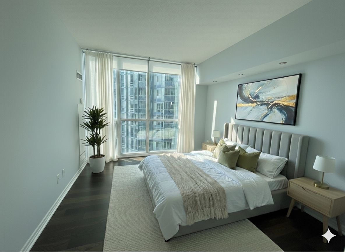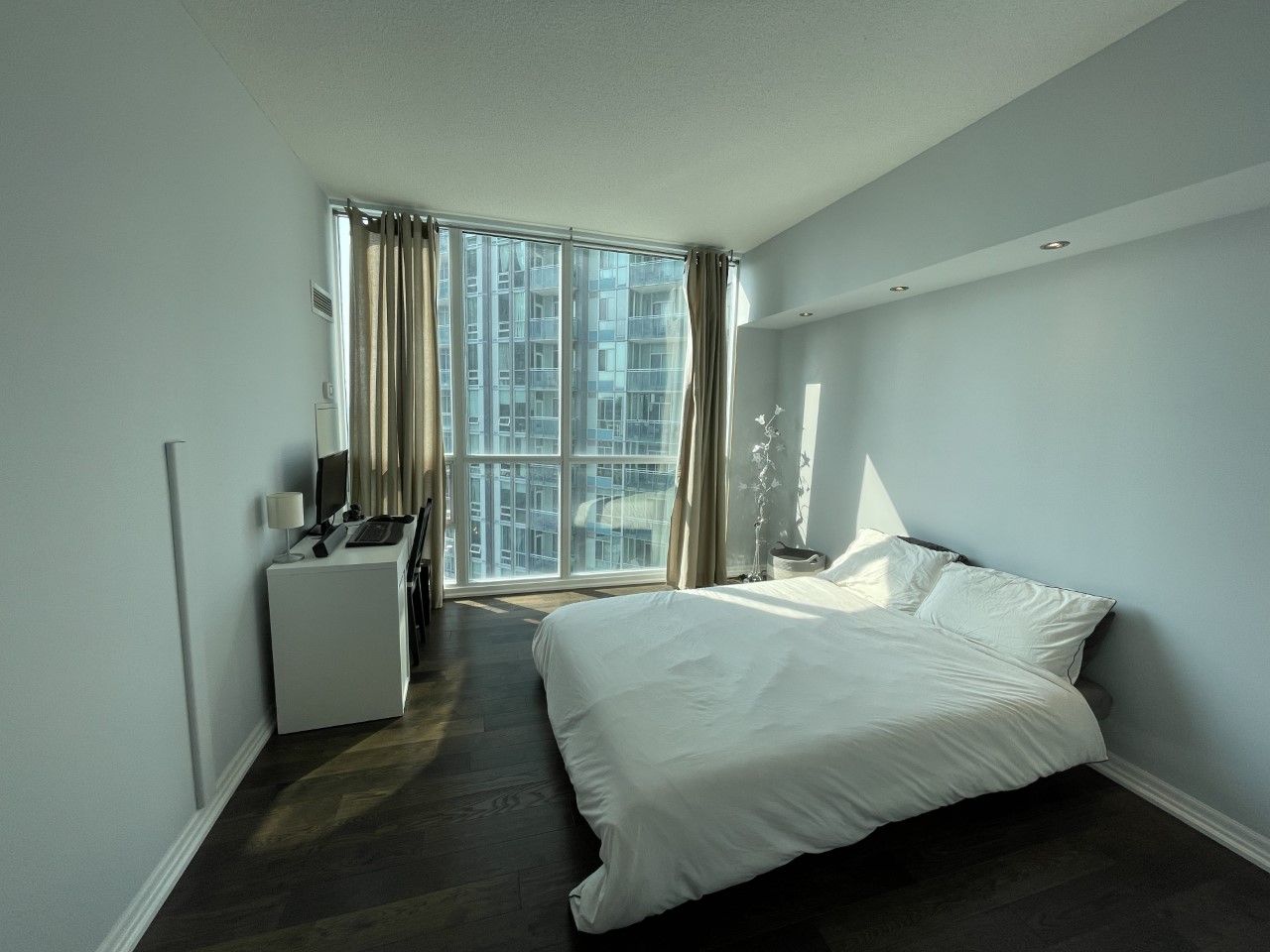 • Bright corner suite with floor-to-ceiling windows and lake views.