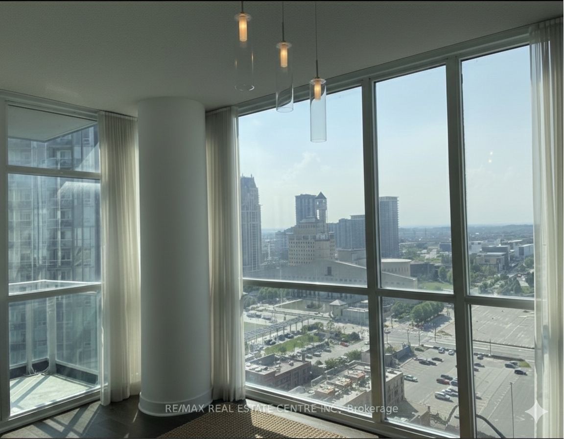 Prime city centre location in the prestige onyx! Sun filled corner suite, soaring 9 ft. Ceilings, floor to ceiling windows, engineered hardwood throughout, upgraded lighting, pot lights, no kitec, unobstructed s/w lake views & celebration sq. Enjoy state of the art amenities, walking distance to square one, restaurants, entertainment, sheridan college, parks,schools & walking paths.
