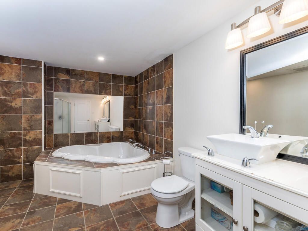 • Lower level includes additional bedrooms, den, and recreation room.